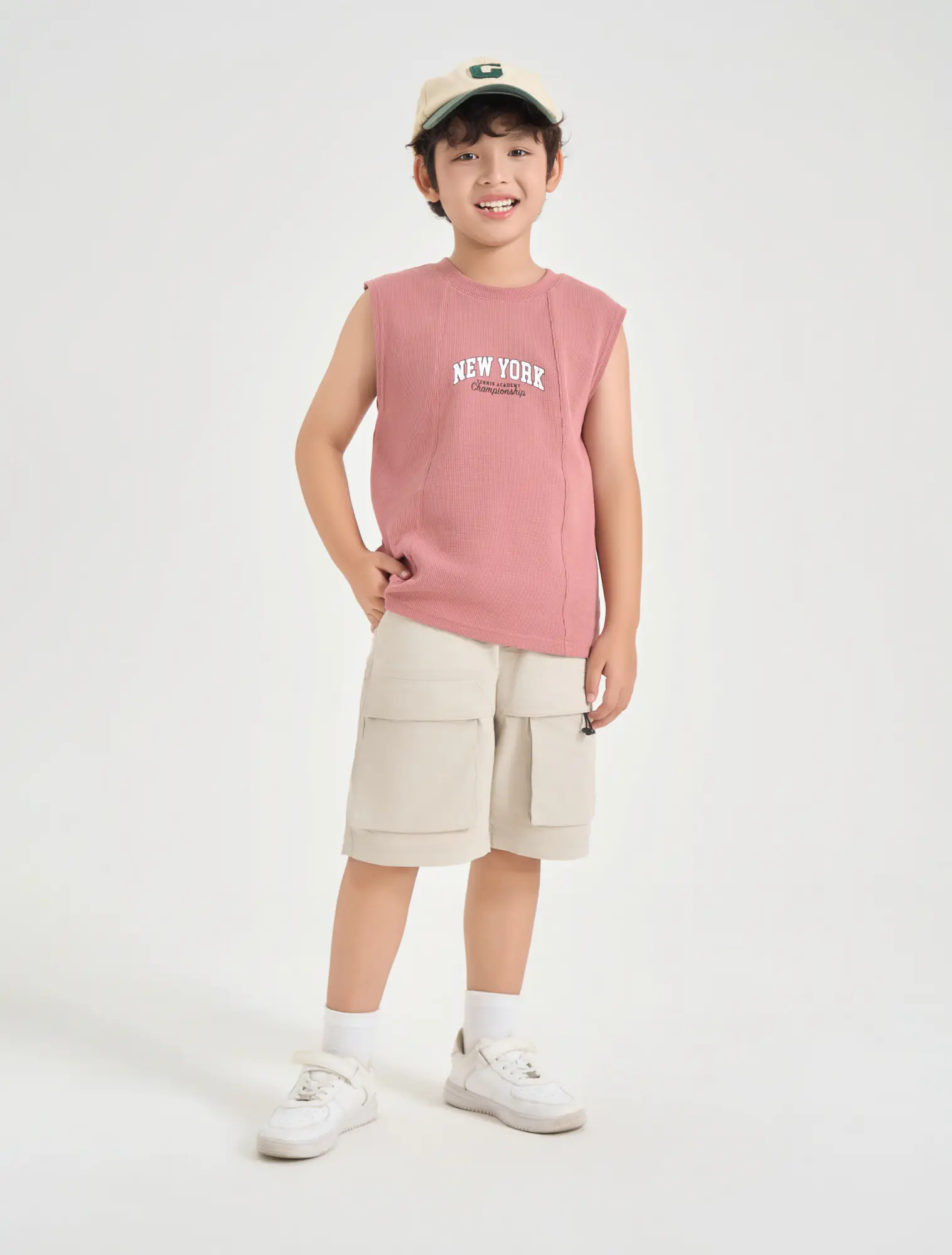 Áo ba lỗ bé trai, chất liệu cotton pha, phom dáng relax năng động khỏe khoắn, hình in phong cách sport trẻ trung, có thể sử dụng trong nhiều hoàn cảnh.
