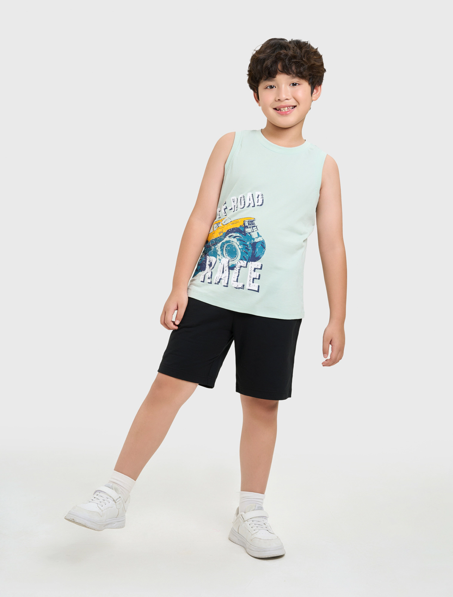 Áo ba lỗ bé trai có hình in, chất liệu cotton pha thoáng mát, hình in đa dạng phù hợp cho sở tích các bé.