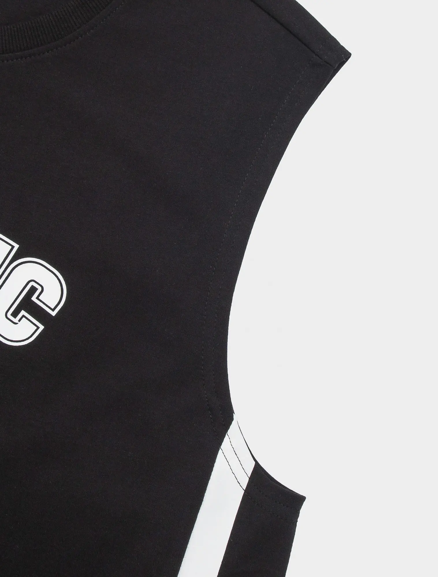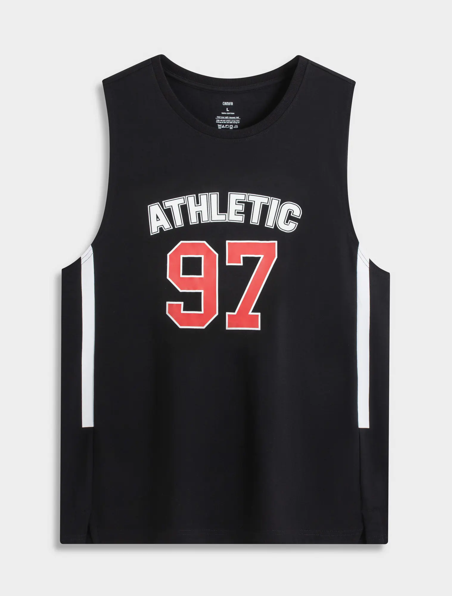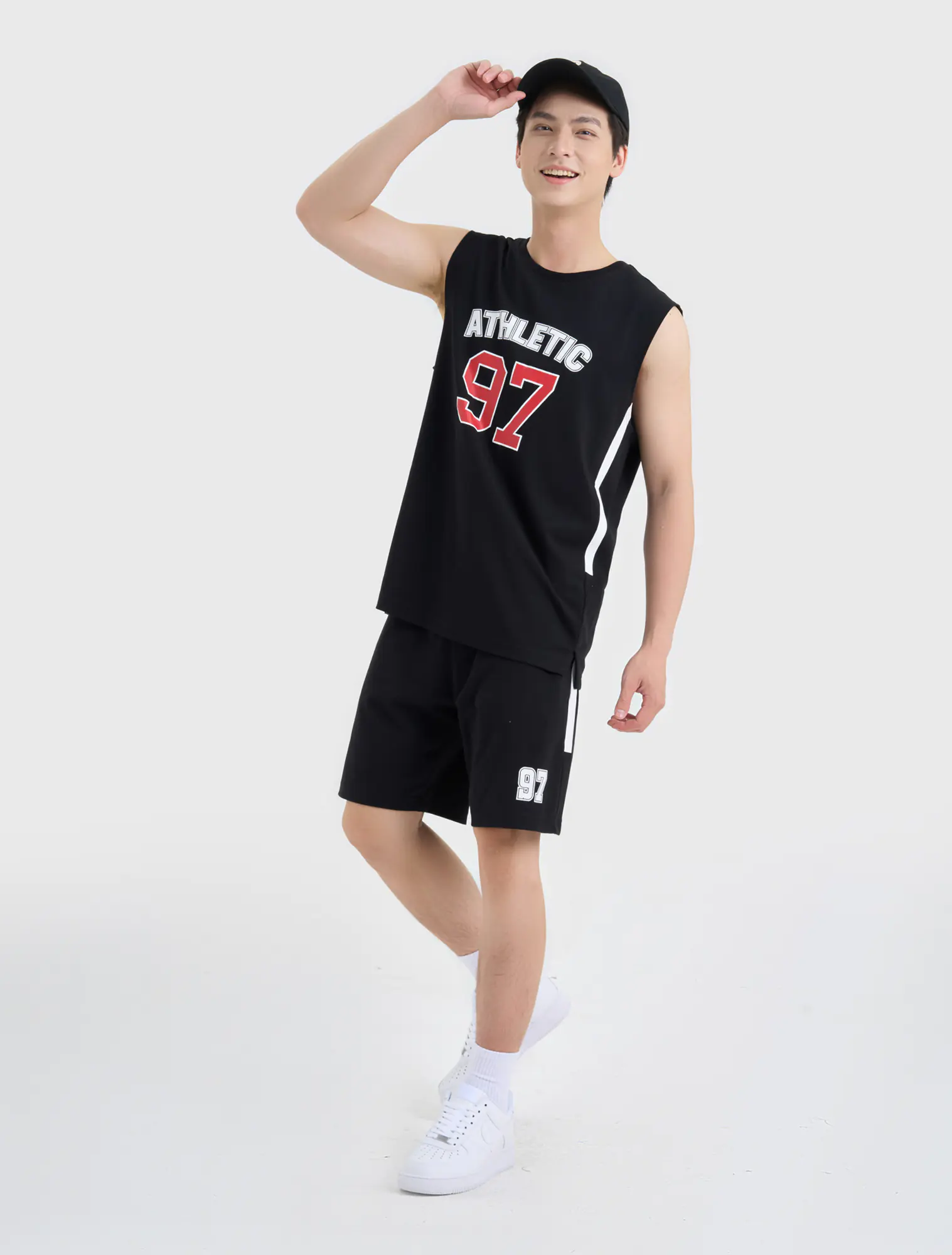 Áo sát nách nam với chất liệu interlock cotton mềm mại và hình in tạo điểm nhấn.