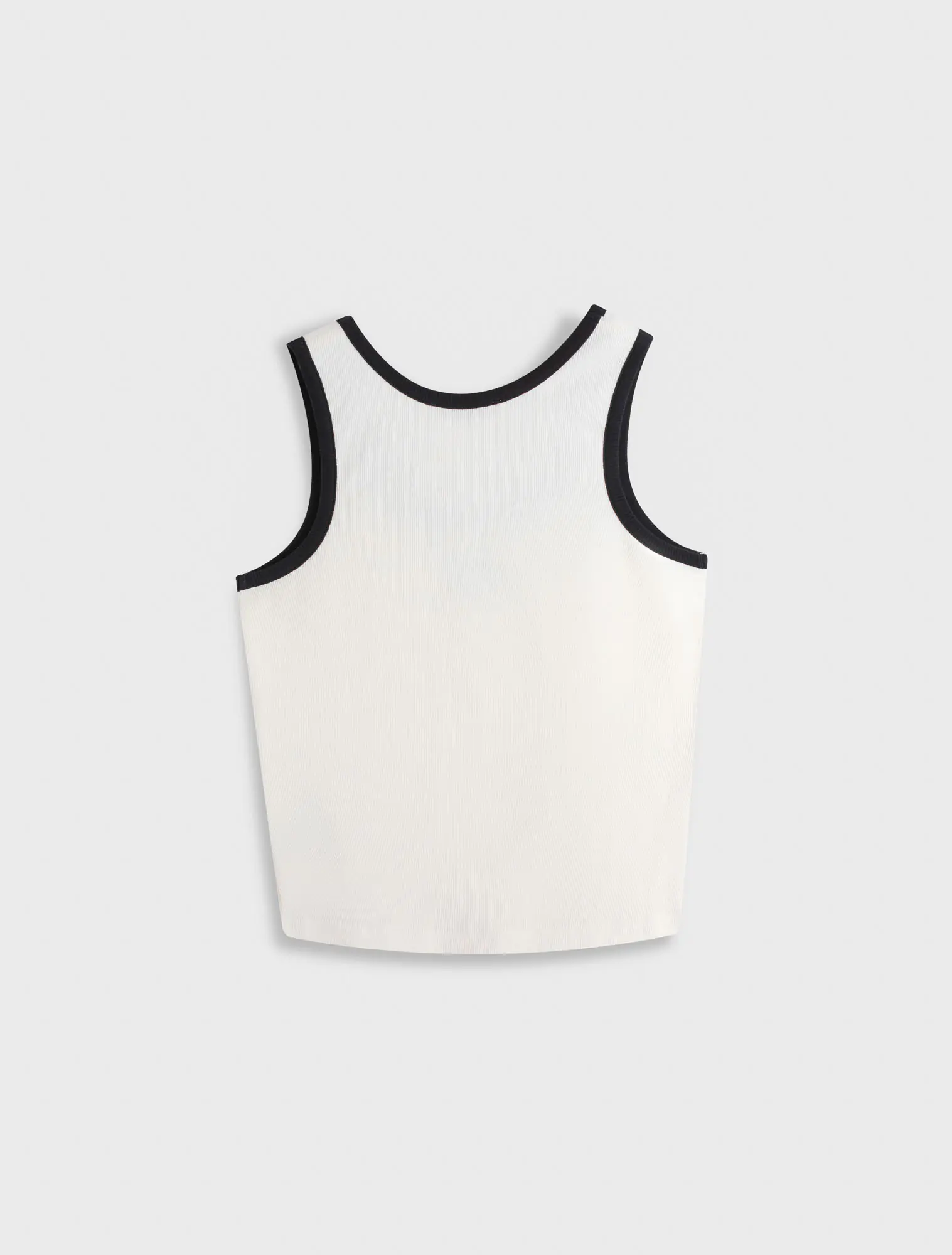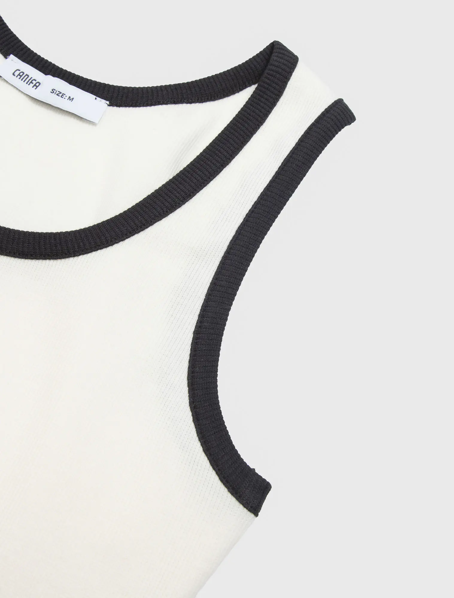Áo sát nách nữ dáng ôm, chất liệu dệt rib tạo sự co dãn thoải mái và điểm nhấn chi tiết phối màu viền quanh cổ và vòng nách tạo nên sản phẩm basic nhưng vẫn update theo xu hướng.