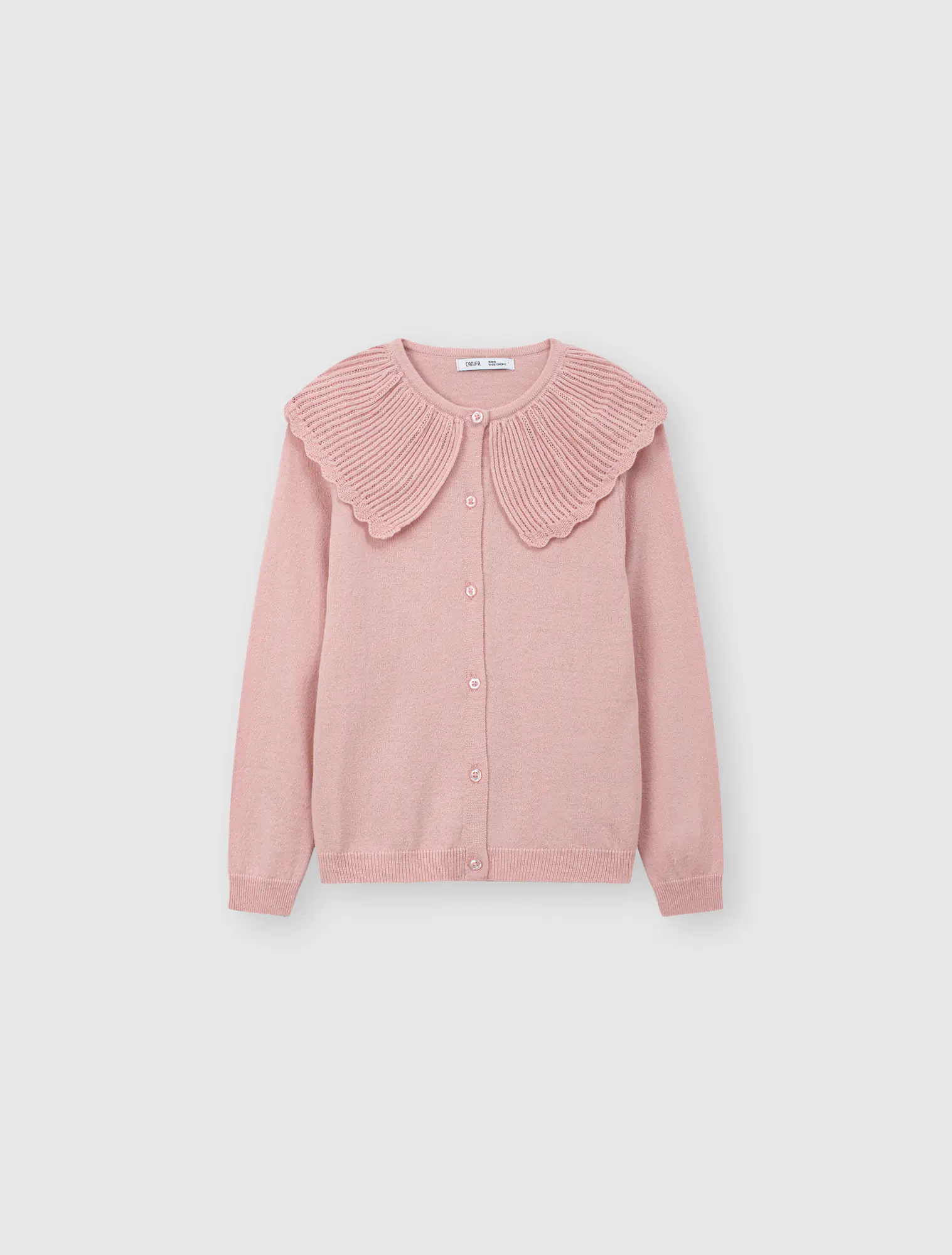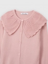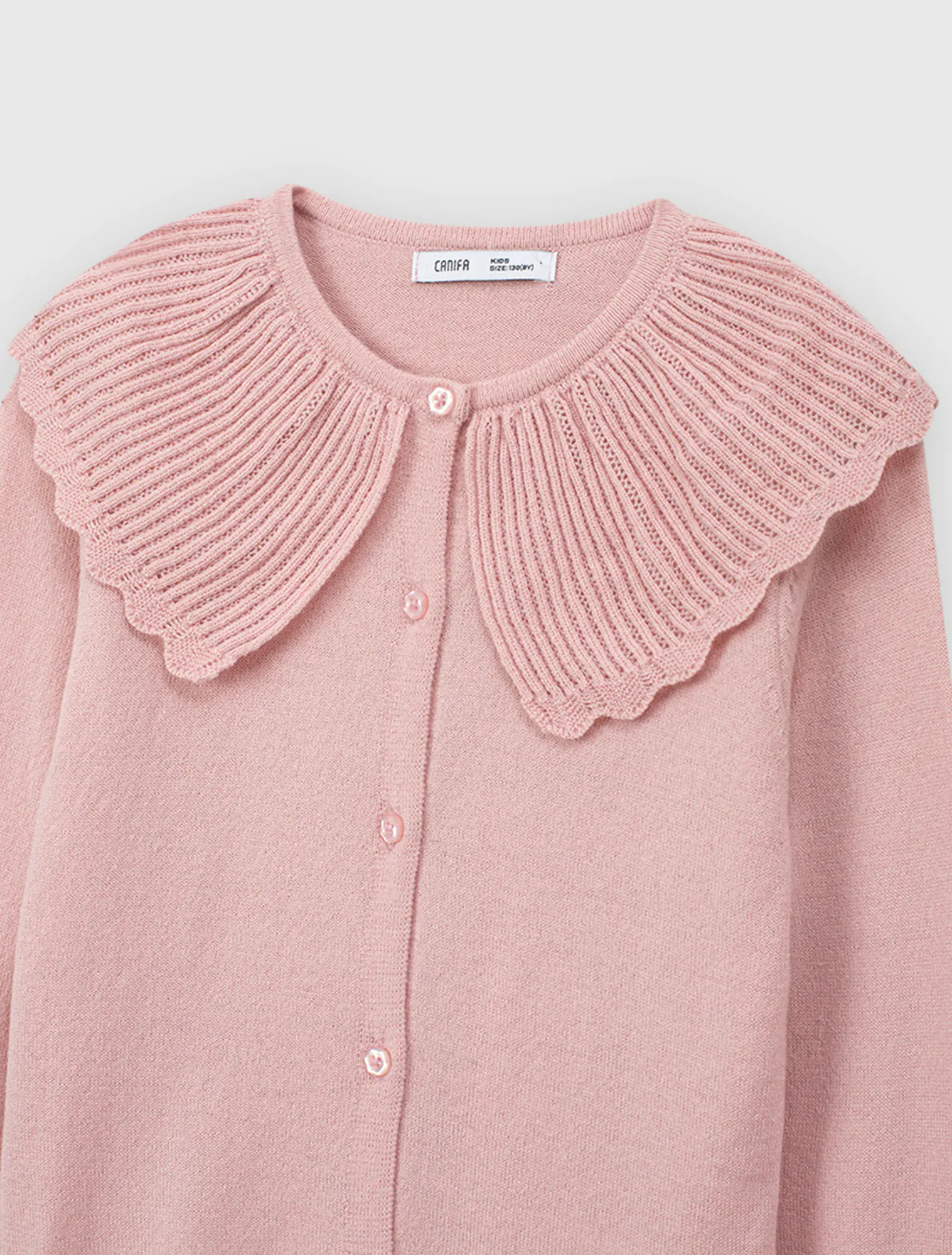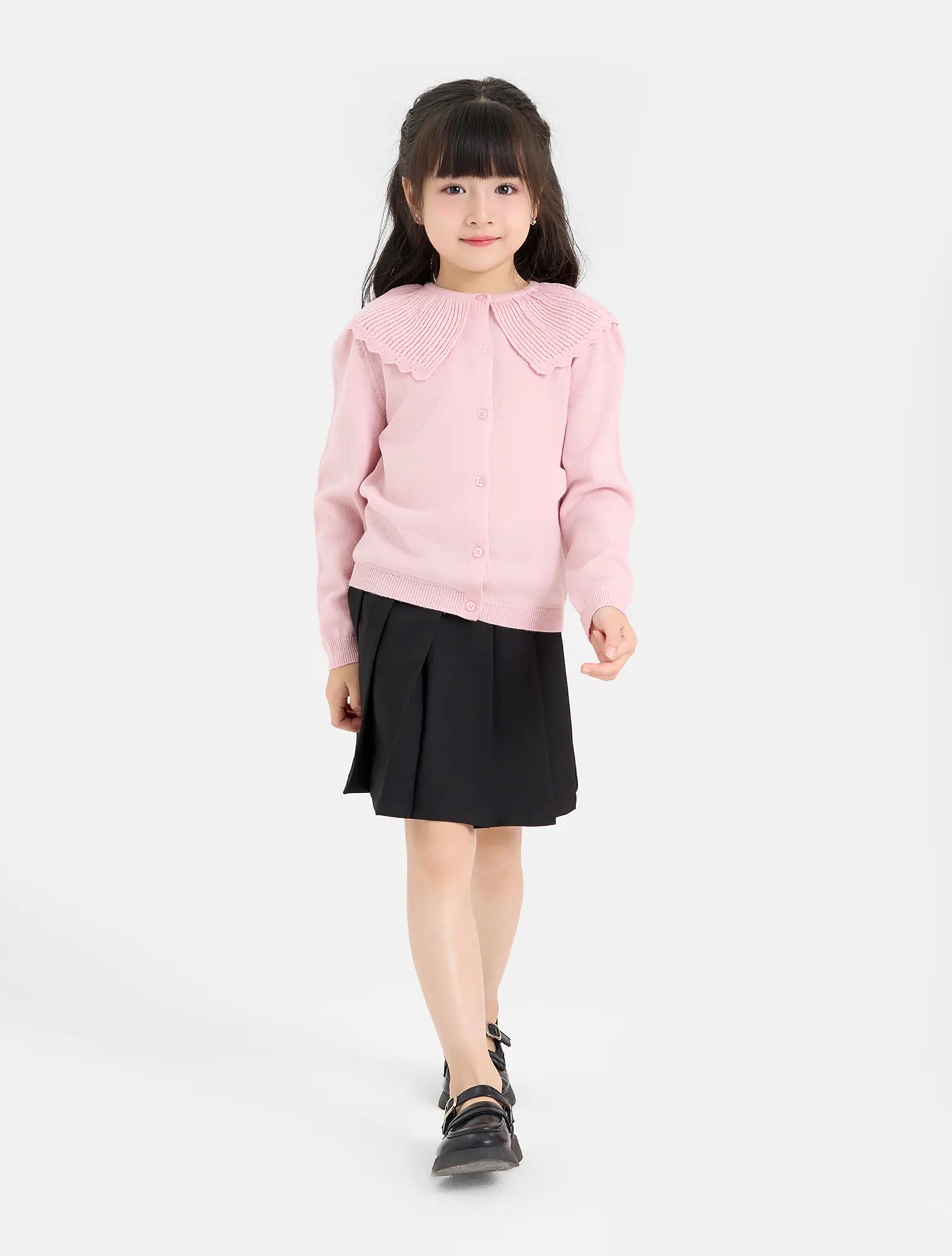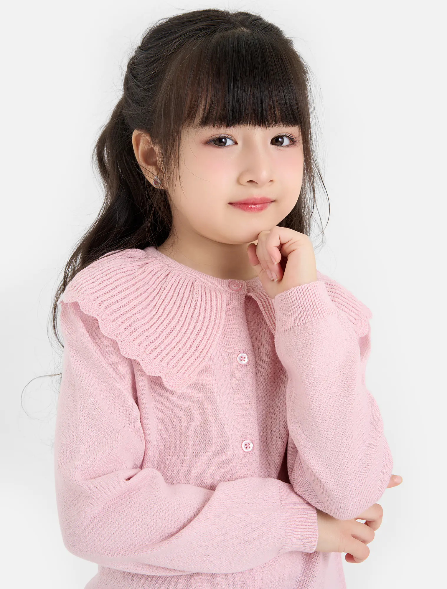 Áo khoác len bé gái cổ có bèo, chất liệu len mỏng nhưng vẫn giữ ấm tốt, kiểu dáng nữ tính, điệu đà phù hợp với các bé gái phối những bộ trang phục cho mùa lễ hội.