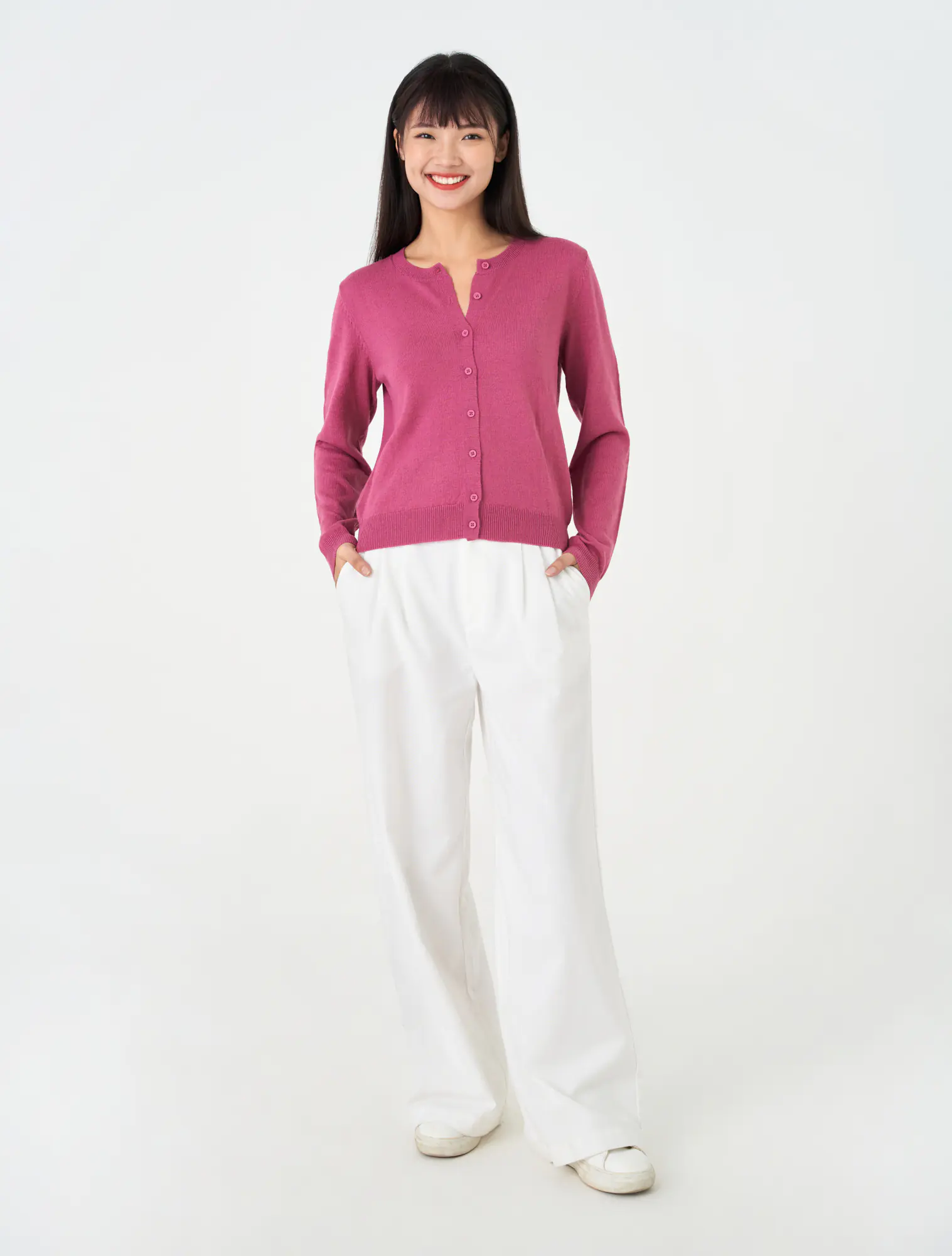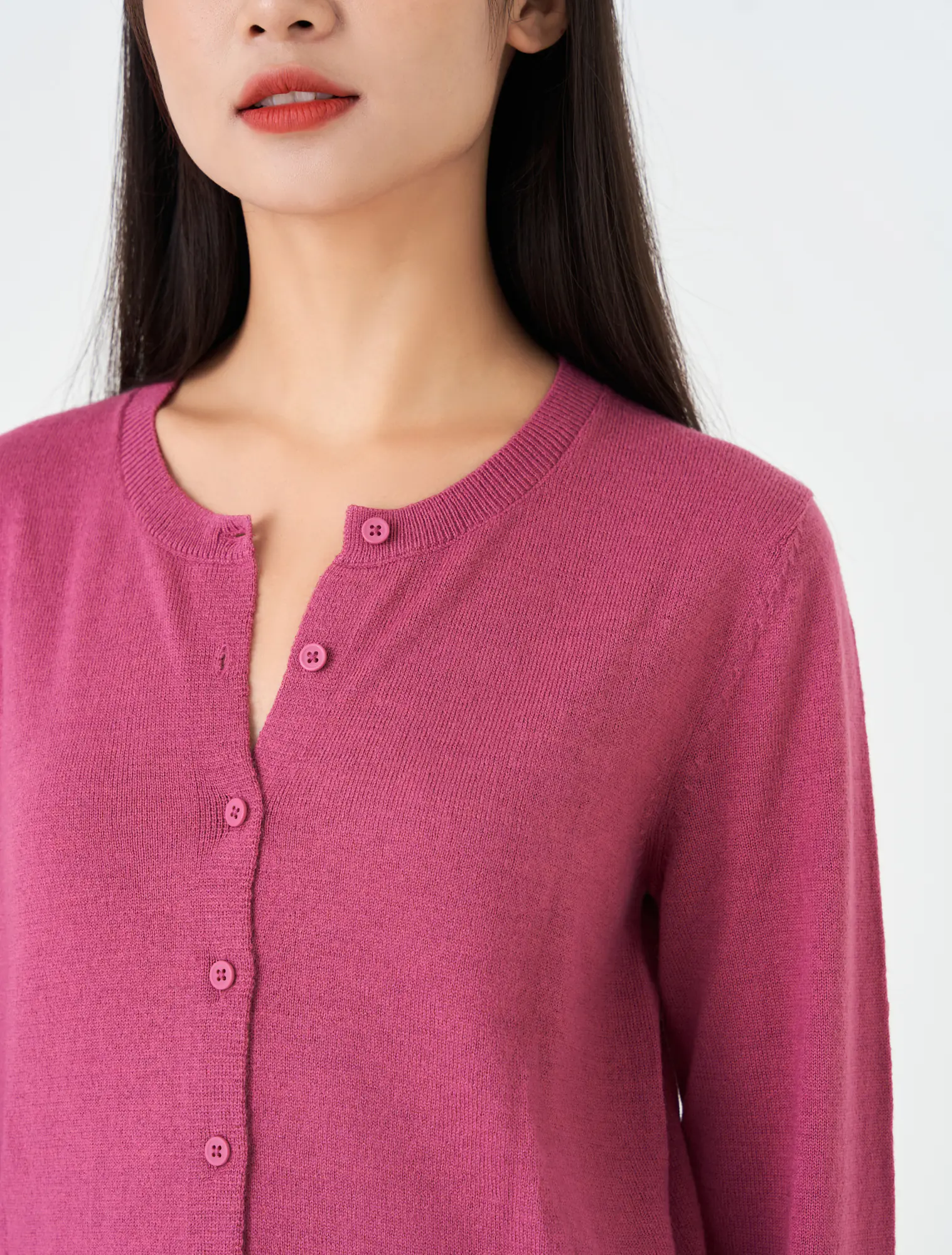 Áo khoác len nữ cổ tròn, chất liệu Acrylic polyester phom dáng cơ bản basic, phù hợp với mùa thu đông.