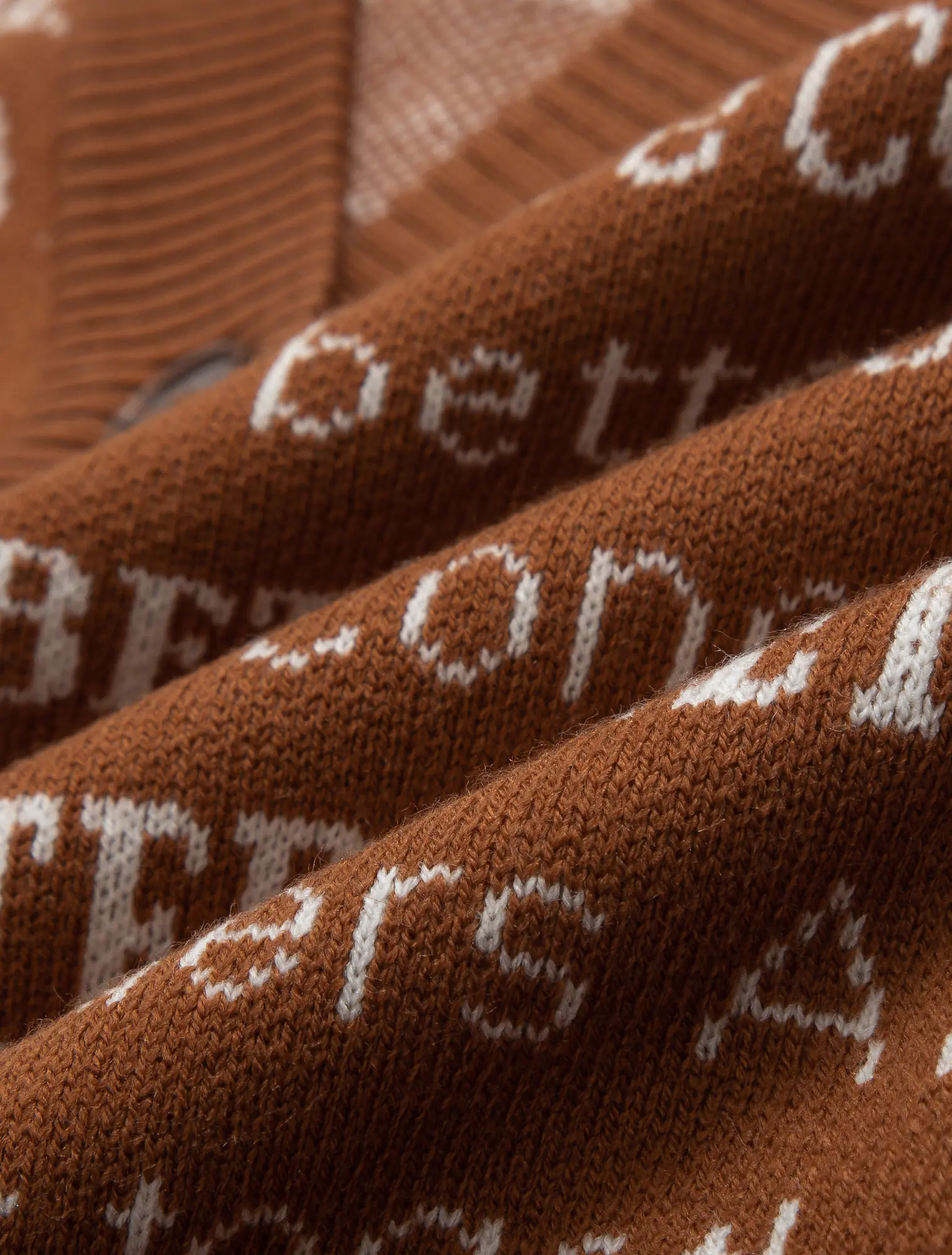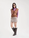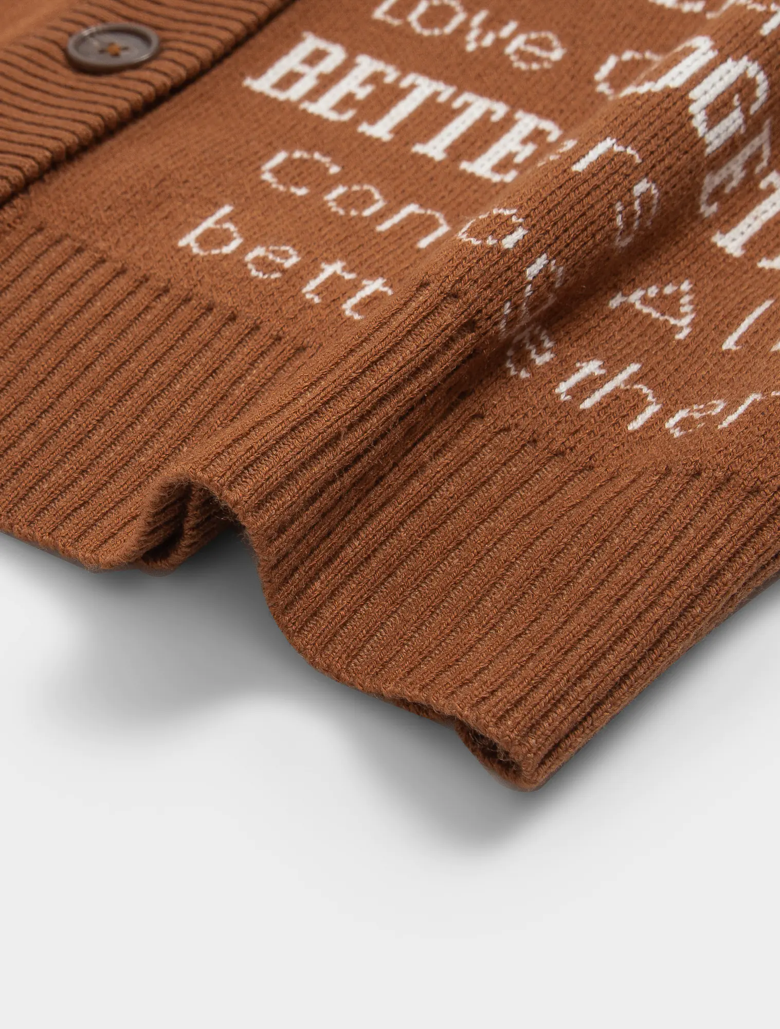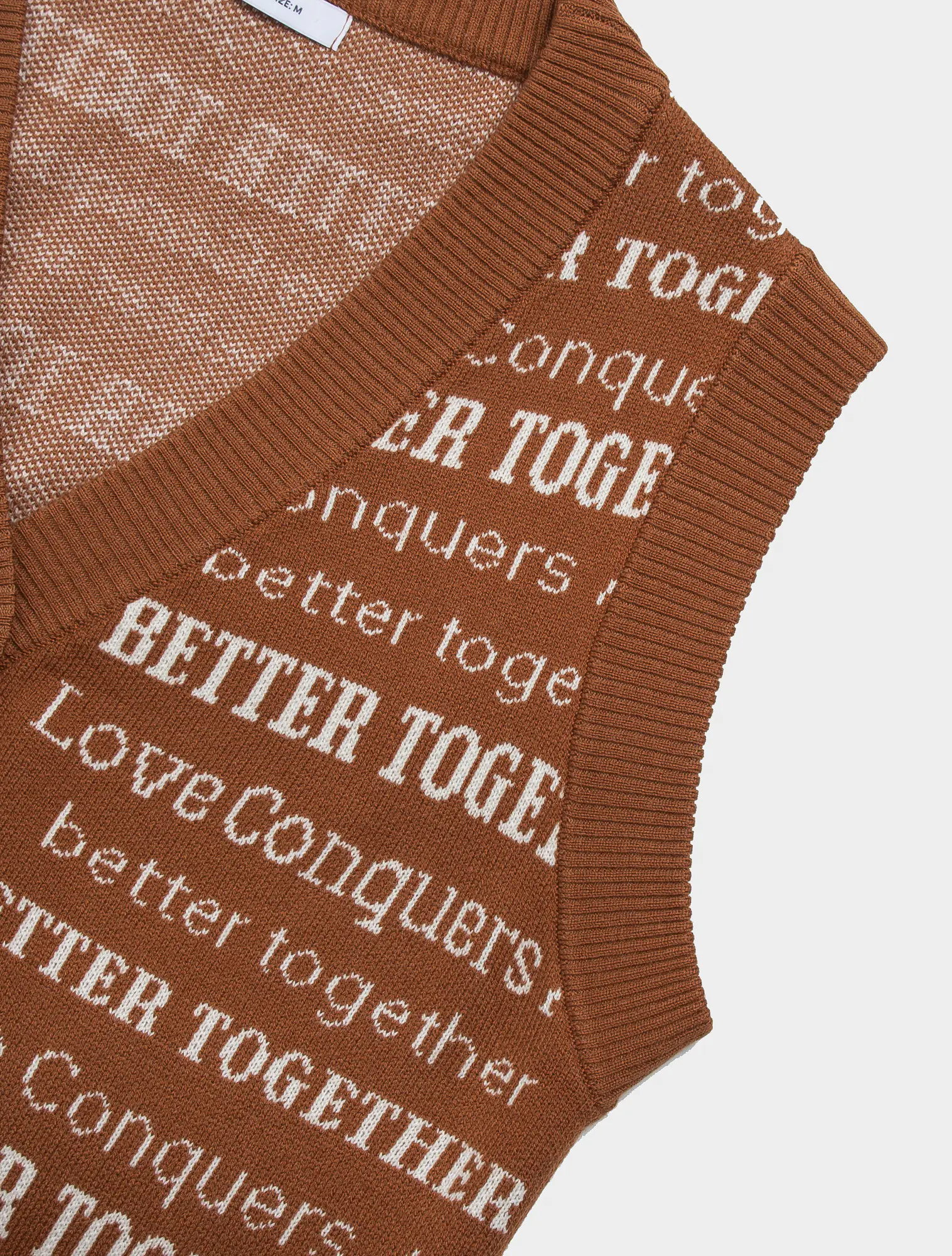Áo len gilet nữ cổ tim mở cúc, dễ dàng kết hợp với áo sơ mi dài tay và áo khoác. Kiểu dáng ôm vừa, gọn gàng, dệt họa tiết chữ phối màu.