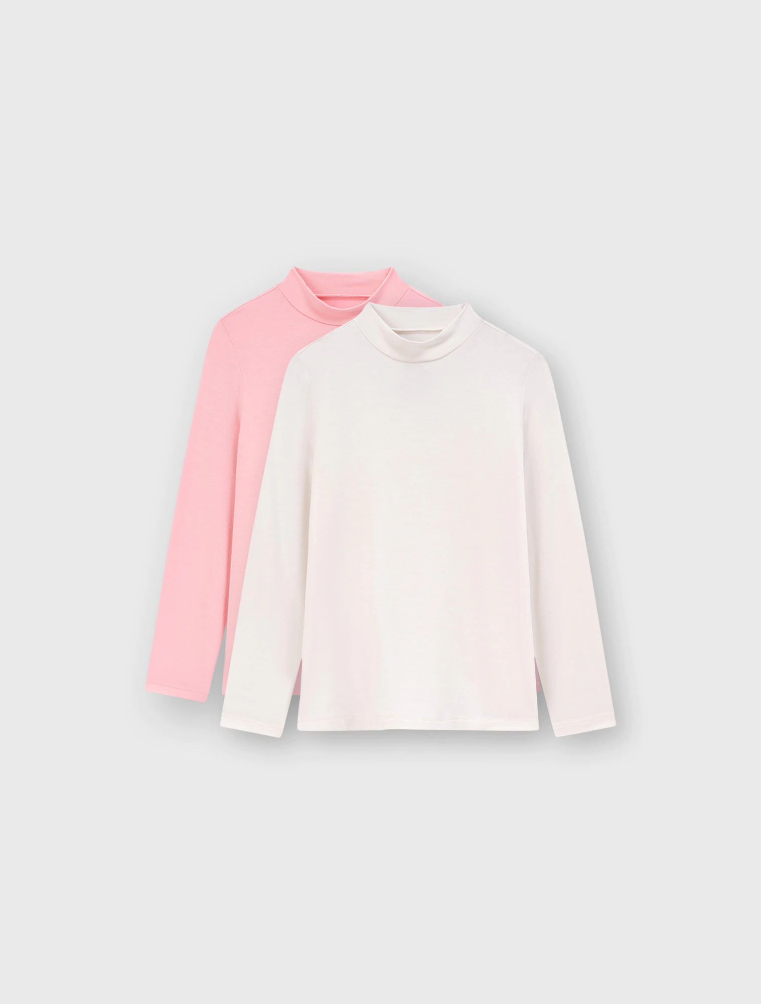 Combo 2 áo giữ nhiệt bé gái, cổ cao 3cm, phom dáng gọn gàng dễ mặc. Chất liệu mềm mạn, co giãn tốt, giữ ấm tốt.