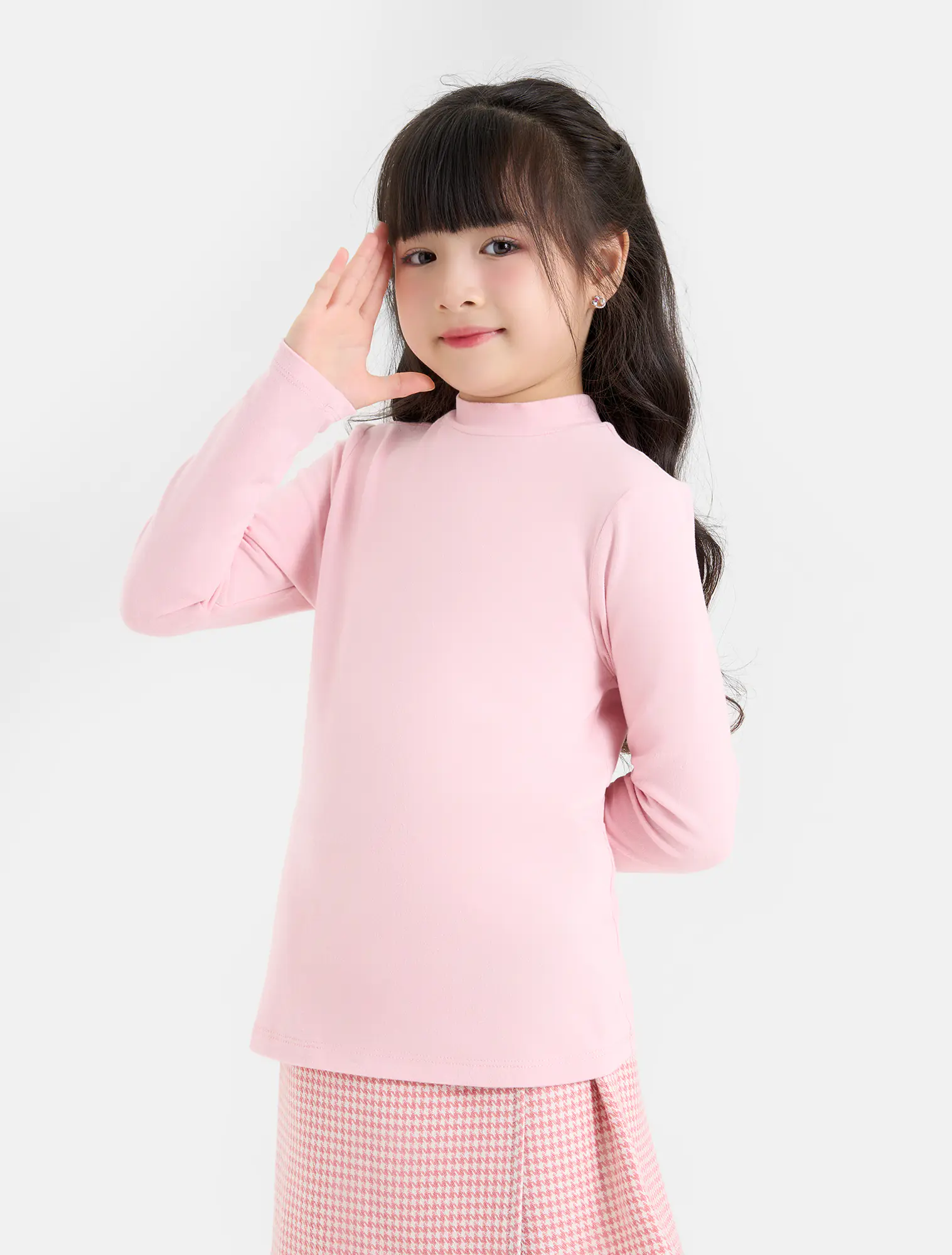 Áo giữ nhiệt bé gái. Nguyên liệu được nghiên cứu kĩ về thành phần sợi, tỉ lệ thành phần để mang lại khả năng tăng sinh nhiệt mạnh khi mặc. Hiệu quả giữa ấm tối đa khi kết hợp cùng áo len, nỉ, áo khoác Canifa.