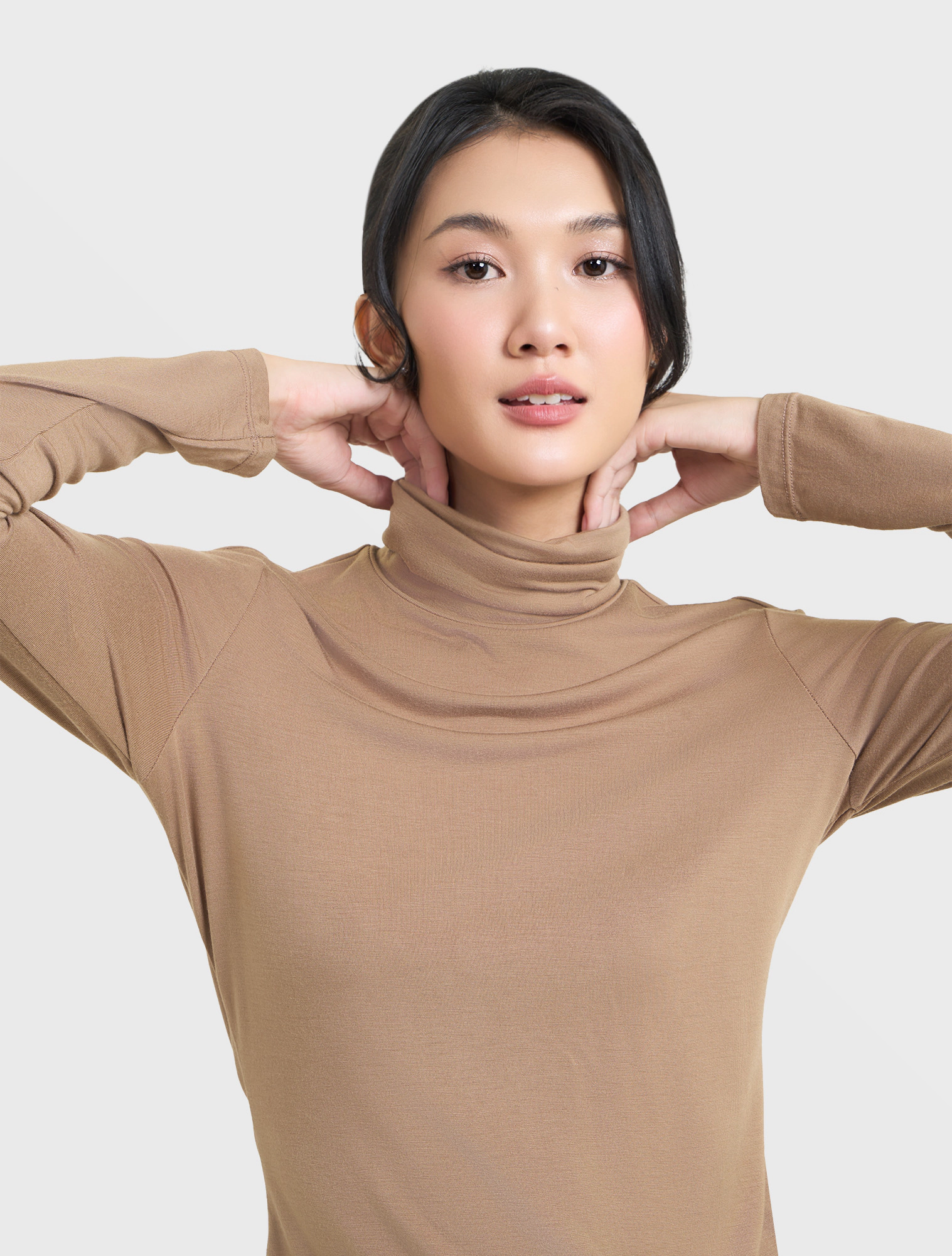 Áo giữ nhiệt cổ lọ Nữ, với chất liệu sợi tổng hợp và cấu trúc dệt đặc biệt biến nhiệt lượng trong cơ thể chuyền qua sợi vải và được giữ lại làm ấm cơ thể, giúp cho cơ thể luôn ấm áp cộng với cảm giác mềm mại, nhẹ nhàng từ sợi vải mang lại sự thoải mái tối đa cho khách hàng.