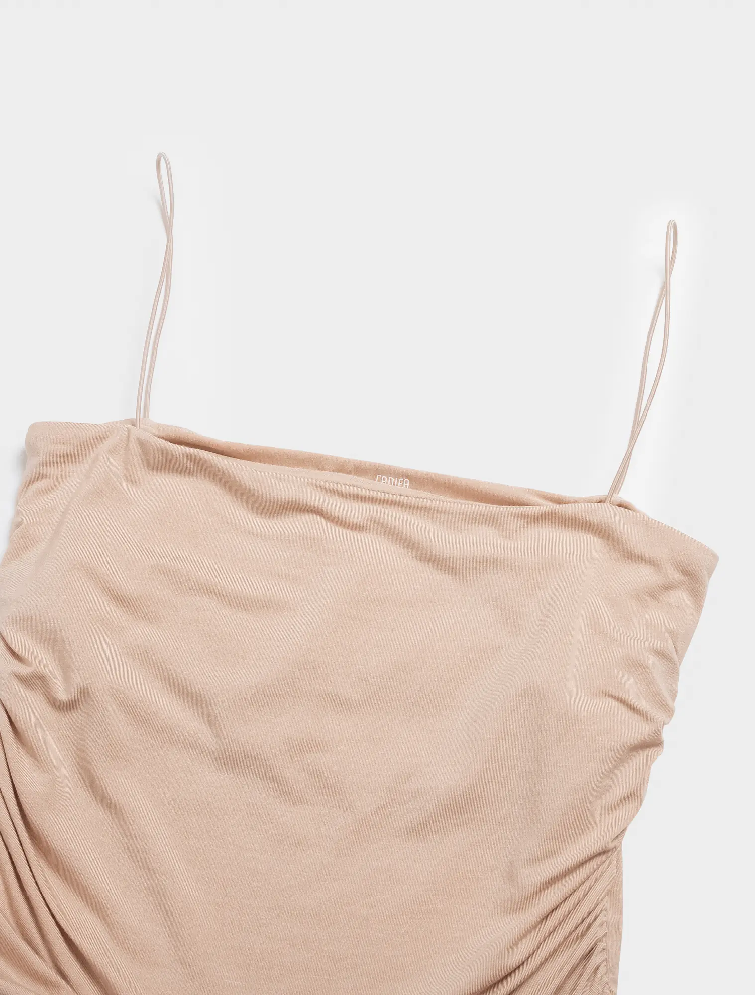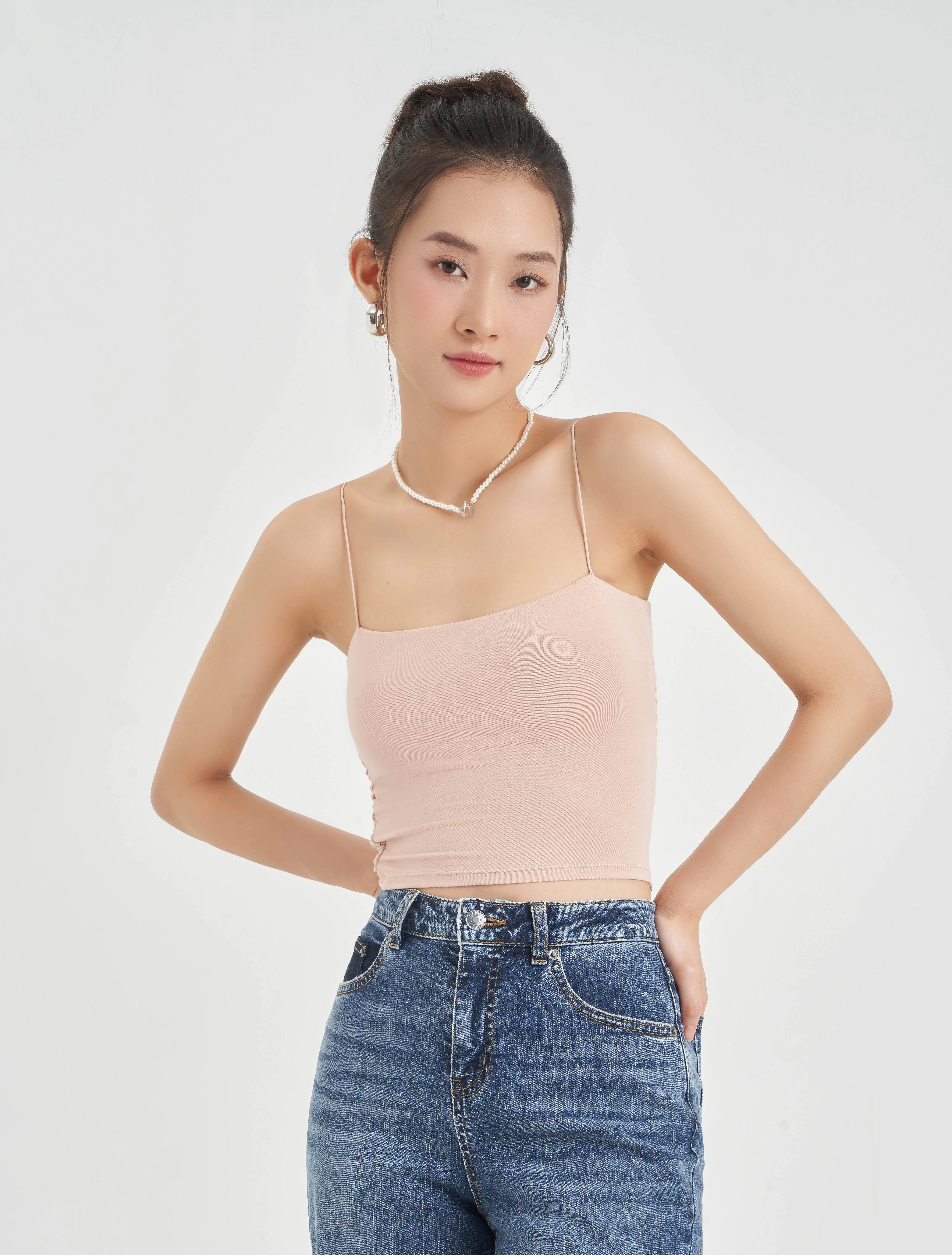 Áo 2 dây kiểu nhún sườn hiện đại, mới mẻ, nữ tính, dễ kết hợp trang phục.