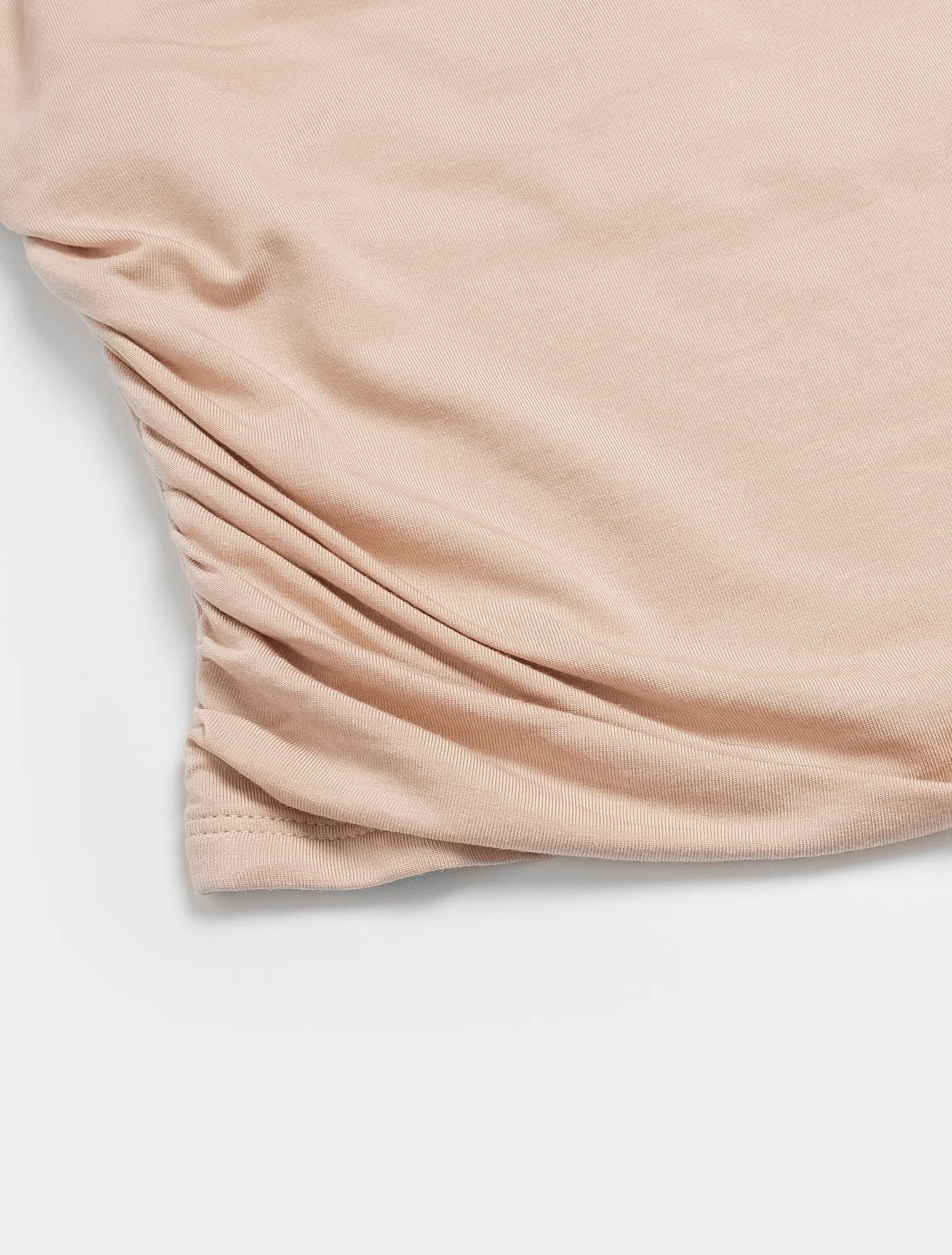 Nguyên liệu modal pha spandex mềm mịn, đàn hồi tốt, tạo cảm giác dễ chịu khi mặc.