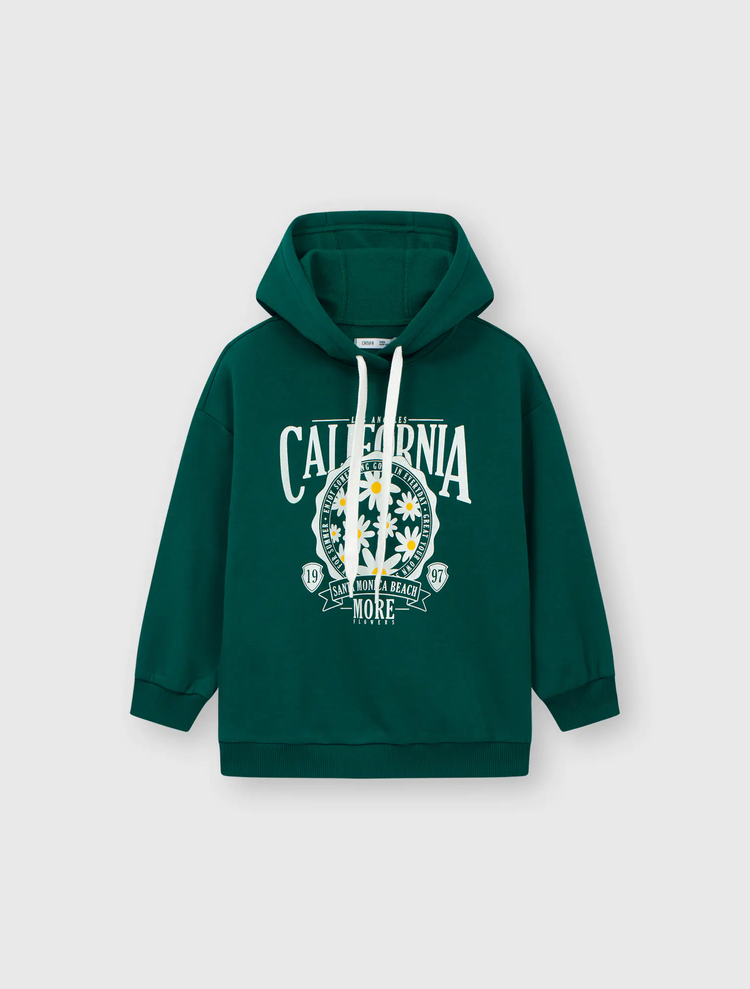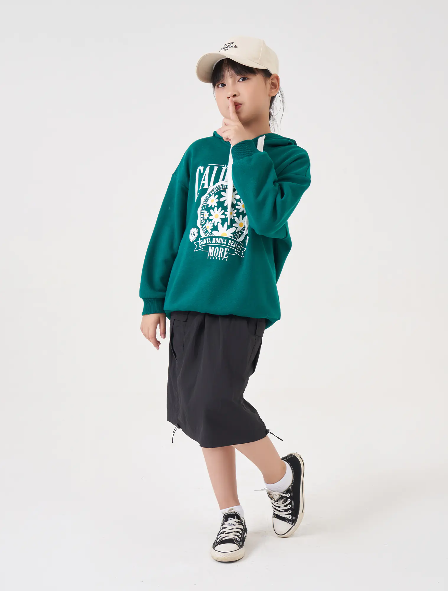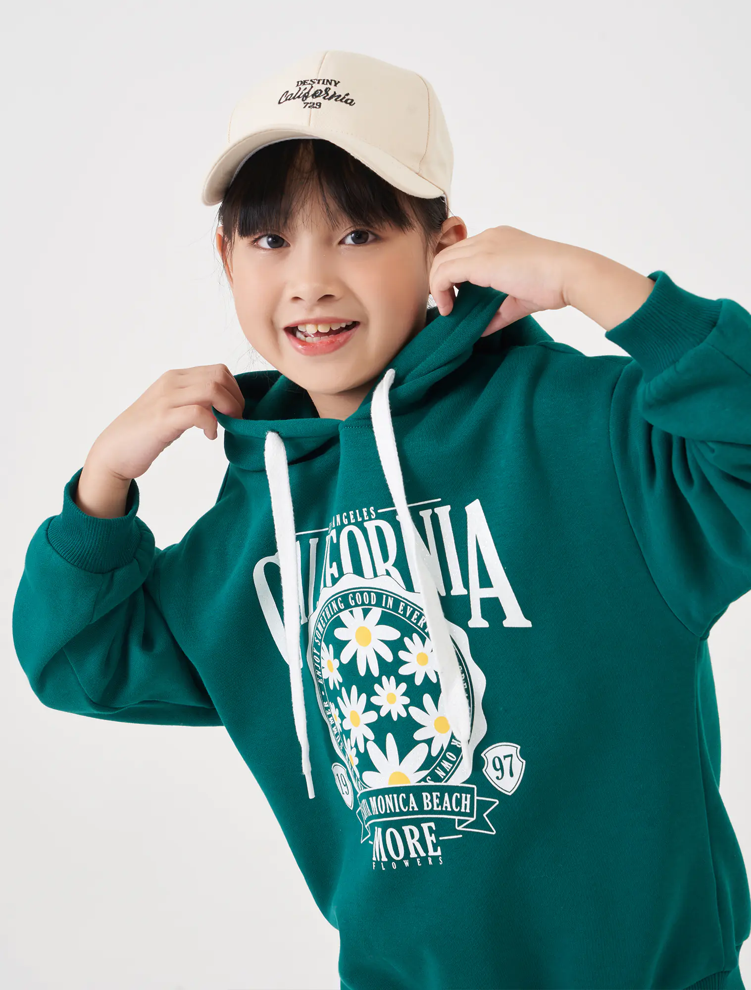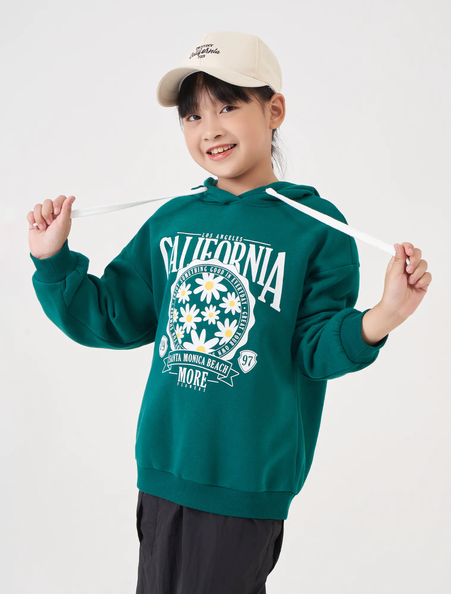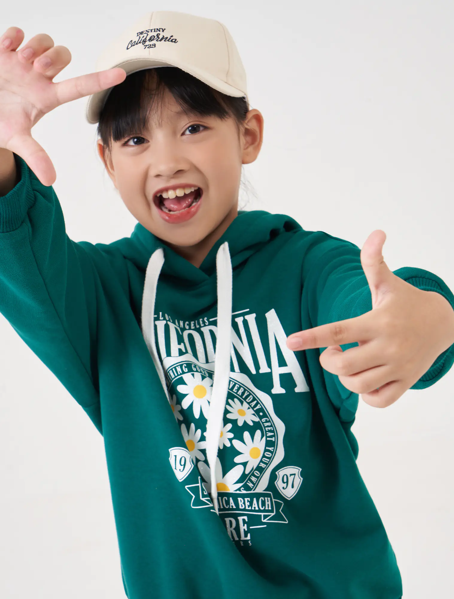 Áo nỉ bé gái có mũ. Phong cách sport, chất liệu nỉ dày dặn ấm áp cho mùa đông, phom dáng oversize thoải mái. Hình sport khỏe khoắn năng động phù hợp cho bé trong nhiều hoàn cảnh sử dụng.