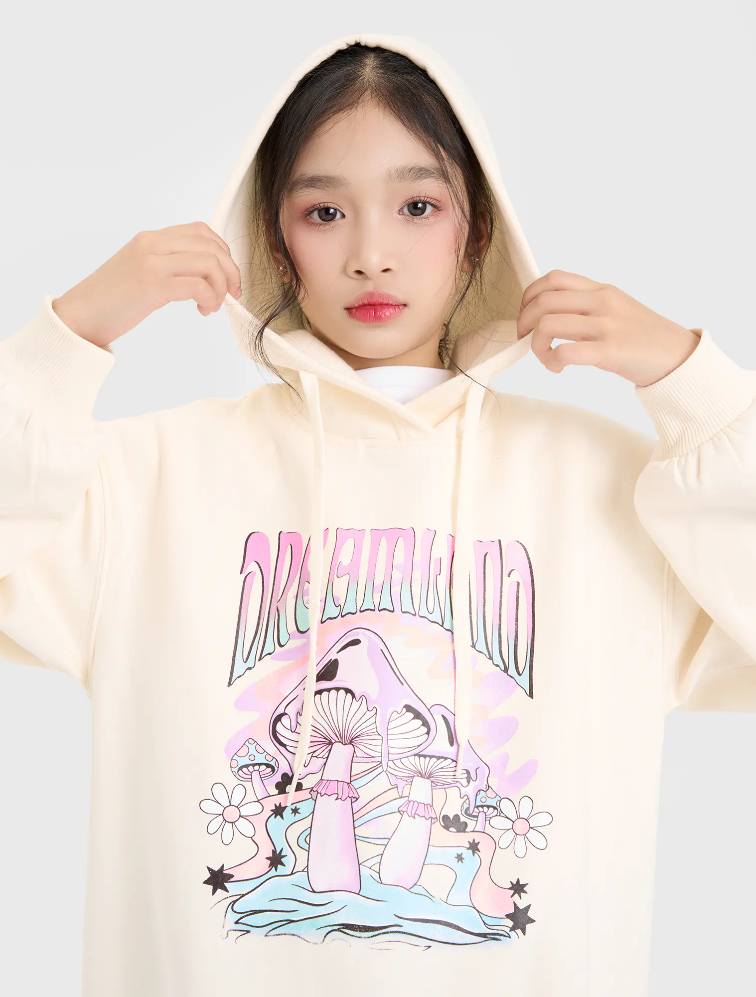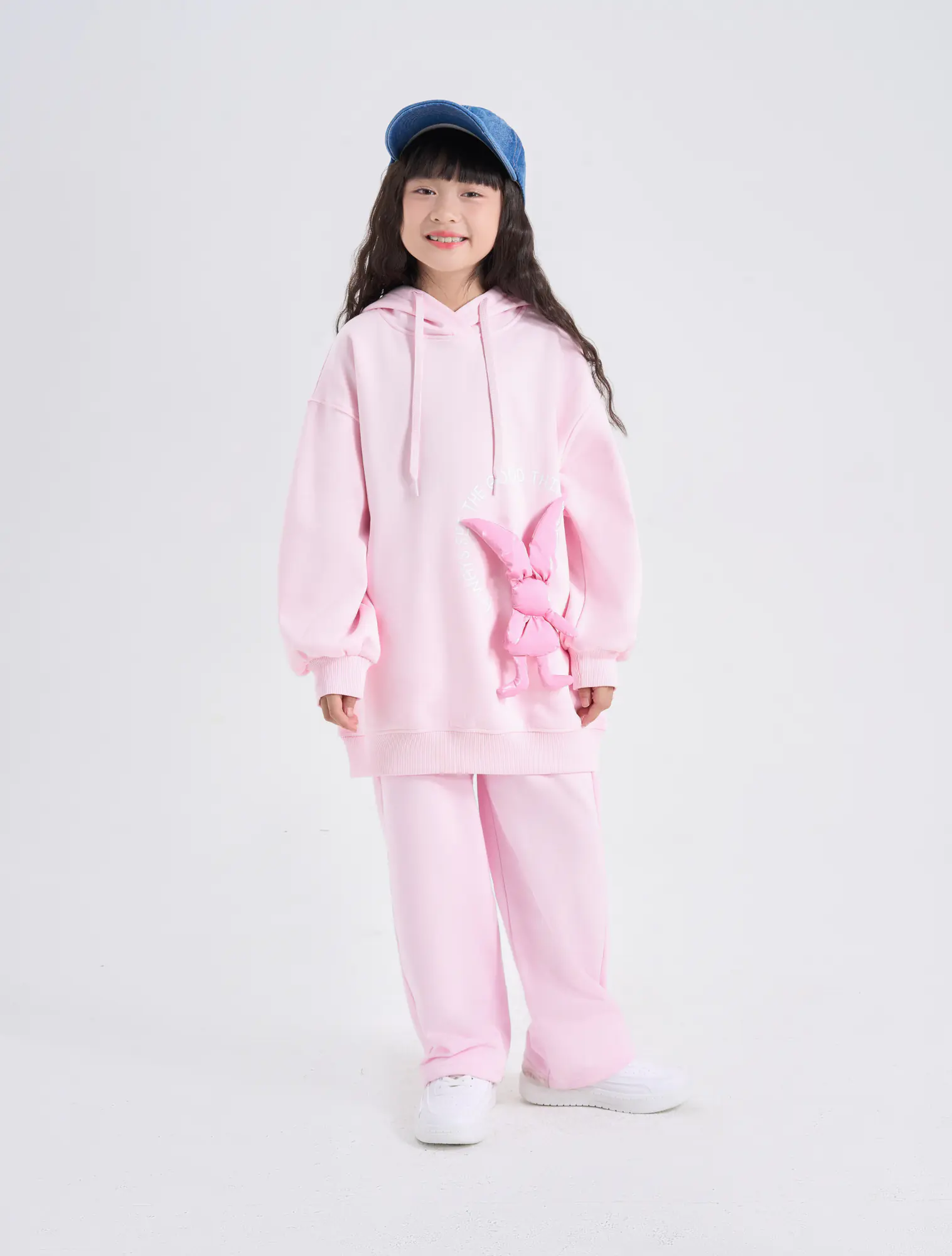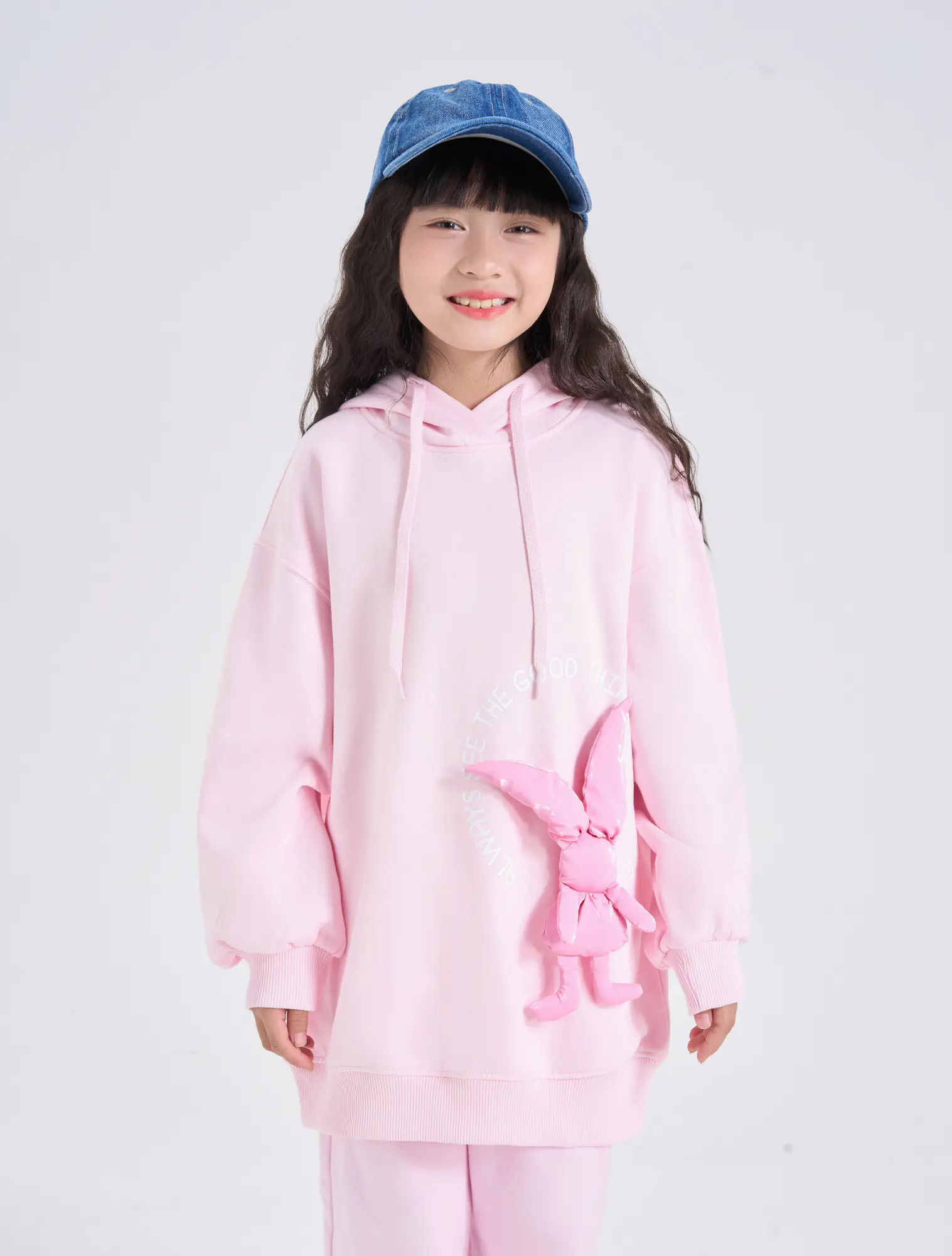 Áo hoodies bé gái dáng dài. Phom dáng nữ tính, thời trang. Màu sắc tươi sáng, hình in và phụ kiện trang trí phng phú, đáng yêu, dễ kết hợp nhiều phong cách và trang phục.
