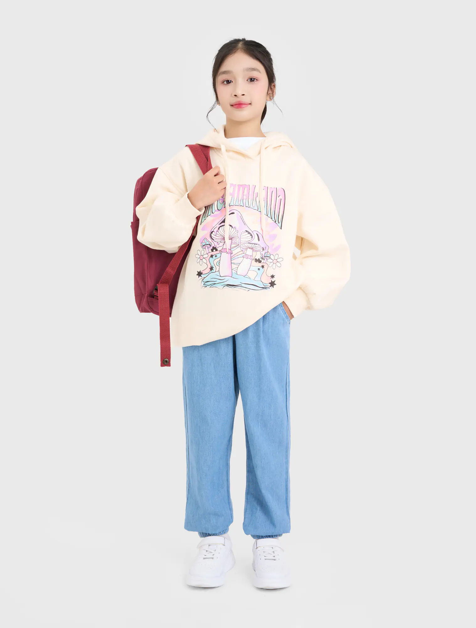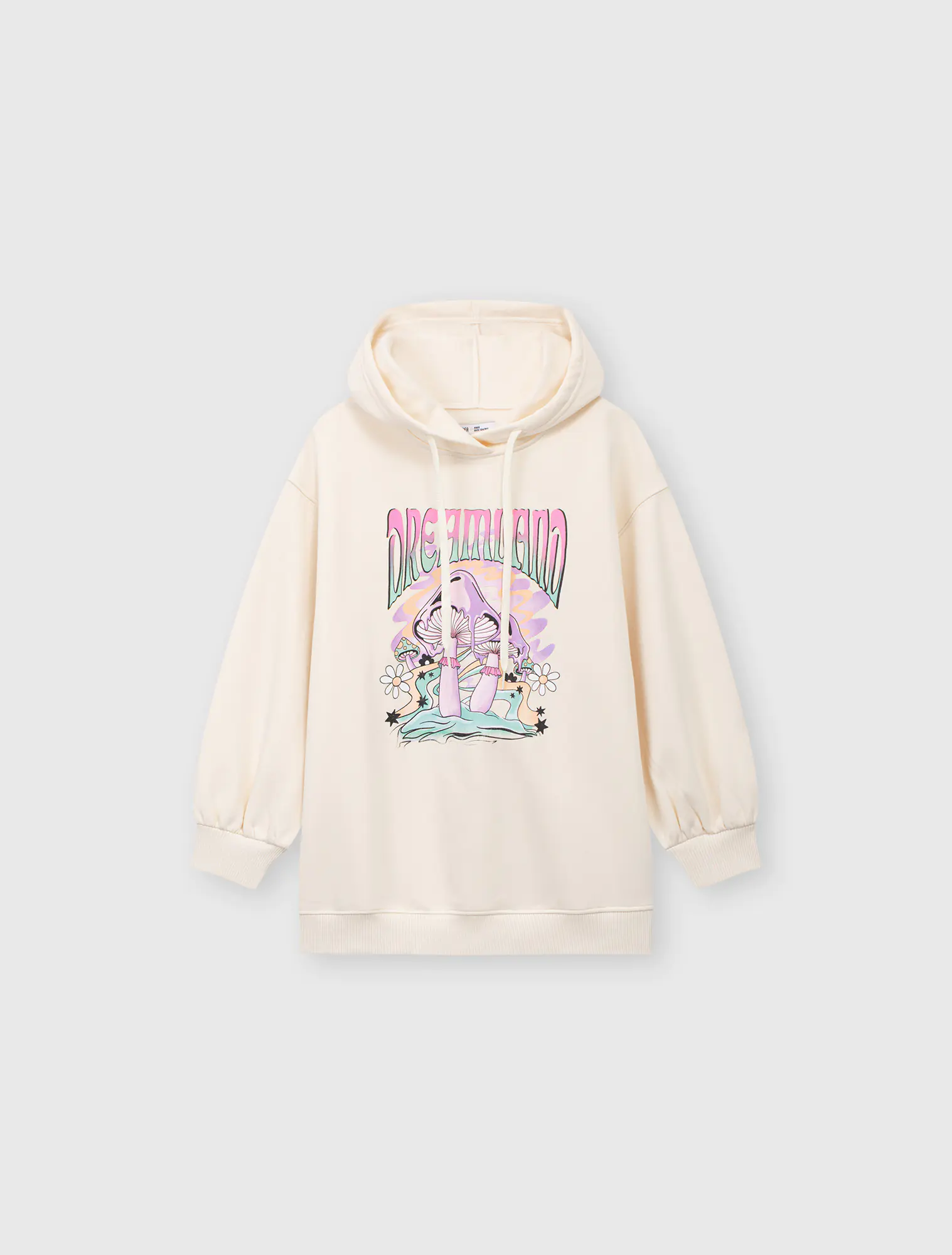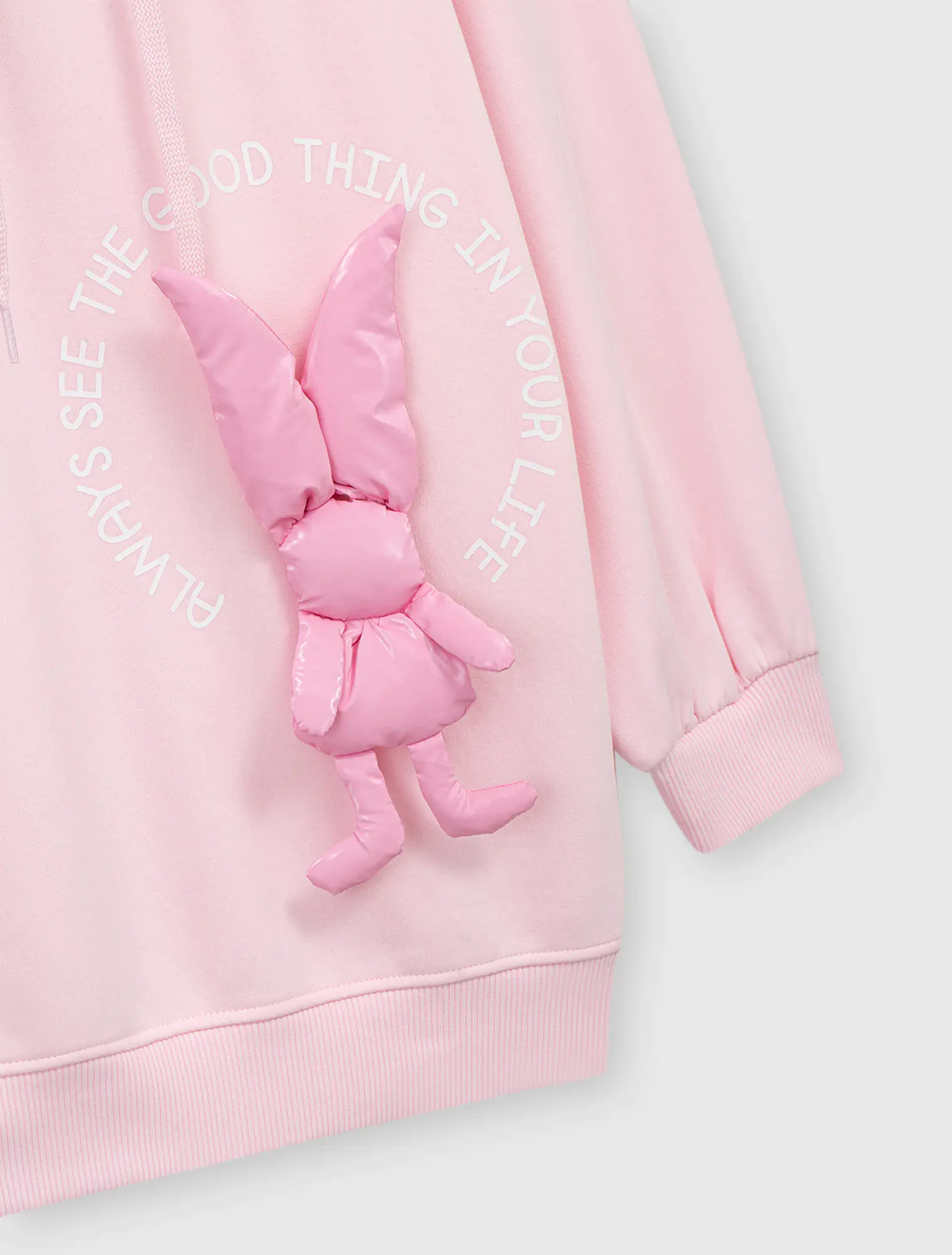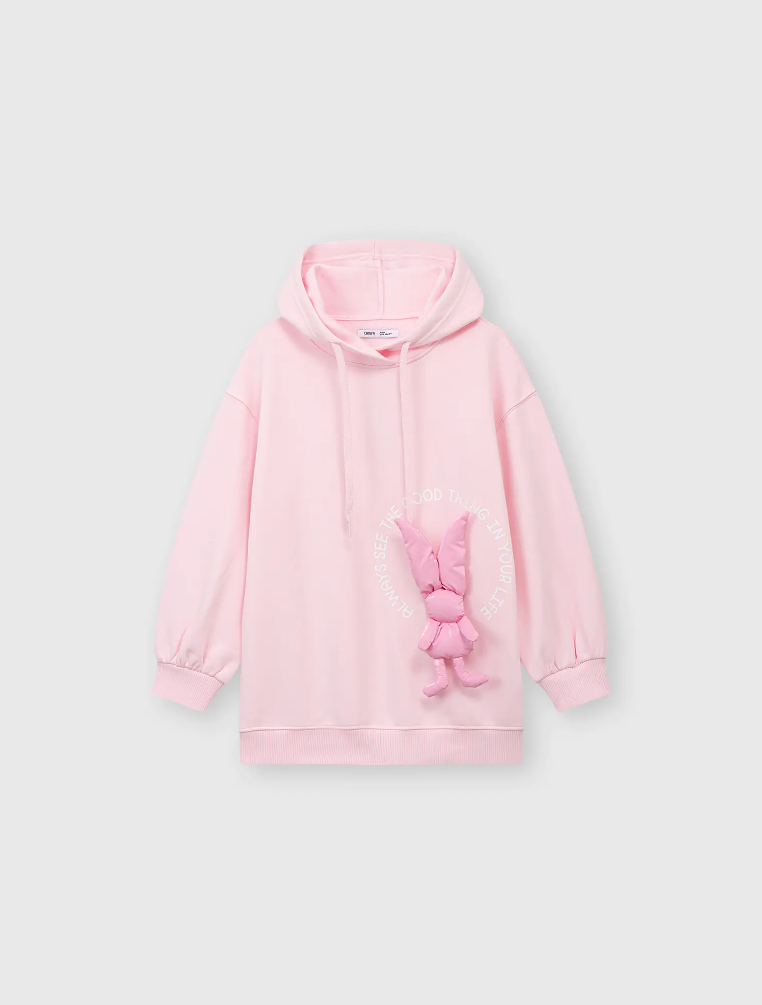 Áo hoodies bé gái dáng dài. Phom dáng nữ tính, thời trang. Màu sắc tươi sáng, hình in và phụ kiện trang trí phng phú, đáng yêu, dễ kết hợp nhiều phong cách và trang phục.