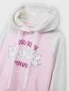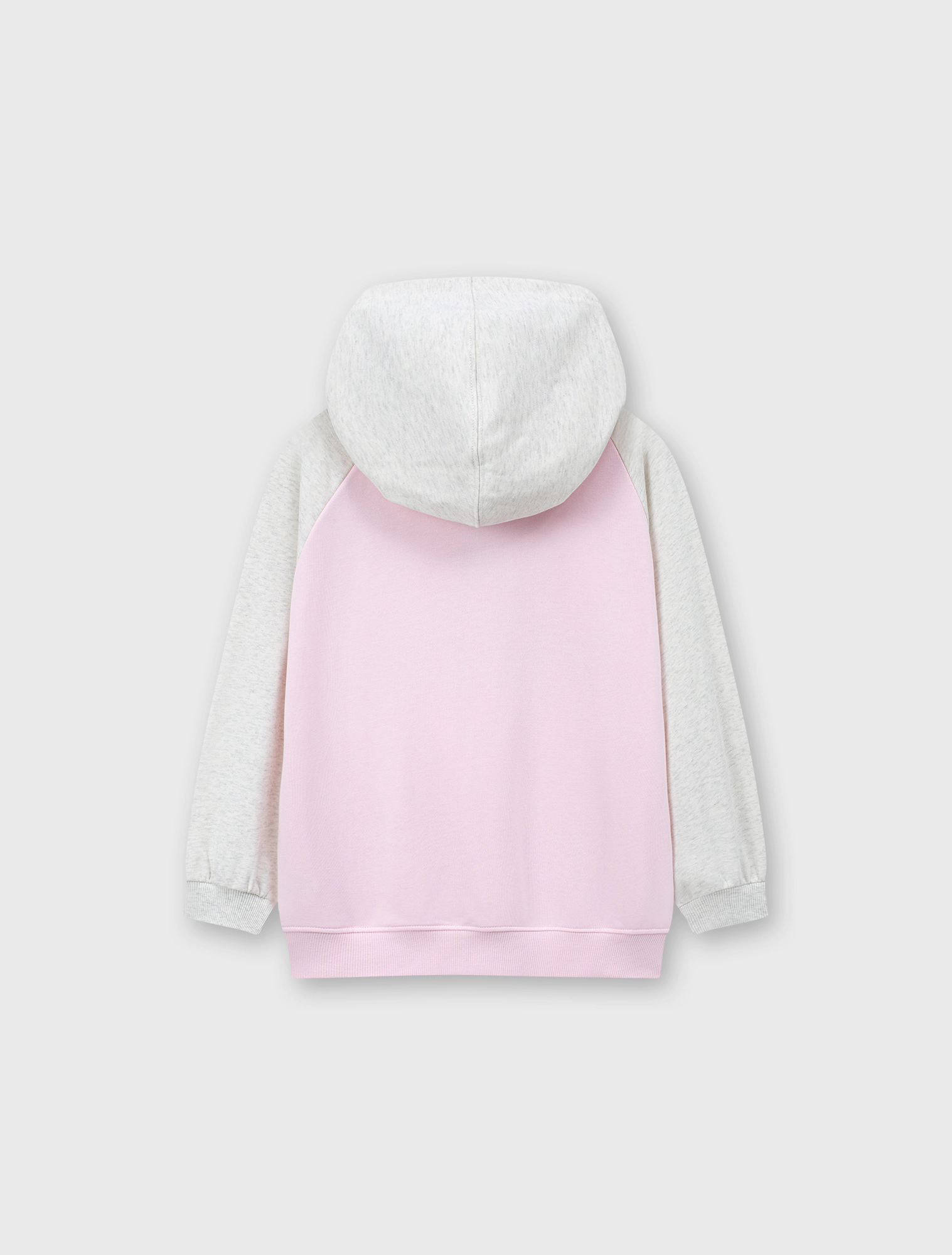 Áo nỉ có mũ bé gái. Phom relax thoải mái, tay áo Zaglang phối màu thời trang, thân trước có túi ốp to tiện lợi, màu sắc và hình in dễ thương phù hợp với bé gái. Chất liệu Cotton pha mềm mại, giữ ấm tốt, dễ chịu khi mặc.