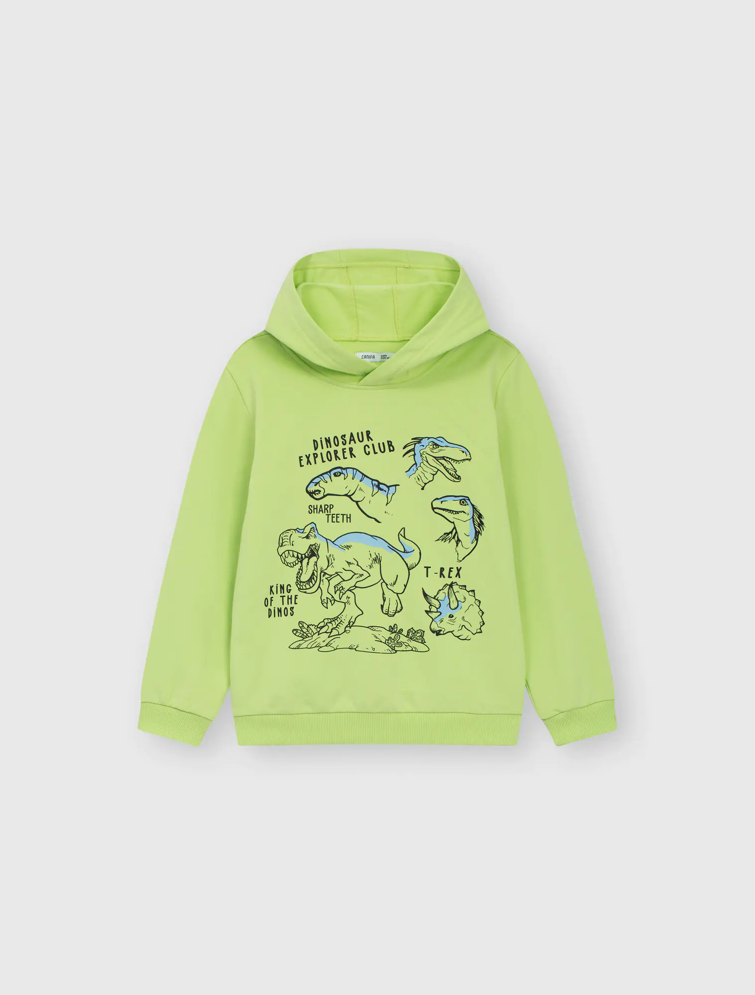 Áo nỉ có mũ bé trai in hình tự do. Phom dáng regular, chất liệu vảy cá độ dày vừa phải, hình in đa dạng nhiều chủ đề phù hợp cho sở thích của các bé.