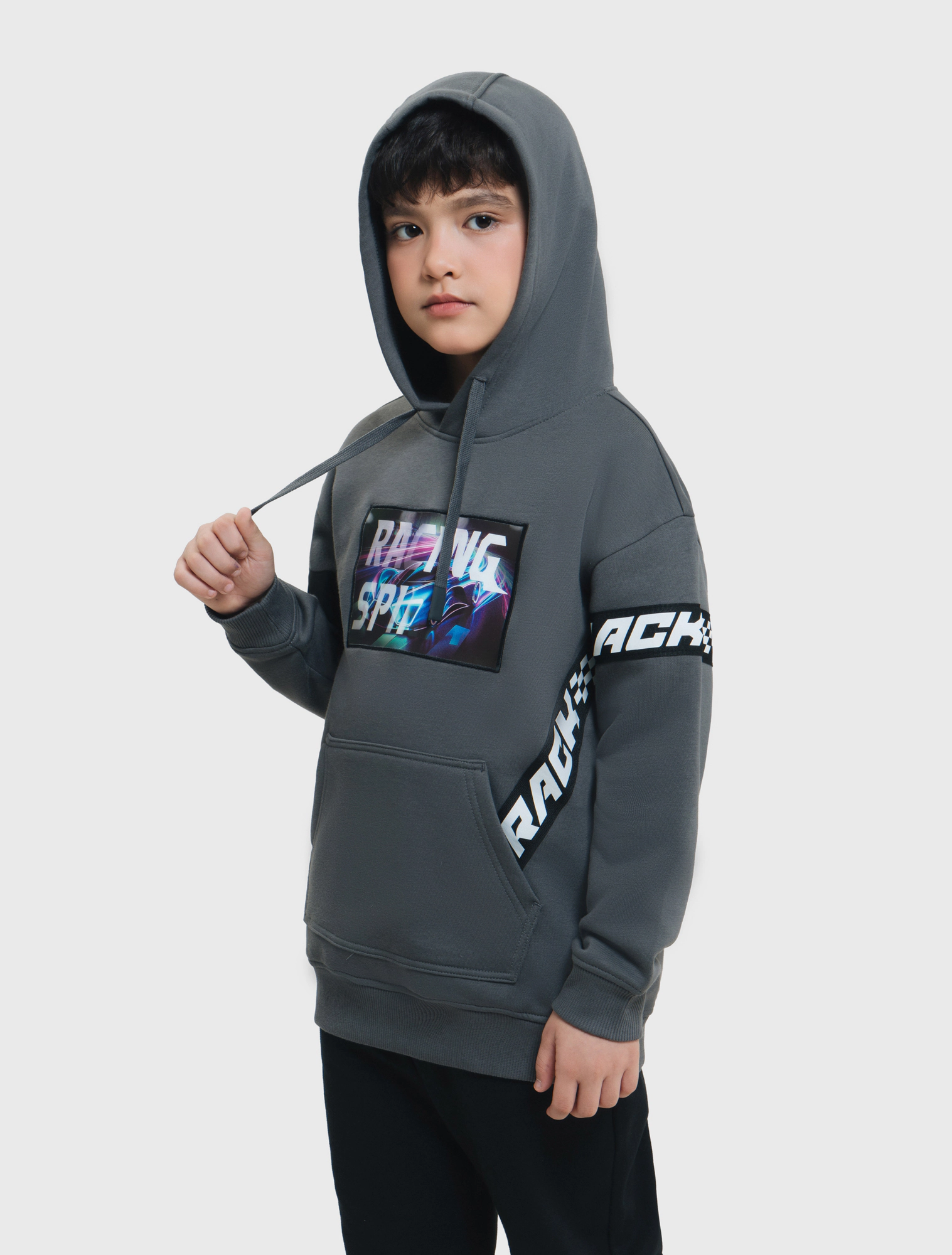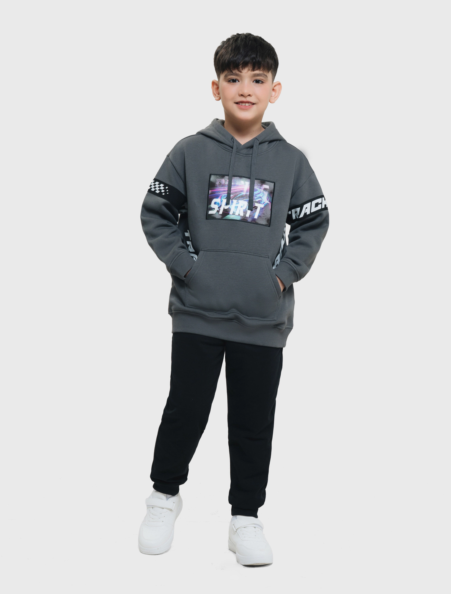 Áo nỉ bé trai có mũ phong cách sport khỏe khoắn.