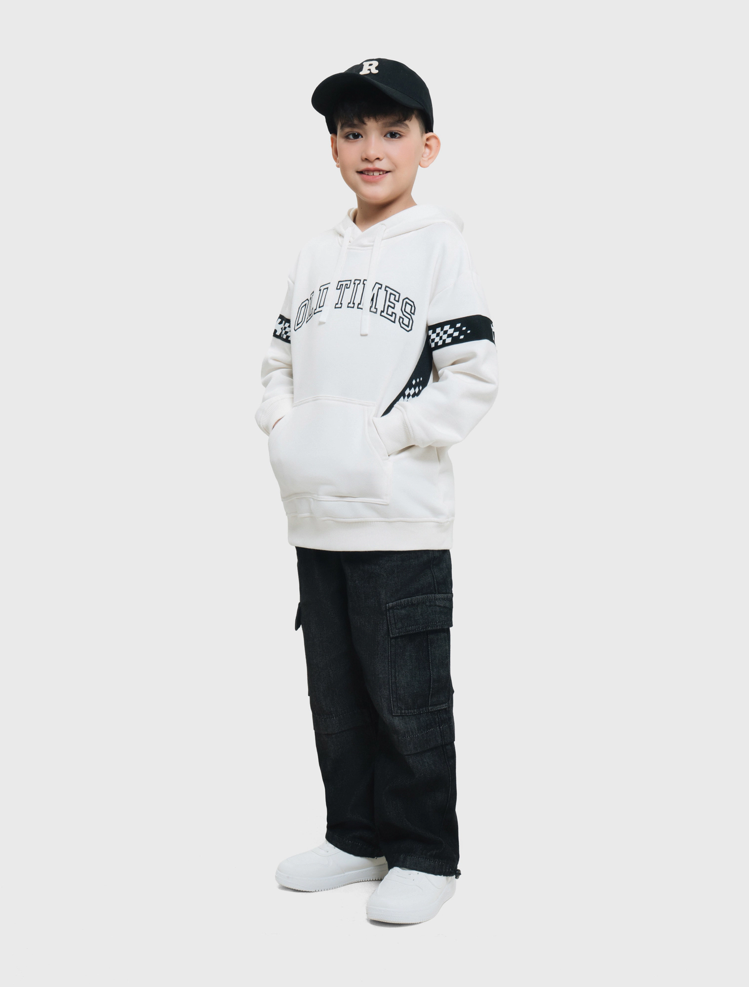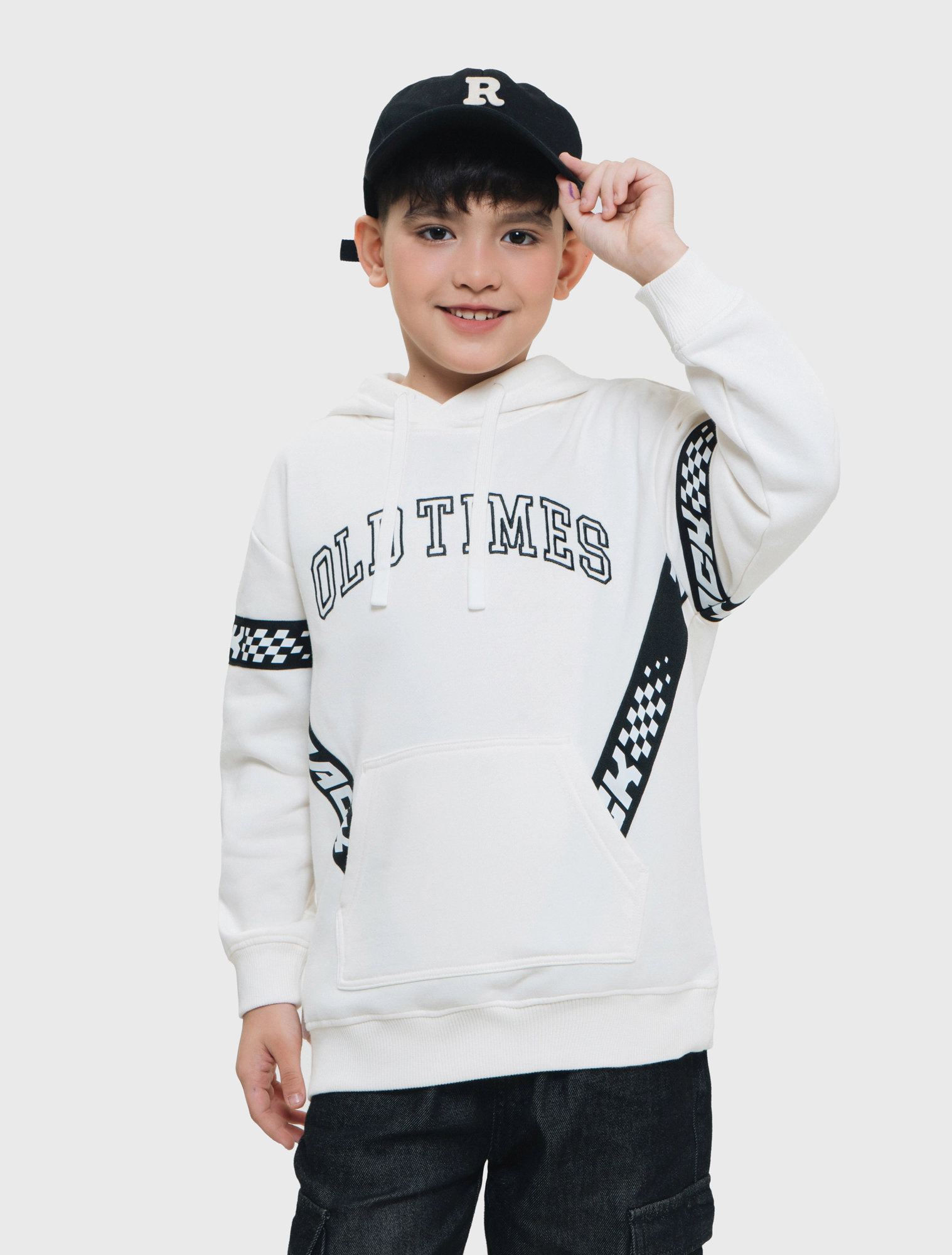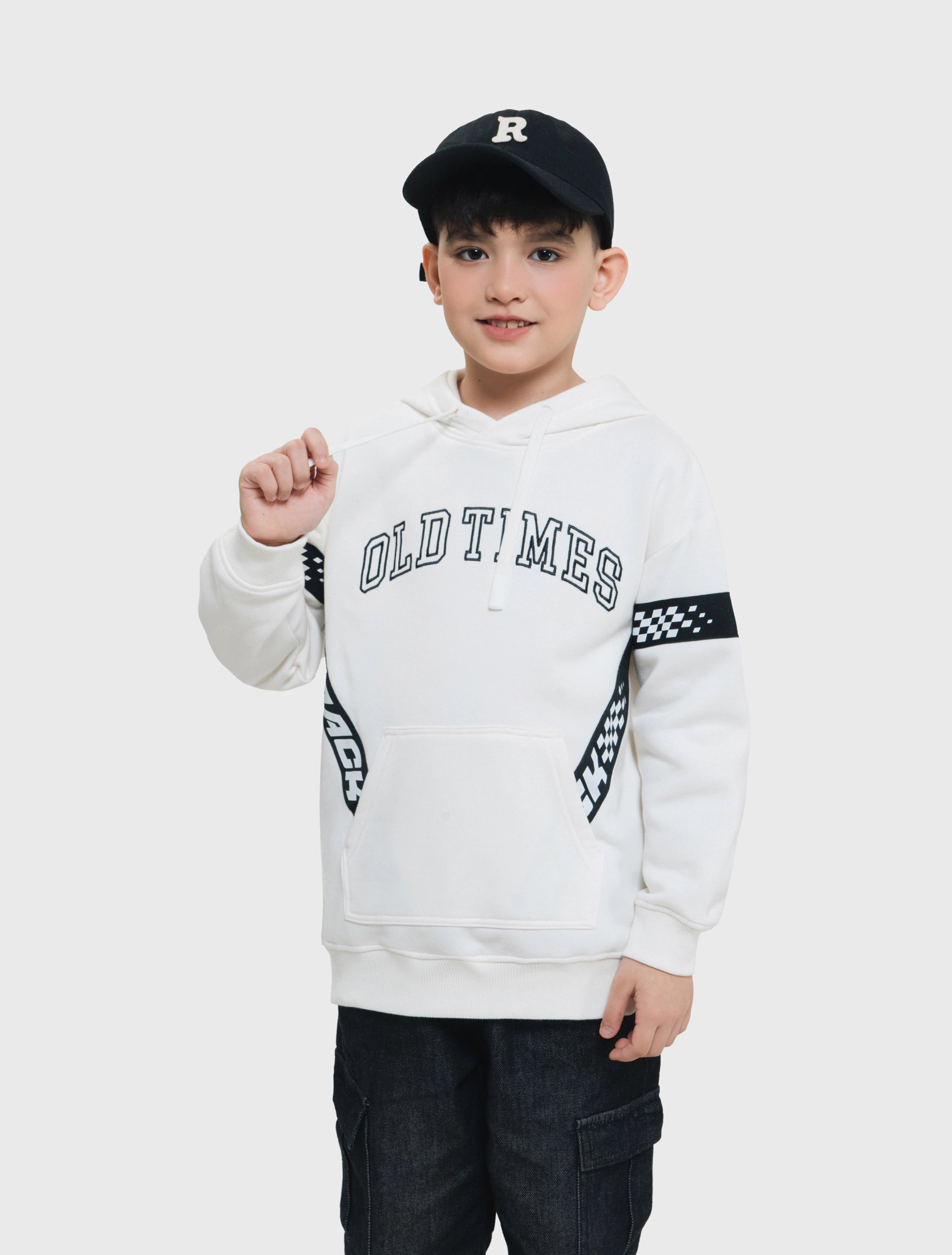 Áo nỉ bé trai có mũ phong cách sport khỏe khoắn.