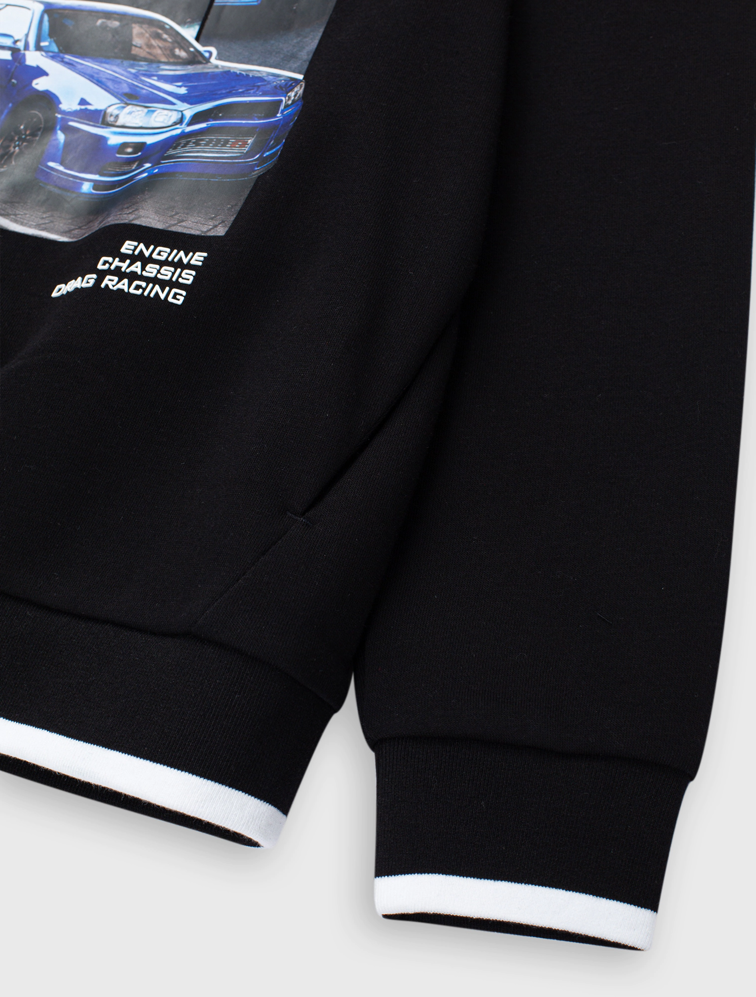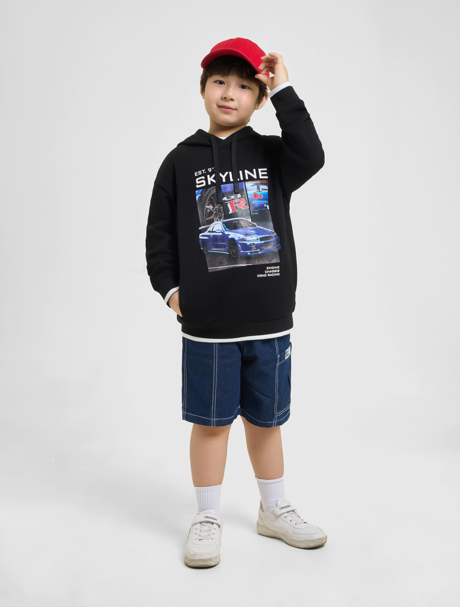 Áo nỉ bé trai có mũ có hình in, chất liệu bông ấm áp, hình in cá tính khỏe khoắn cho nhóm lớn, màu sắc đa dạng tạo sự lựa chọn thoải mái cho các bé.