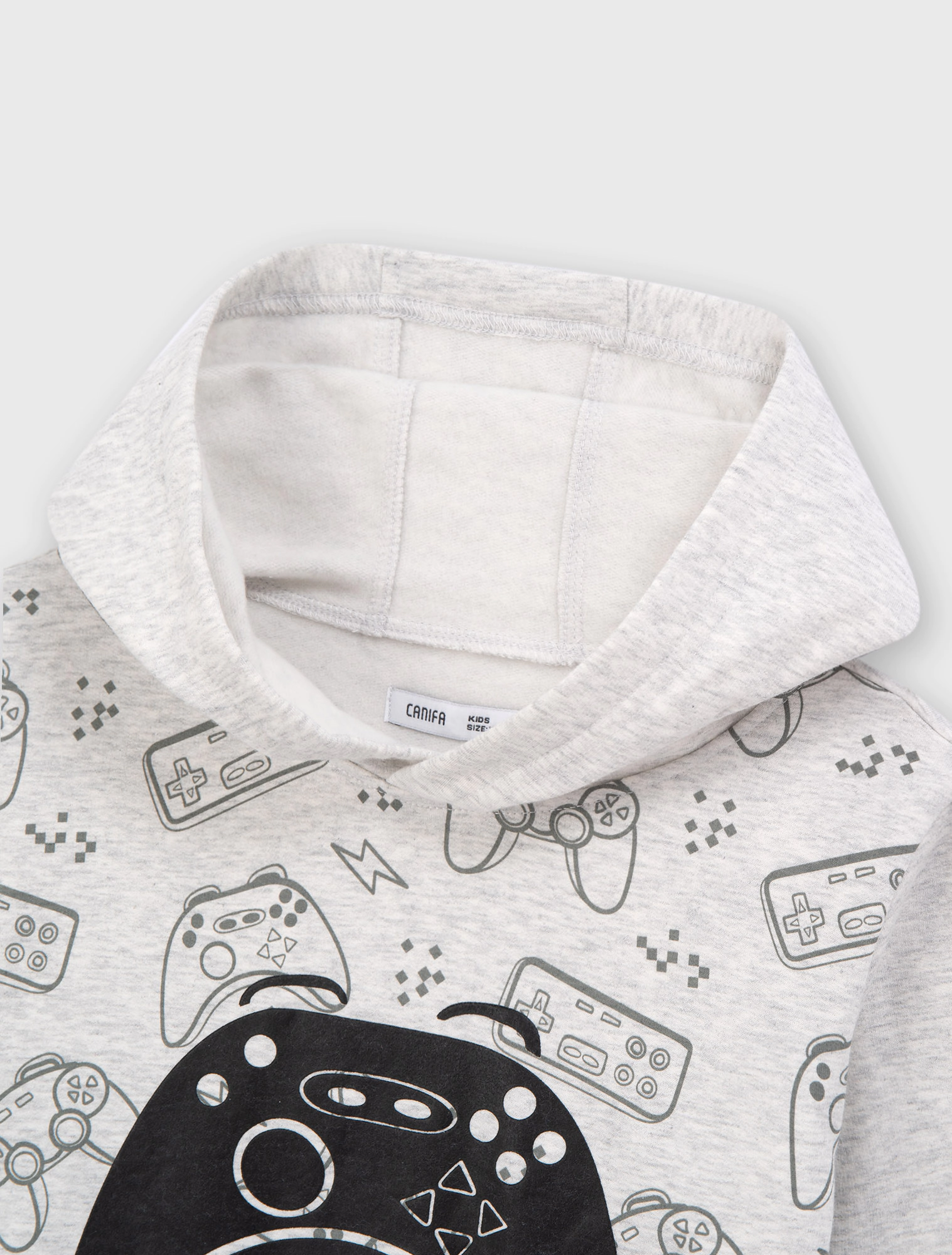 Áo nỉ bé trai có mũ, chất liệu cotton pha, hình in