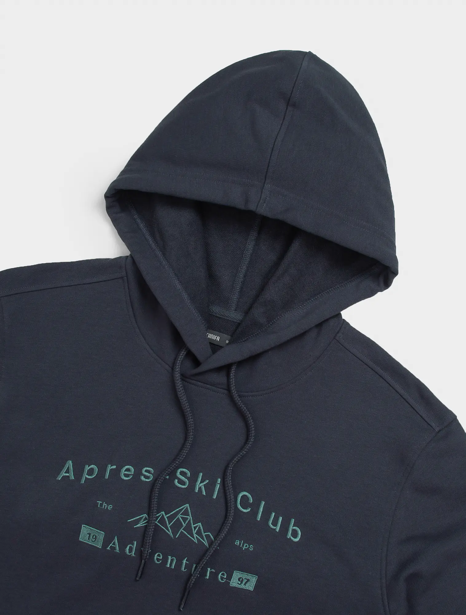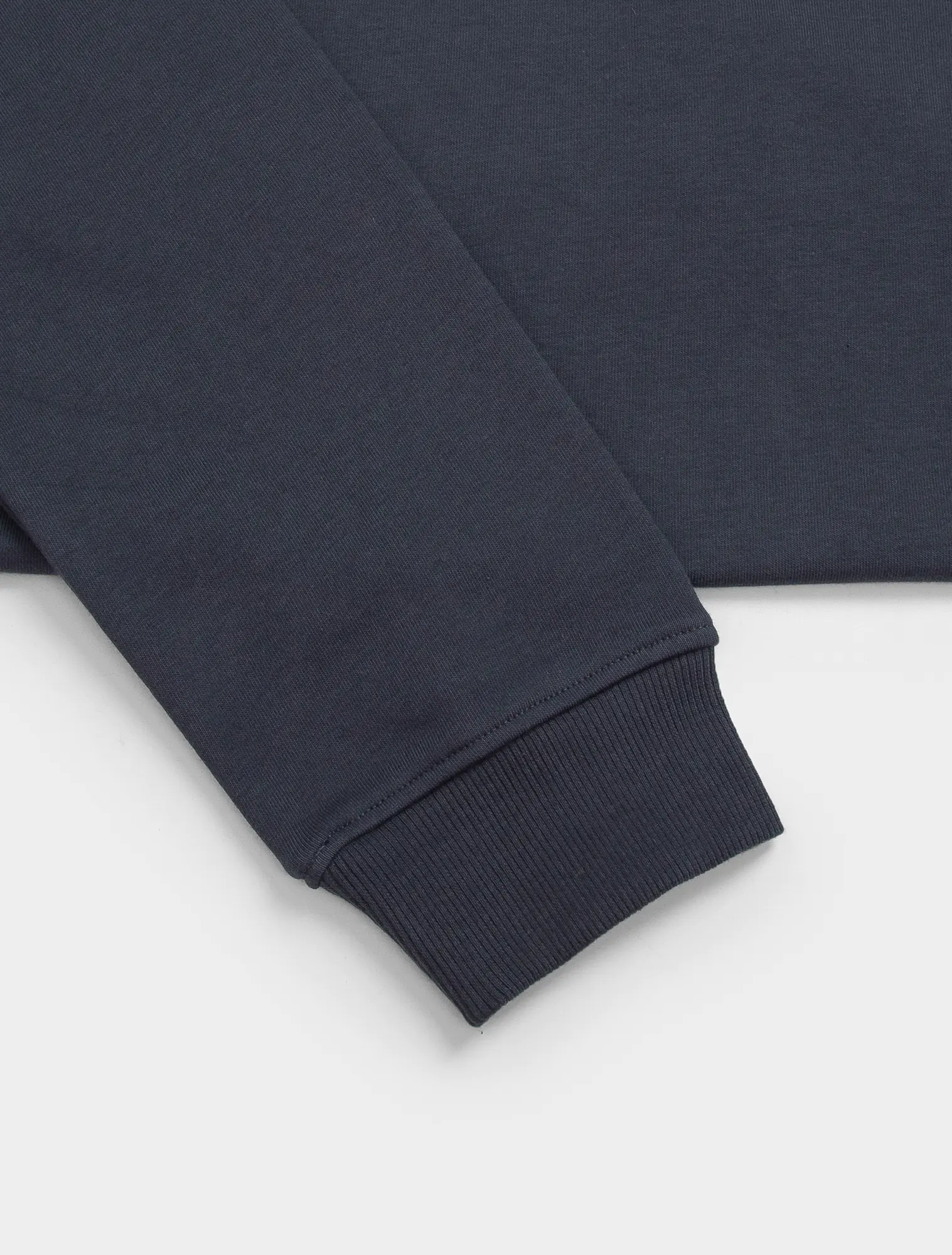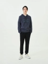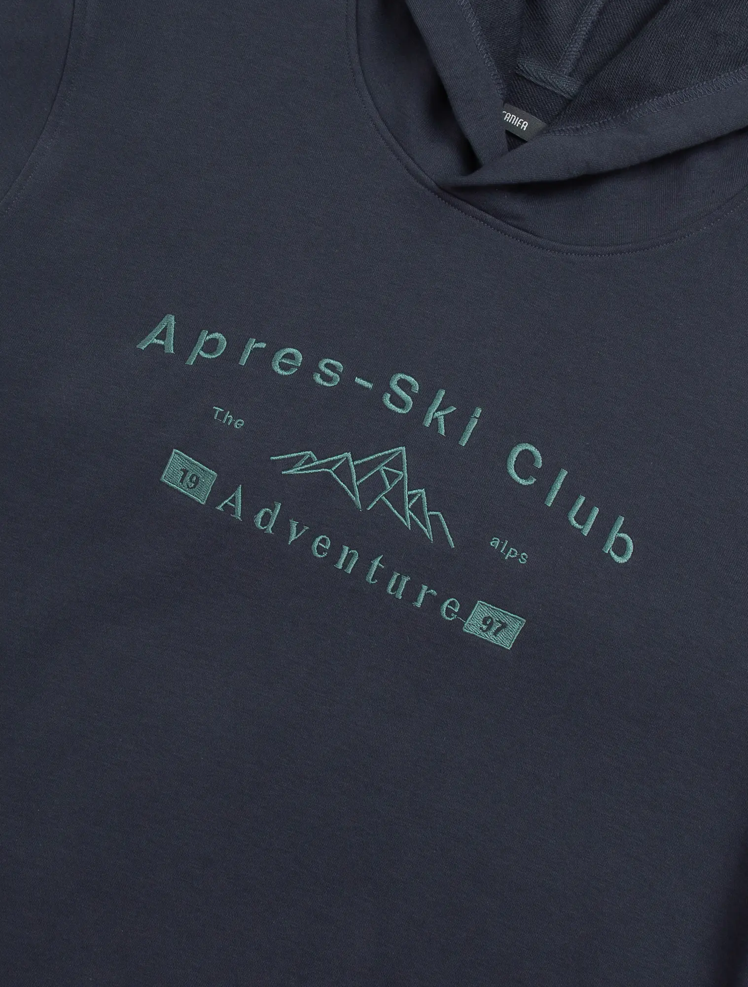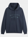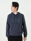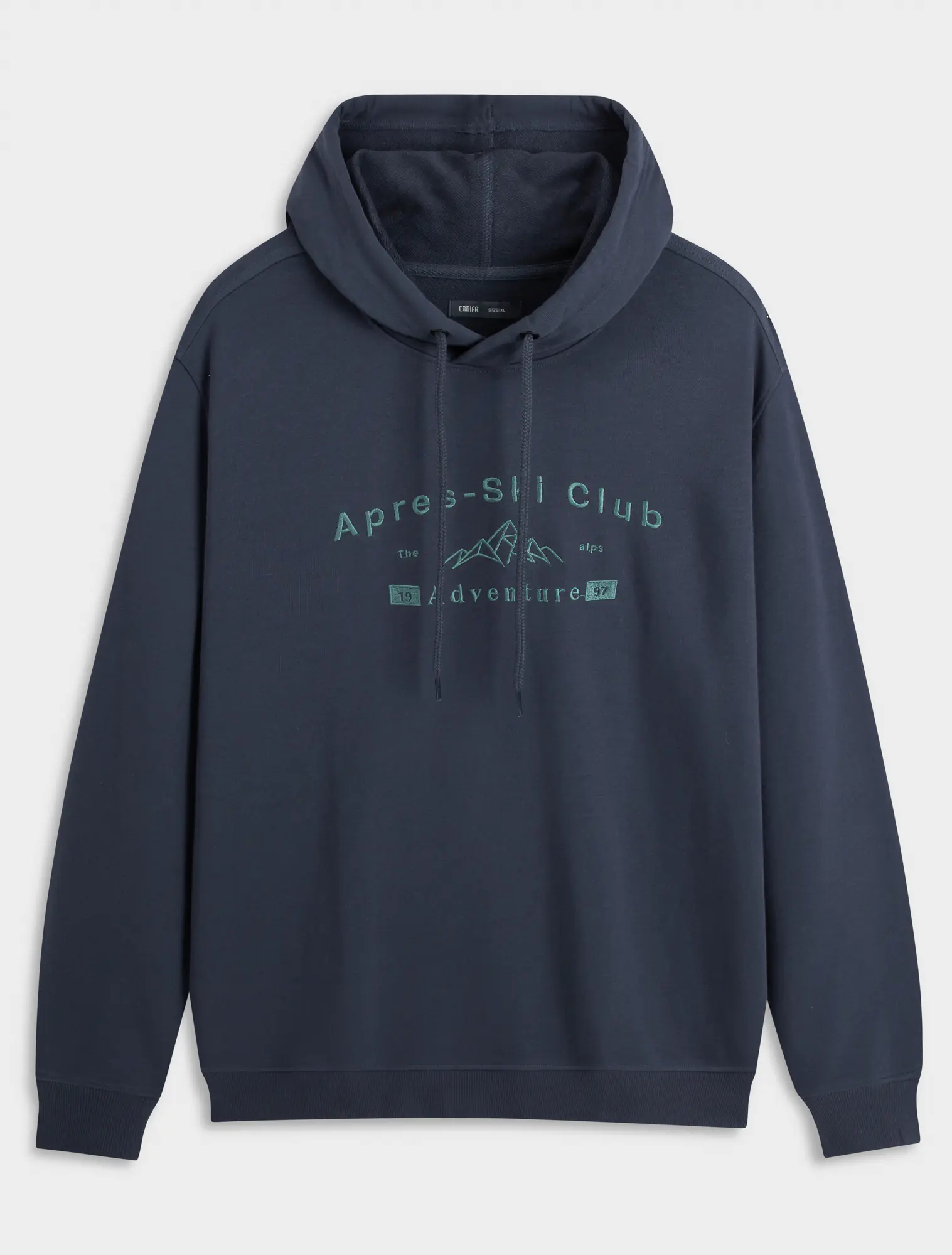 Áo nỉ có mũ chất liệu cotton pha, mặt trái chải xù mềm và in hoạ tiết. Cổ tay và gấu bo gân nổi.