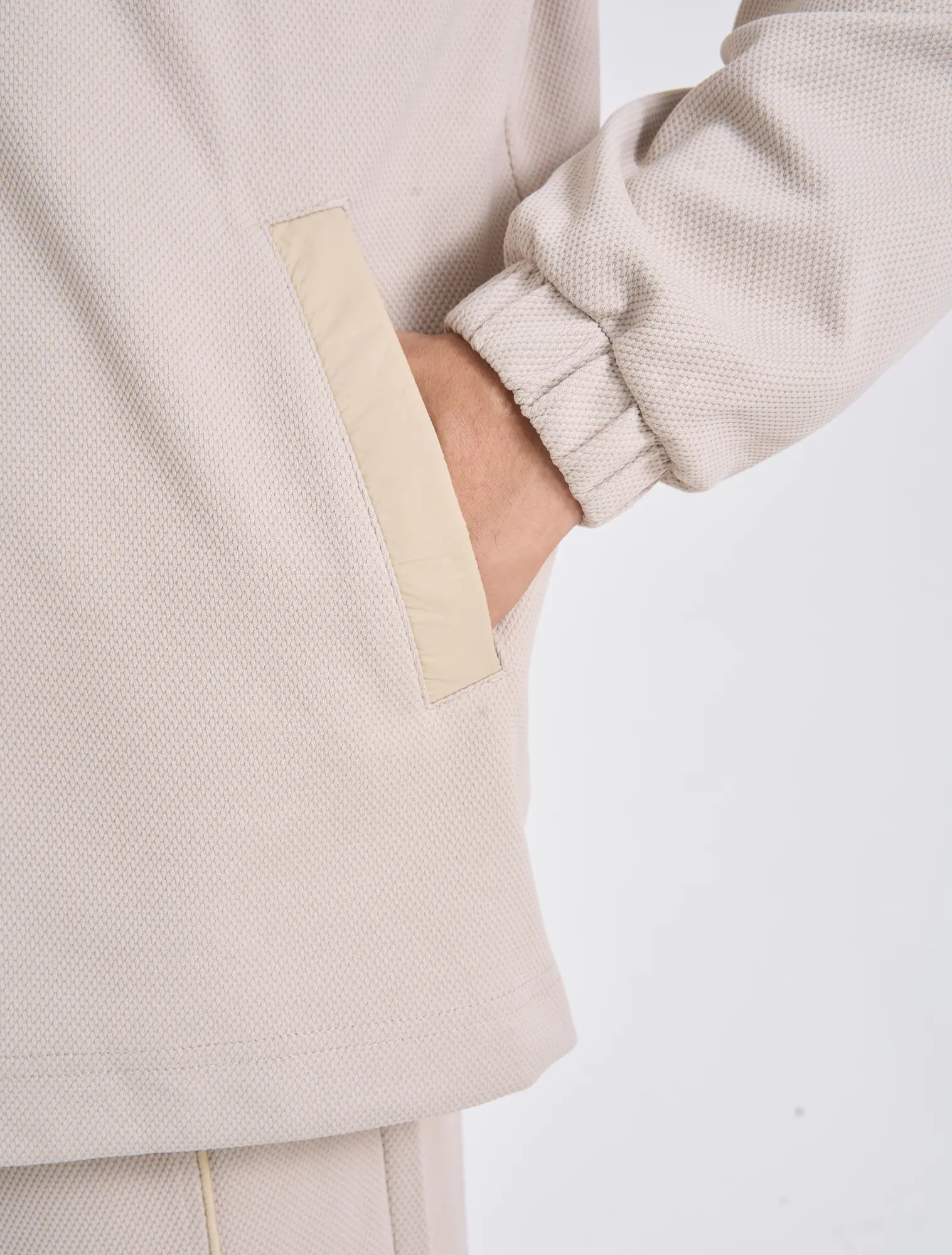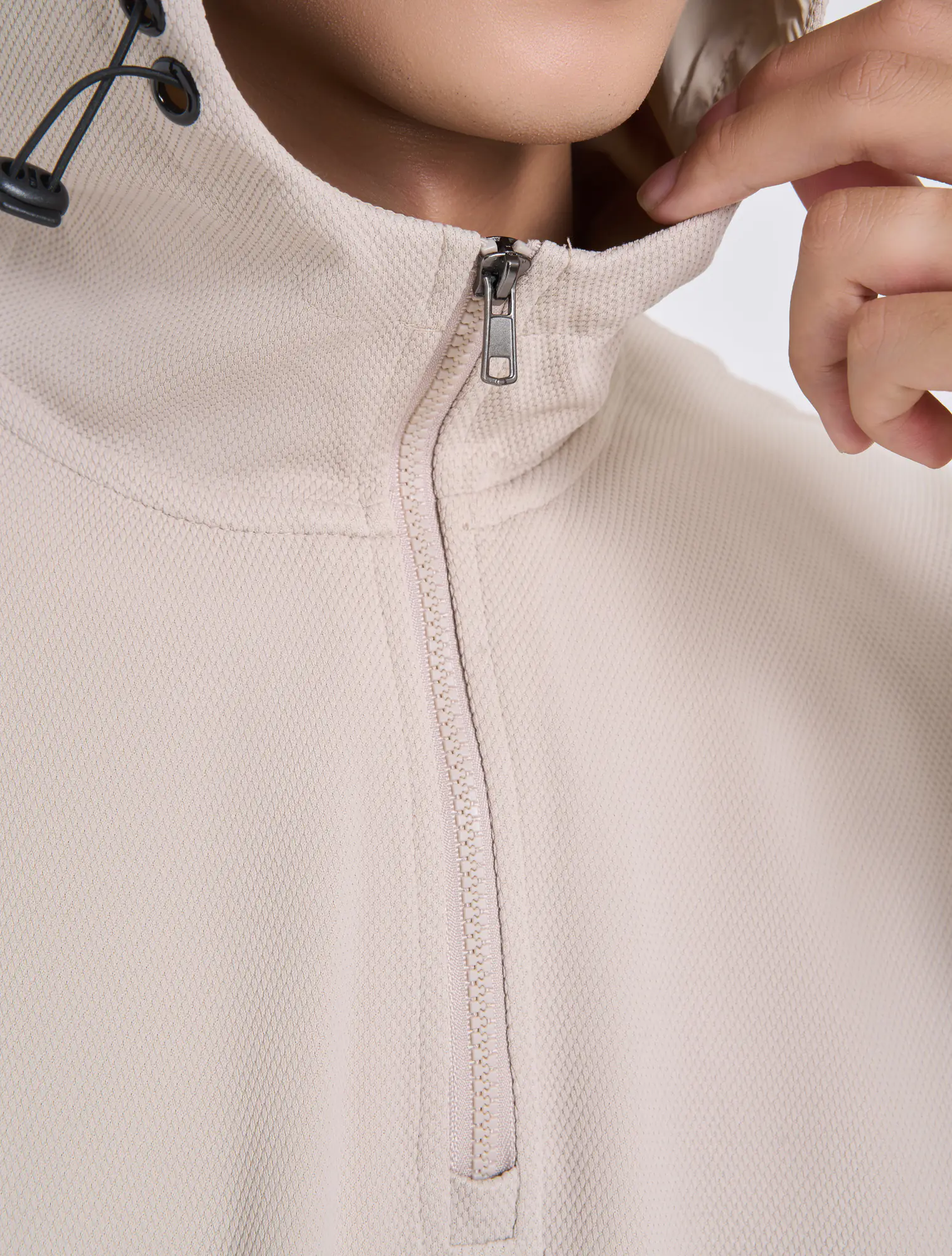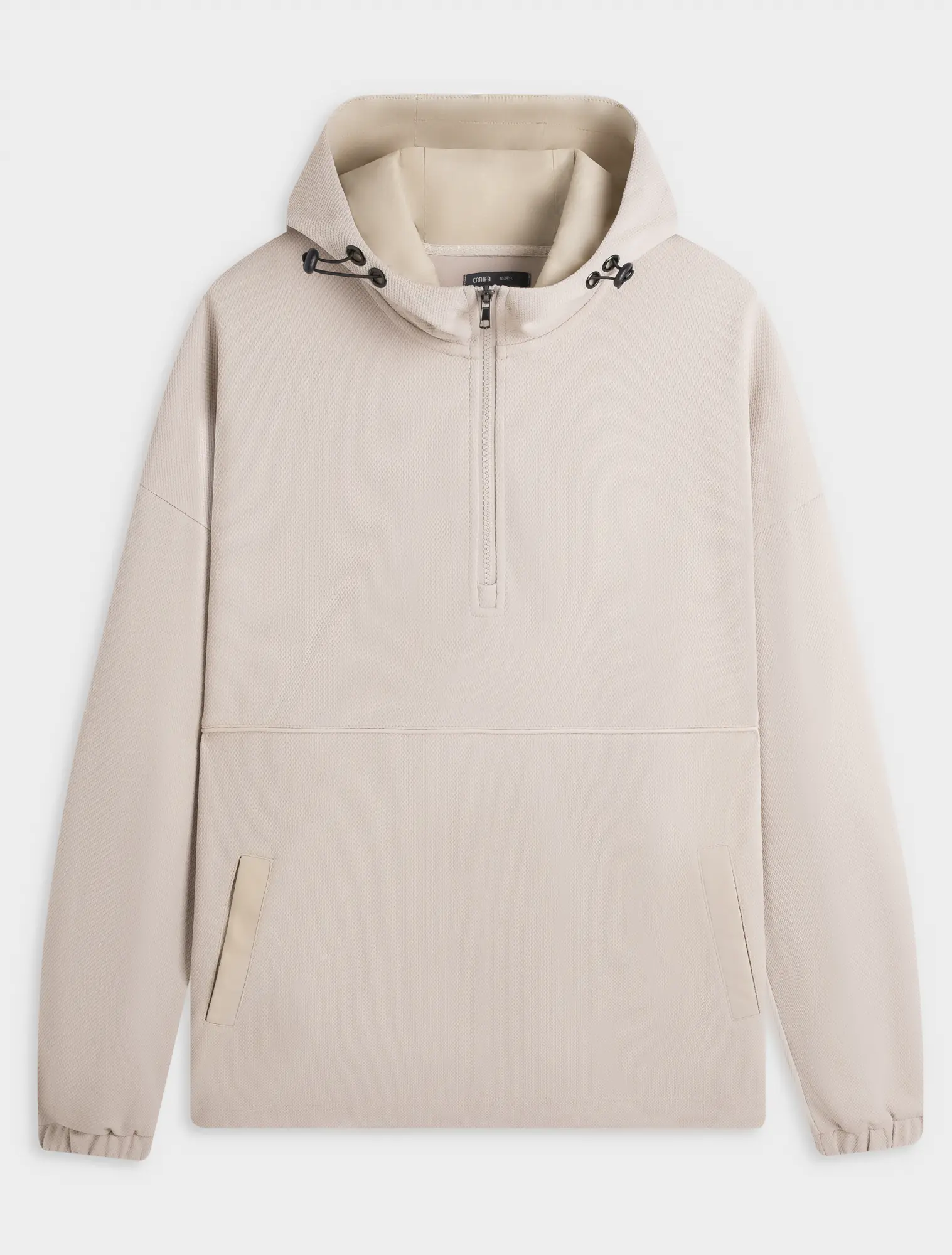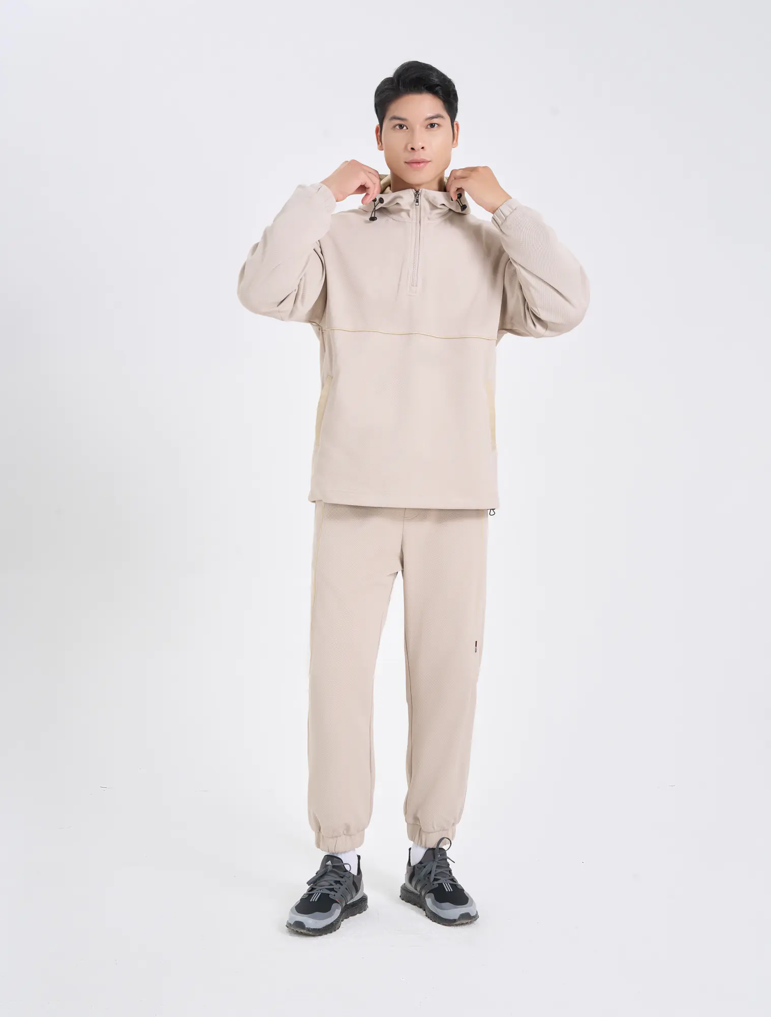 Áo khoác nỉ có mũ, dài tay, chui đầu mở khóa lửng. Có 2 túi thân trước phối vải gió, gấu luồn chun co giãn. Phù hợp nhiều hoàn cảnh sử dụng.