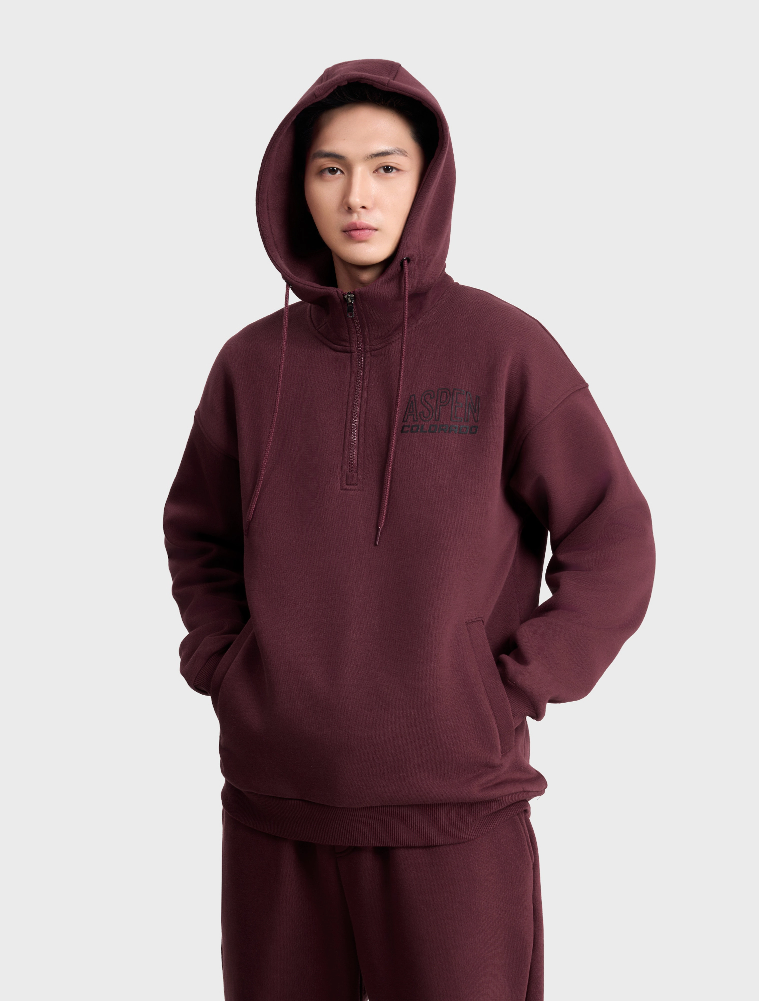 Áo nỉ có mũ nam cào bông có khóa cổ