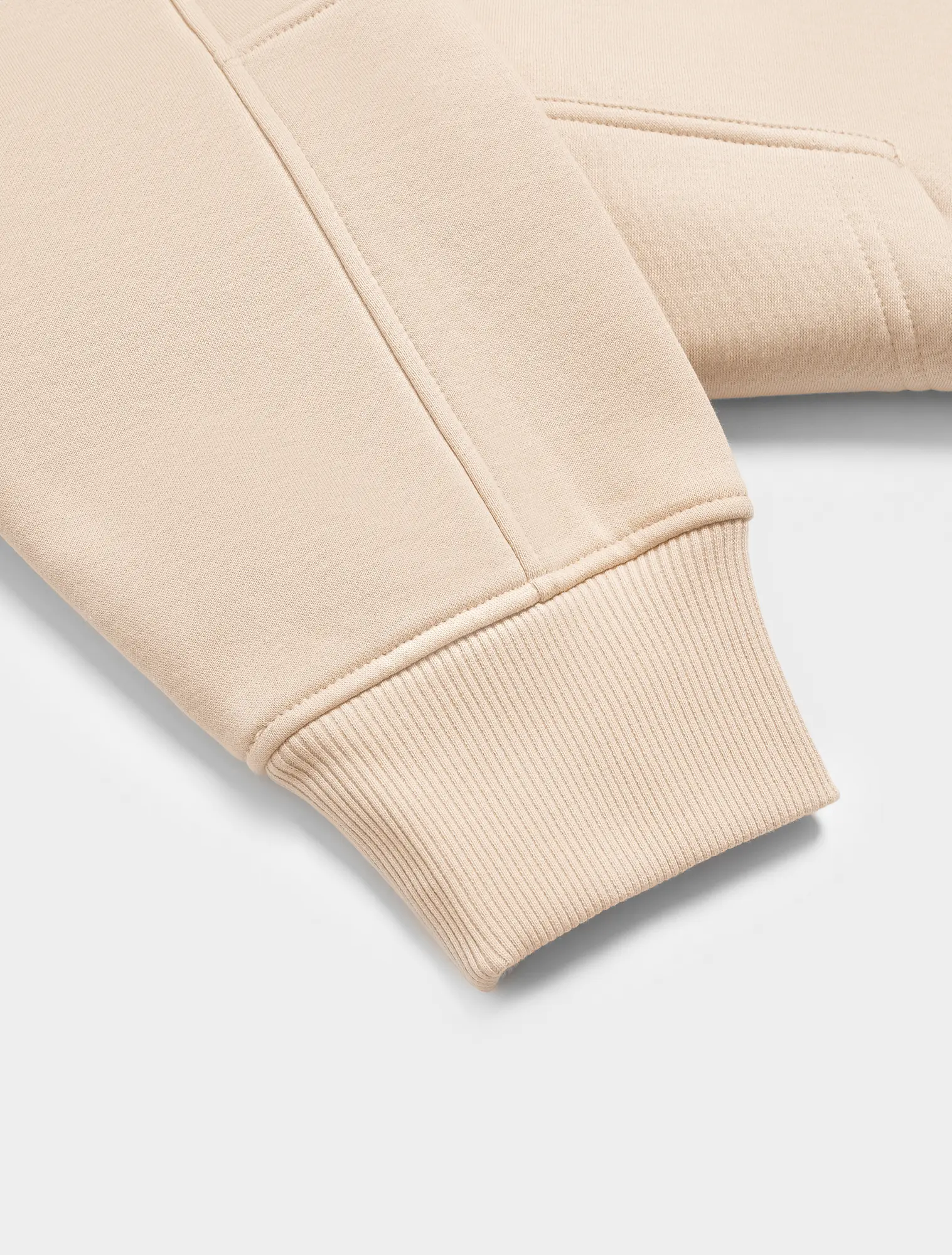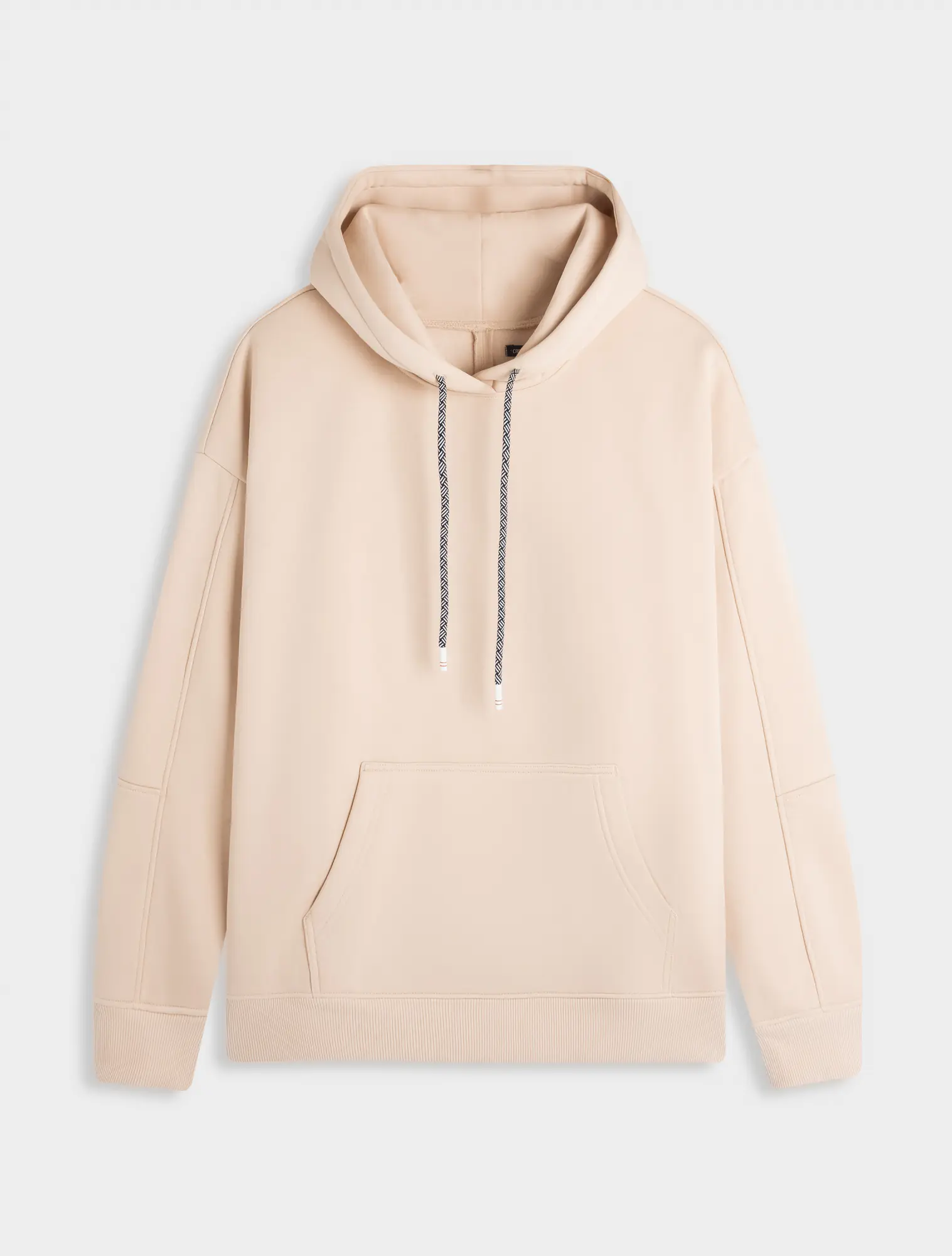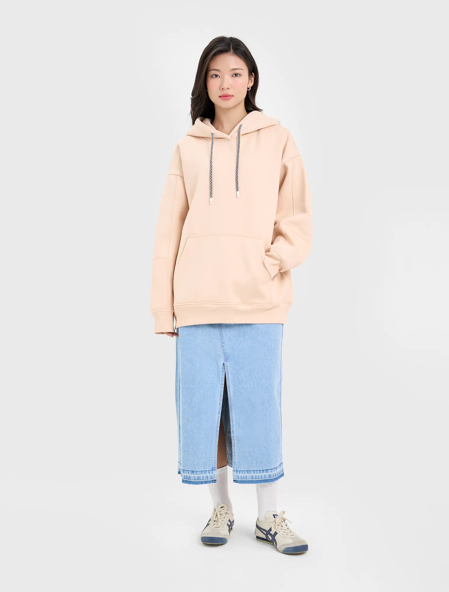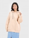 Áo hoodie nữ dáng oversize, với chi tiết các đường cắt bổ trên tay áo tạo điểm nhấn tinh tế.