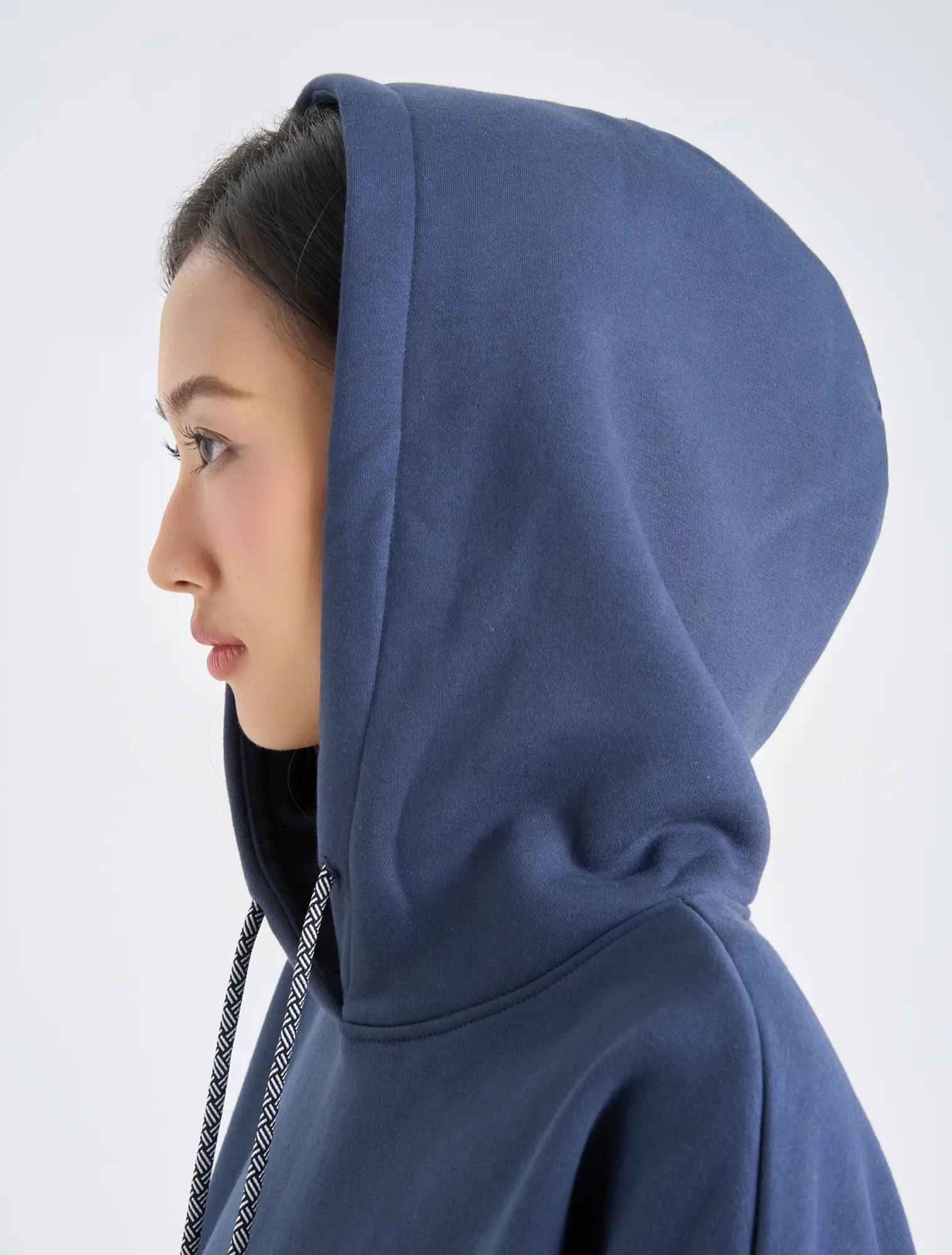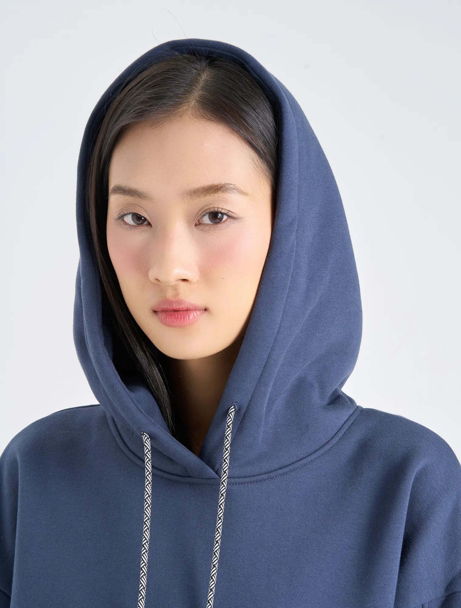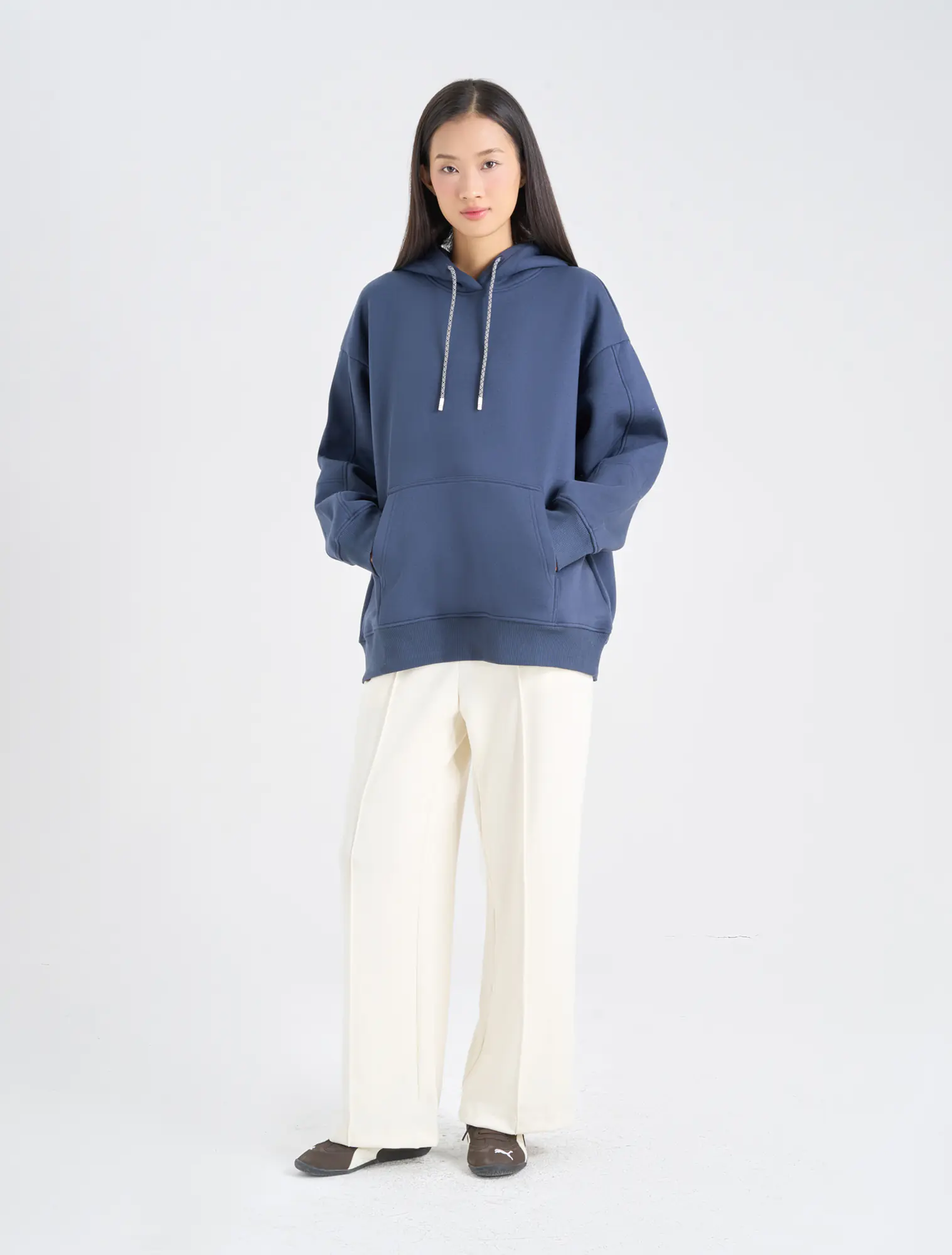 Áo hoodie nữ dáng oversize, với chi tiết các đường cắt bổ trên tay áo tạo điểm nhấn tinh tế.