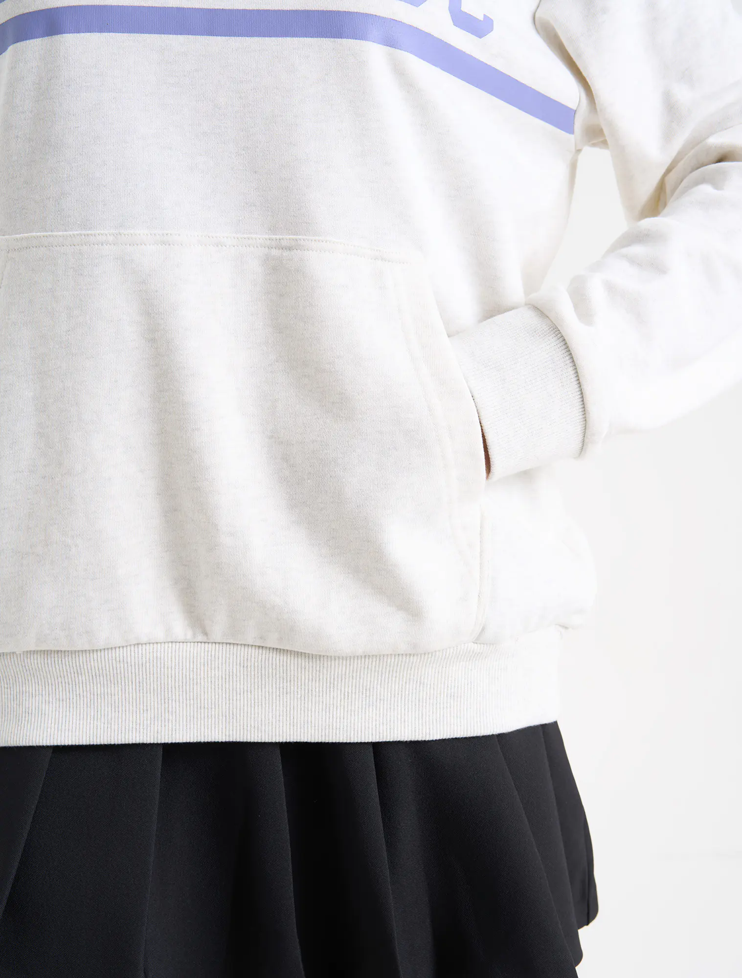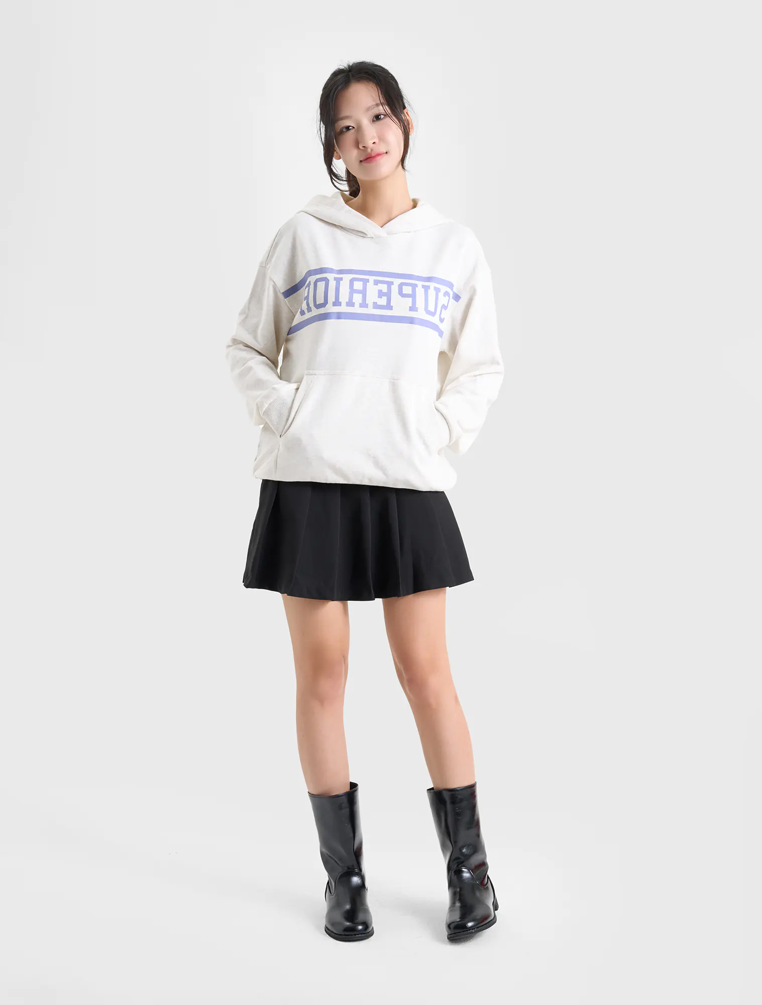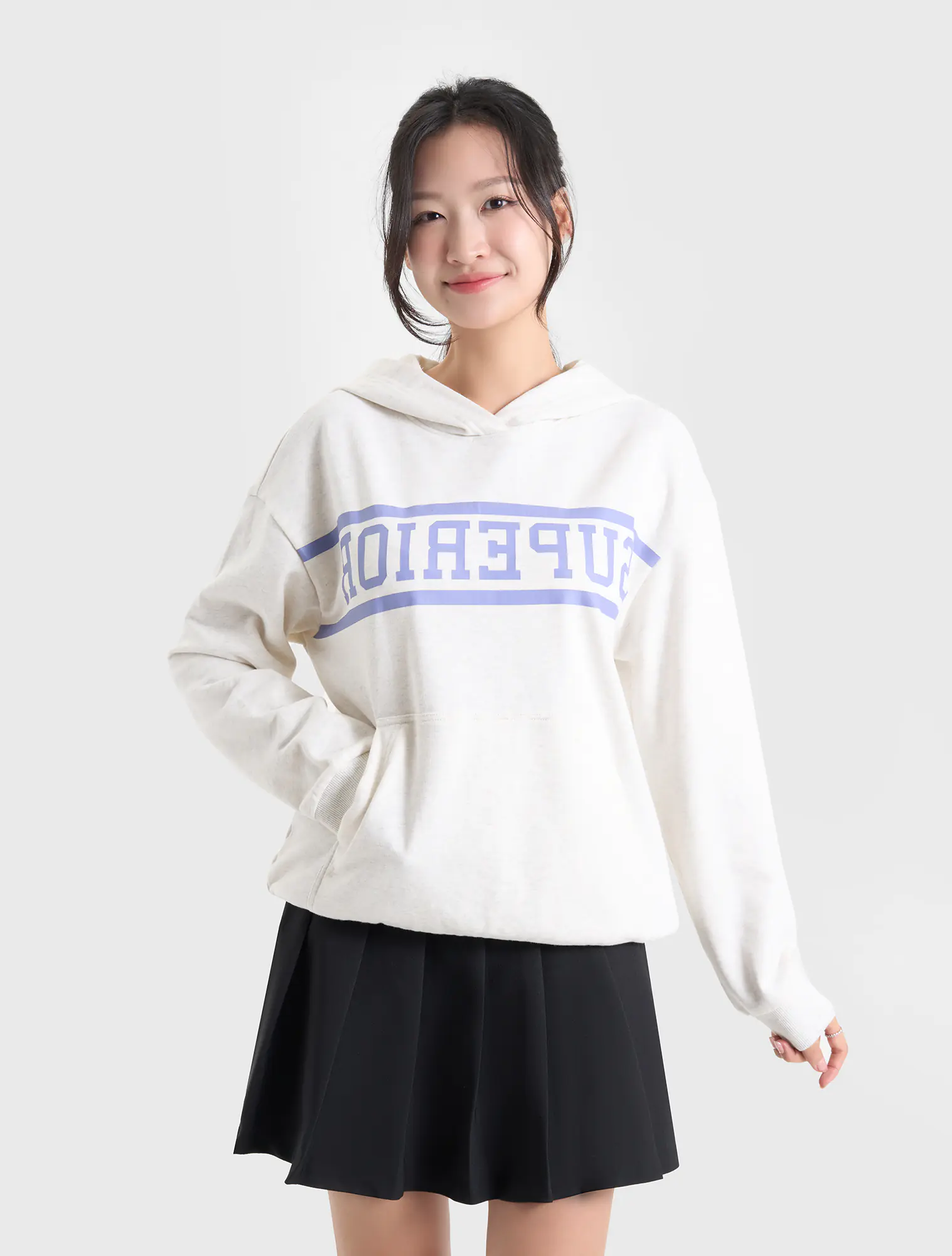 Áo nỉ nữ basic có mũ, với chi tiết đồ họa đơn giản dễ lựa chọn cho khách hàng.