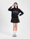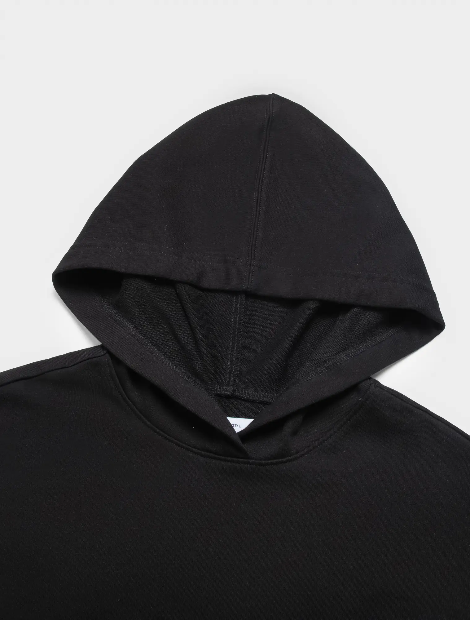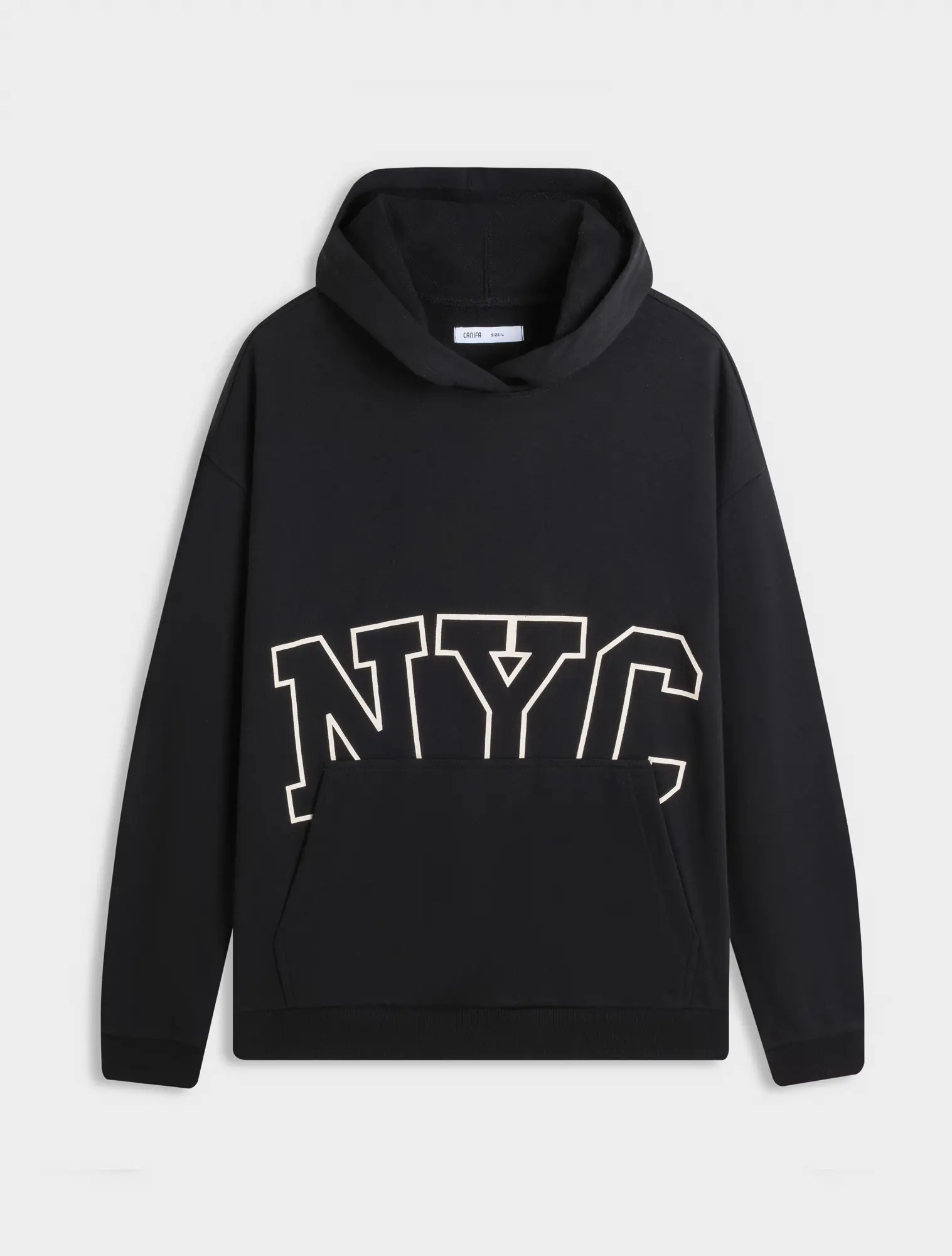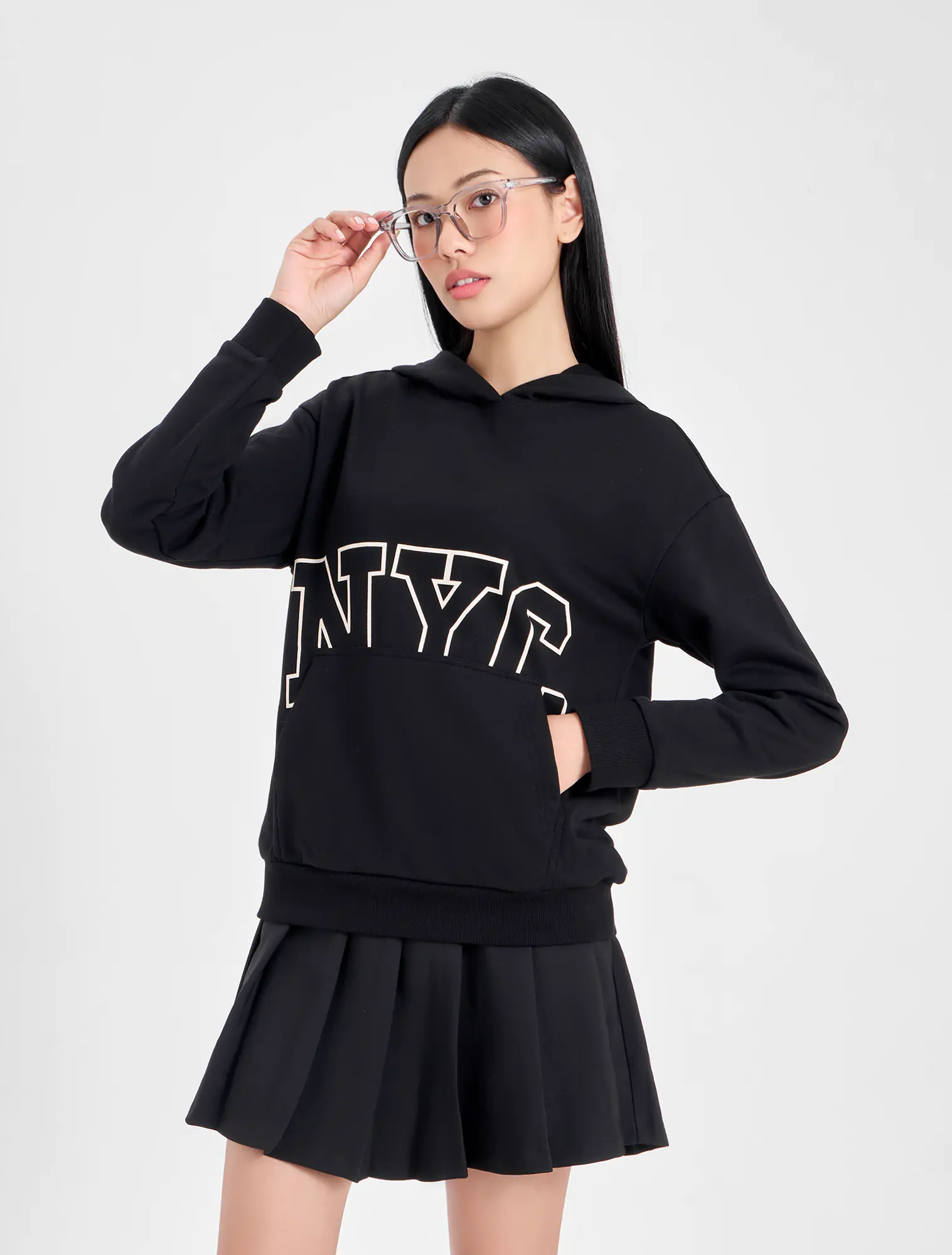 Áo nỉ nữ basic có mũ, với chi tiết đồ họa đơn giản dễ lựa chọn cho khách hàng.