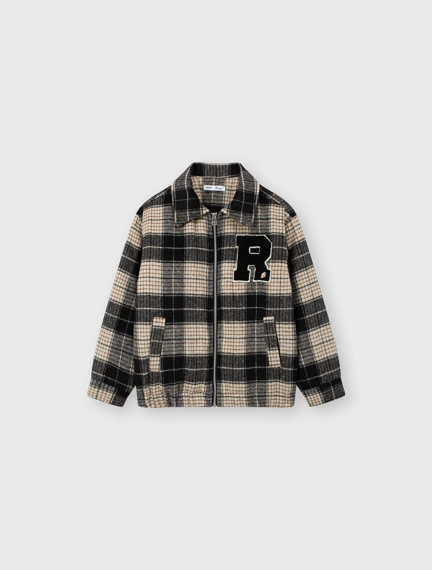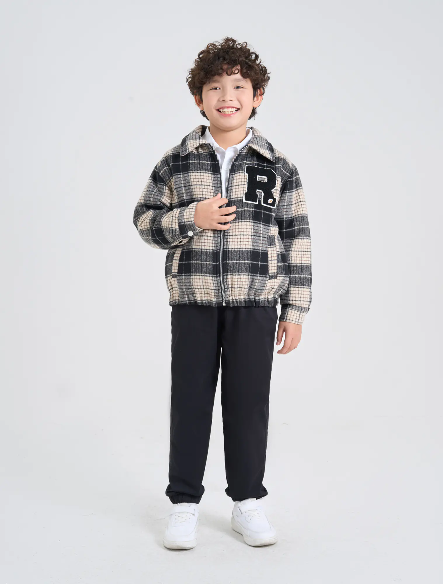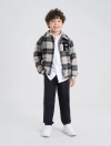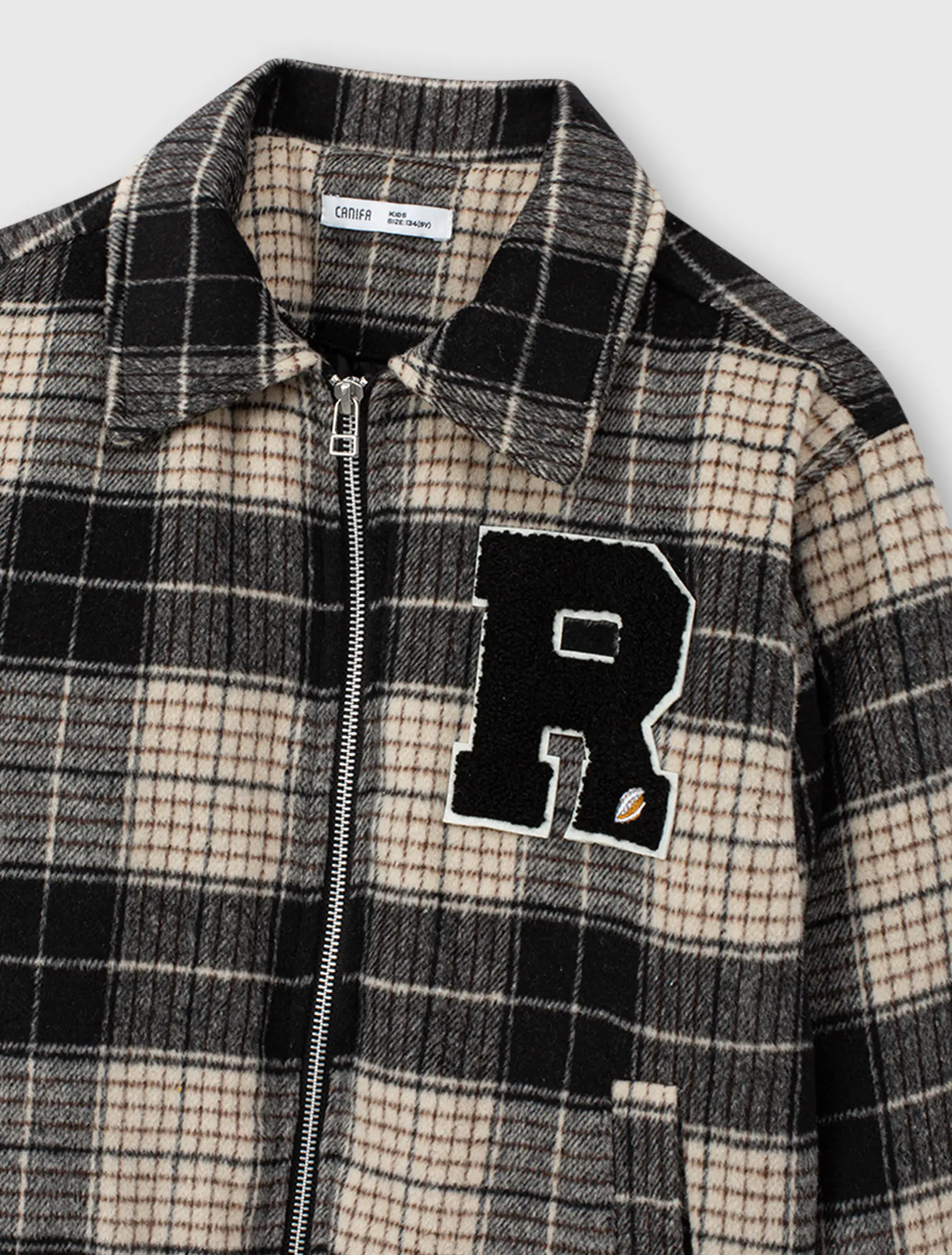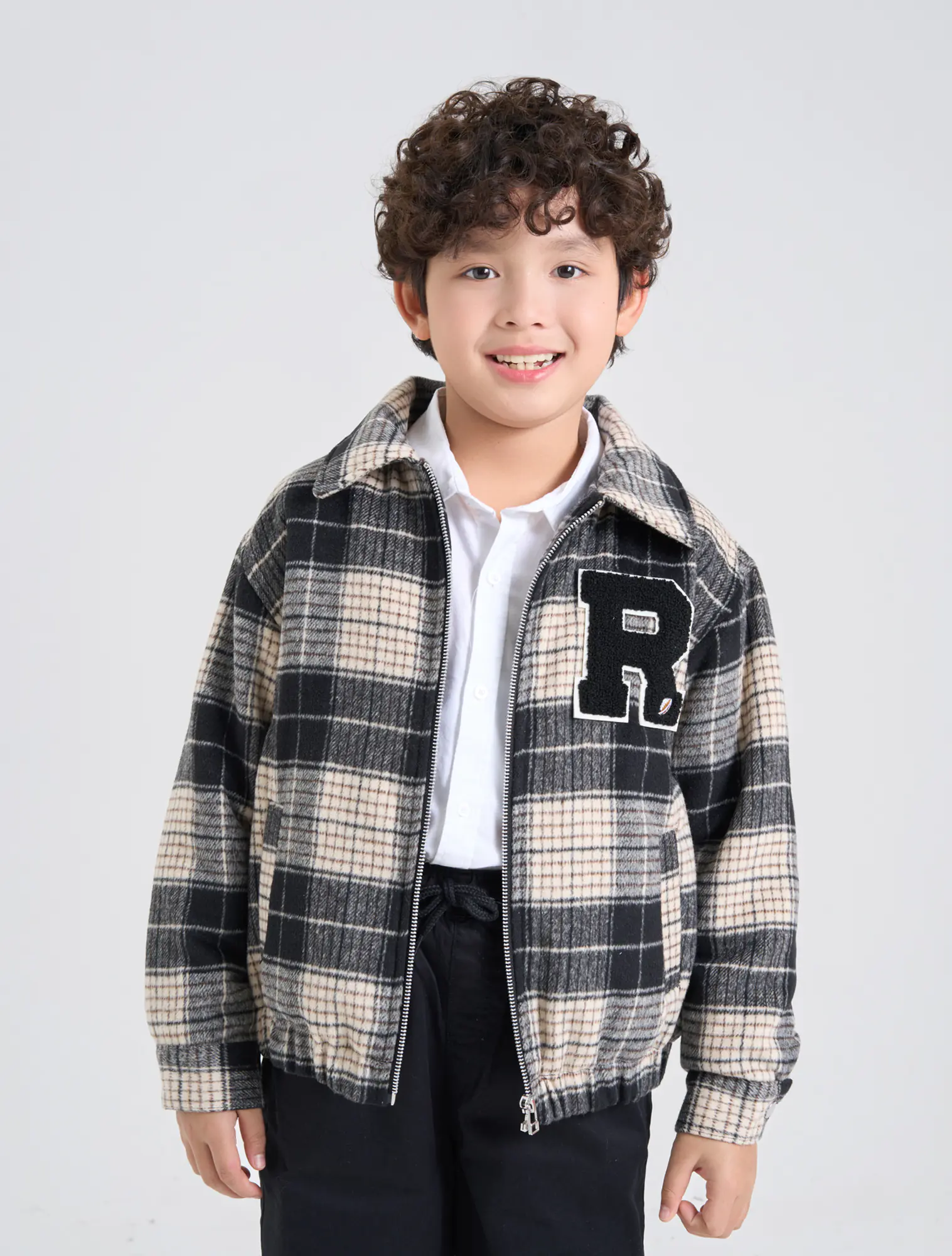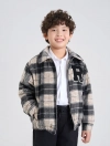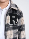 Áo khoác dạ chần bông mỏng cho bé trai. Áo dạ kẻ màu thời trang, chần bông giữ ấm, đính patch chữ xù hiện đại, phù hợp nhiều hoàn cảnh sử dụng mùa đông.