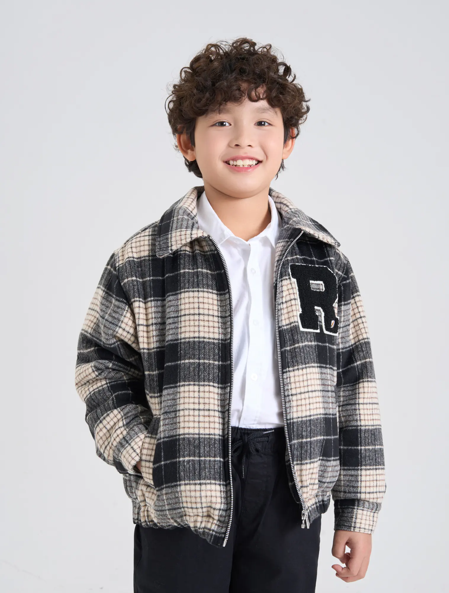 Áo khoác bé trai đính patch trang trí