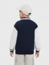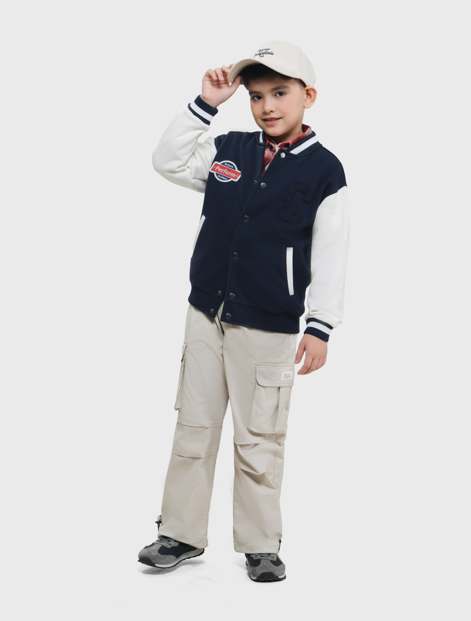 Áo khoác bé trai đính patch trang trí được may bằng chất liệu vải cào bông ấm áp. Cổ, gấu tay bằng bo kẻ. Tay phối màu khỏe khoắn.Túi viền phía trước. Cài khuy bấm phía trước.