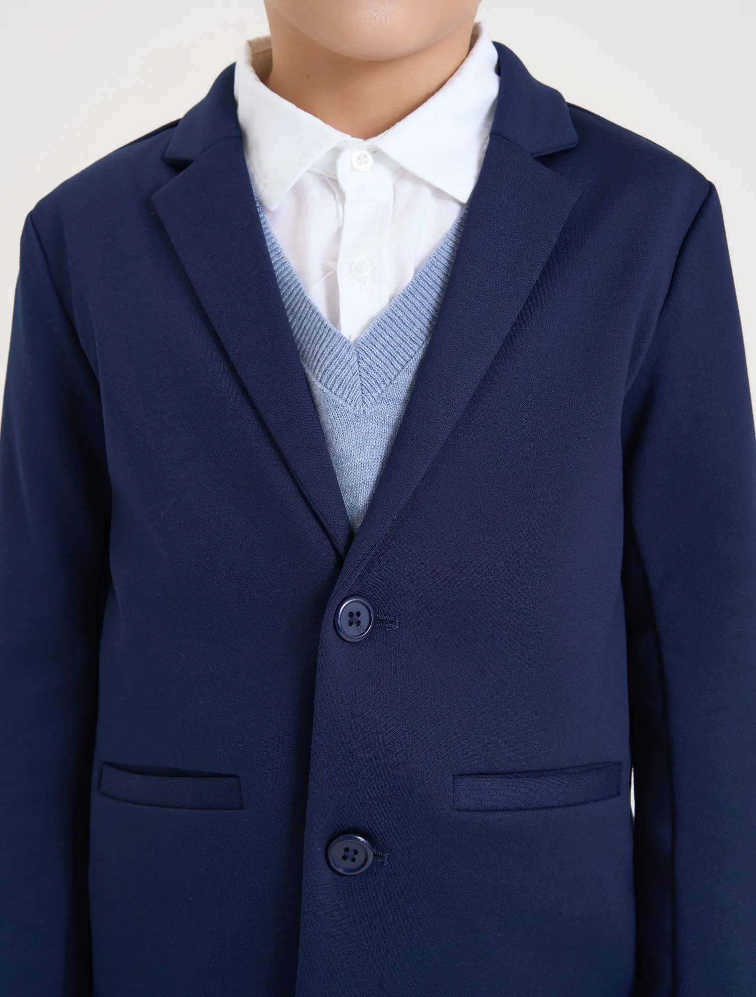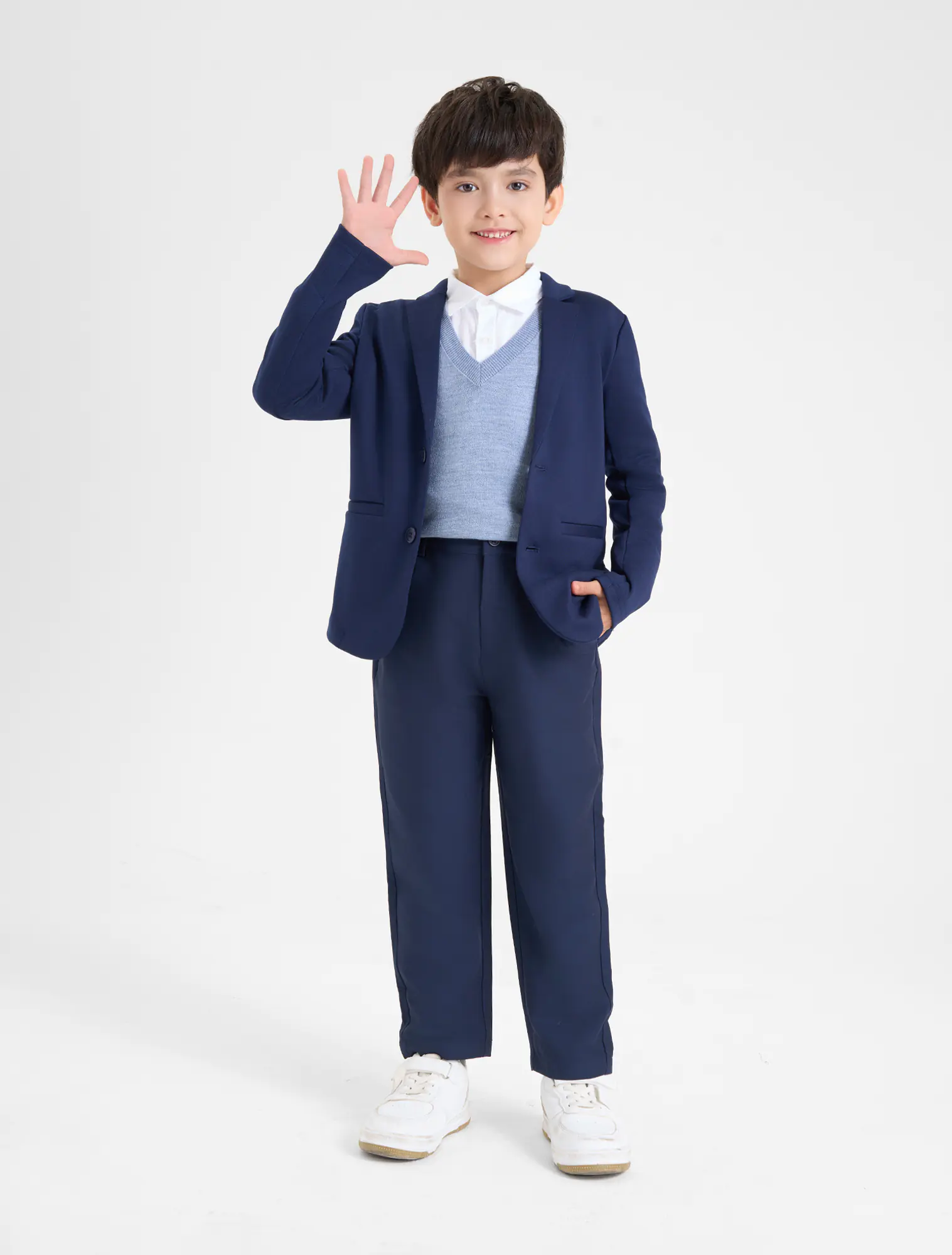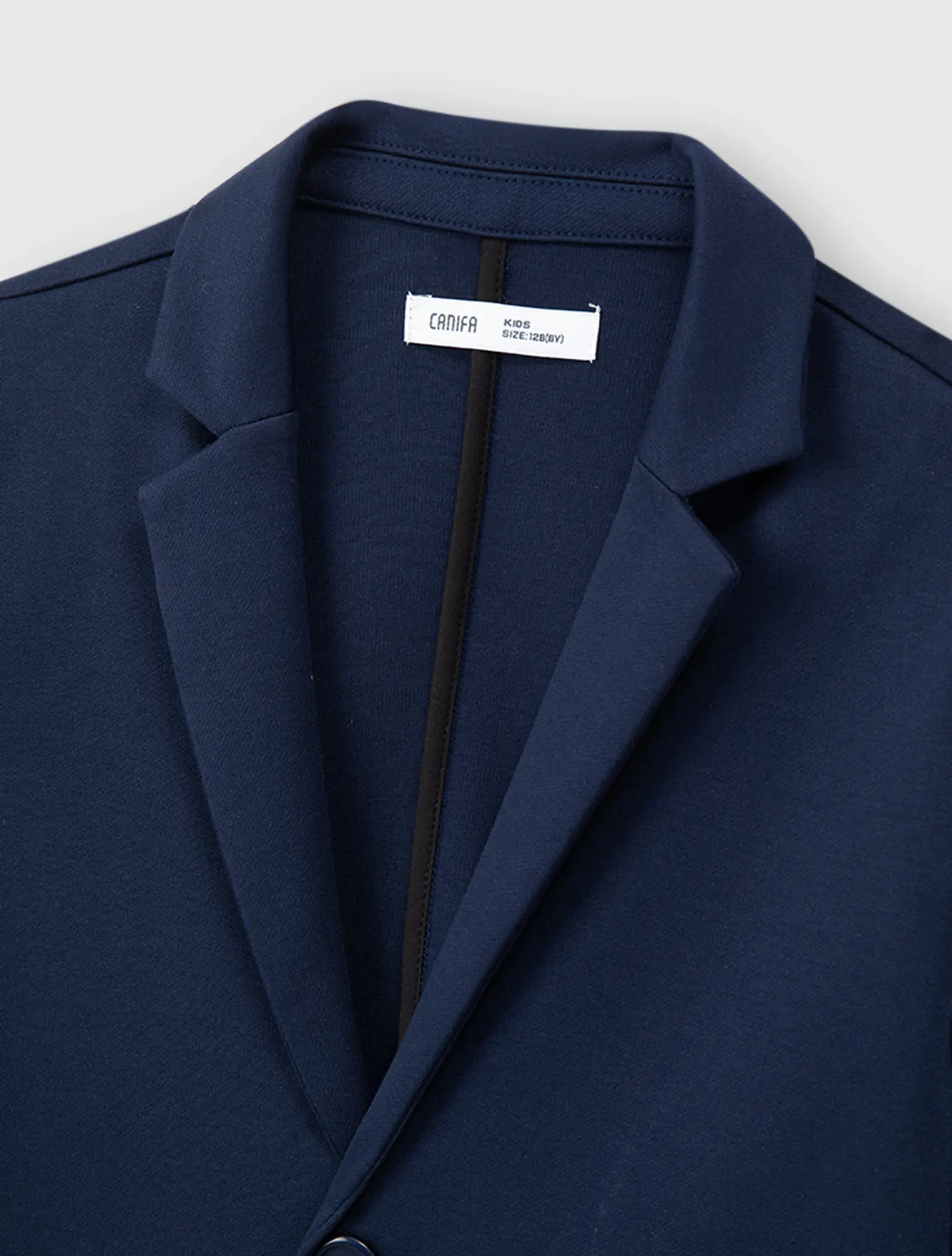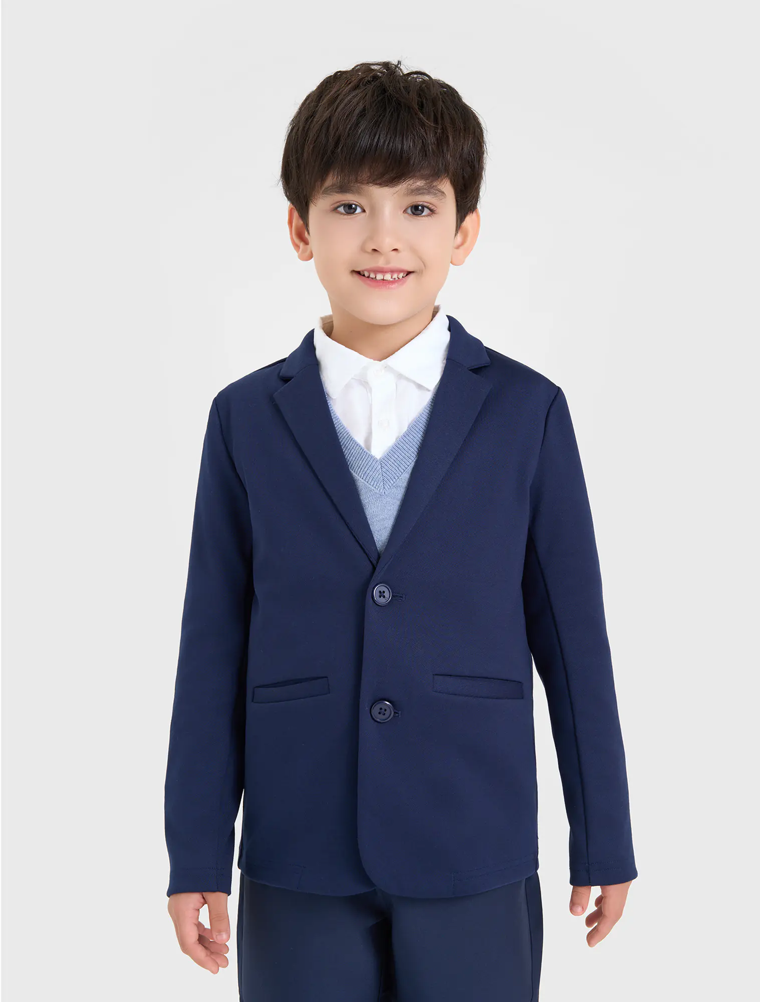 Áo khoác blazer một lớp bé trai. Dáng áo suông vừa hiện đại, phong cách lịch sự, phù hợp nhiều hoàn cảnh sử dụng cho bé trai.