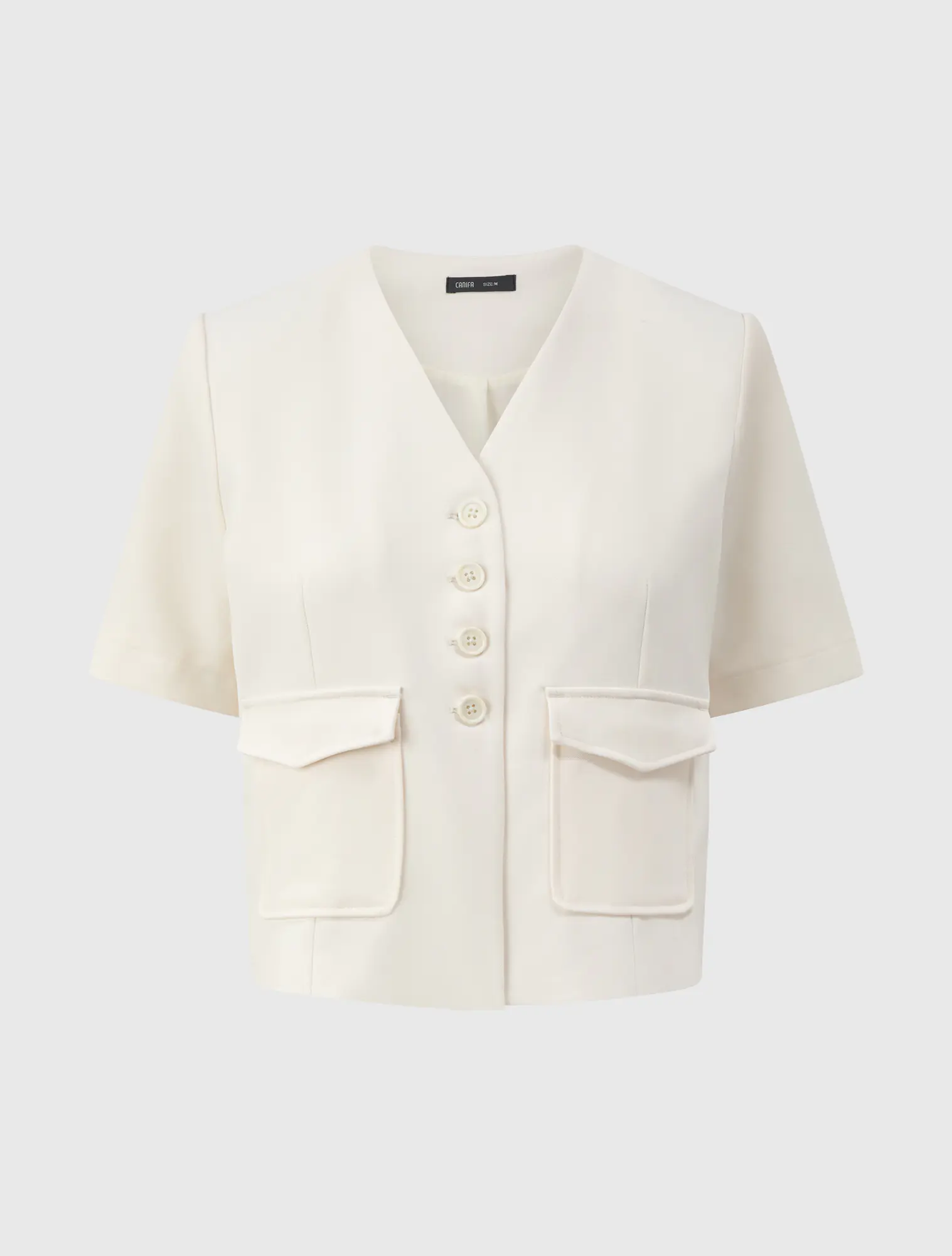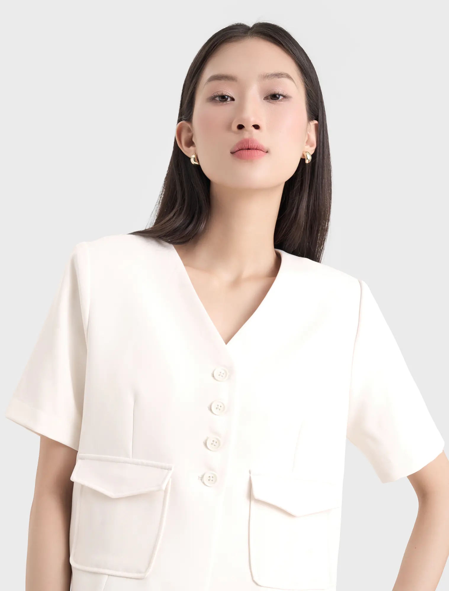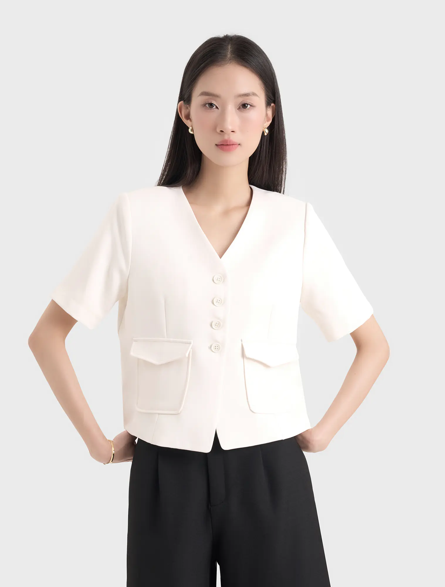 Áo khoác nữ ngắn tay hai lớp. Chất liệu Poly pha mang lại cảm giác mềm mại, đứng dáng. Phù hợp với môi trường công sở, dạo phố.