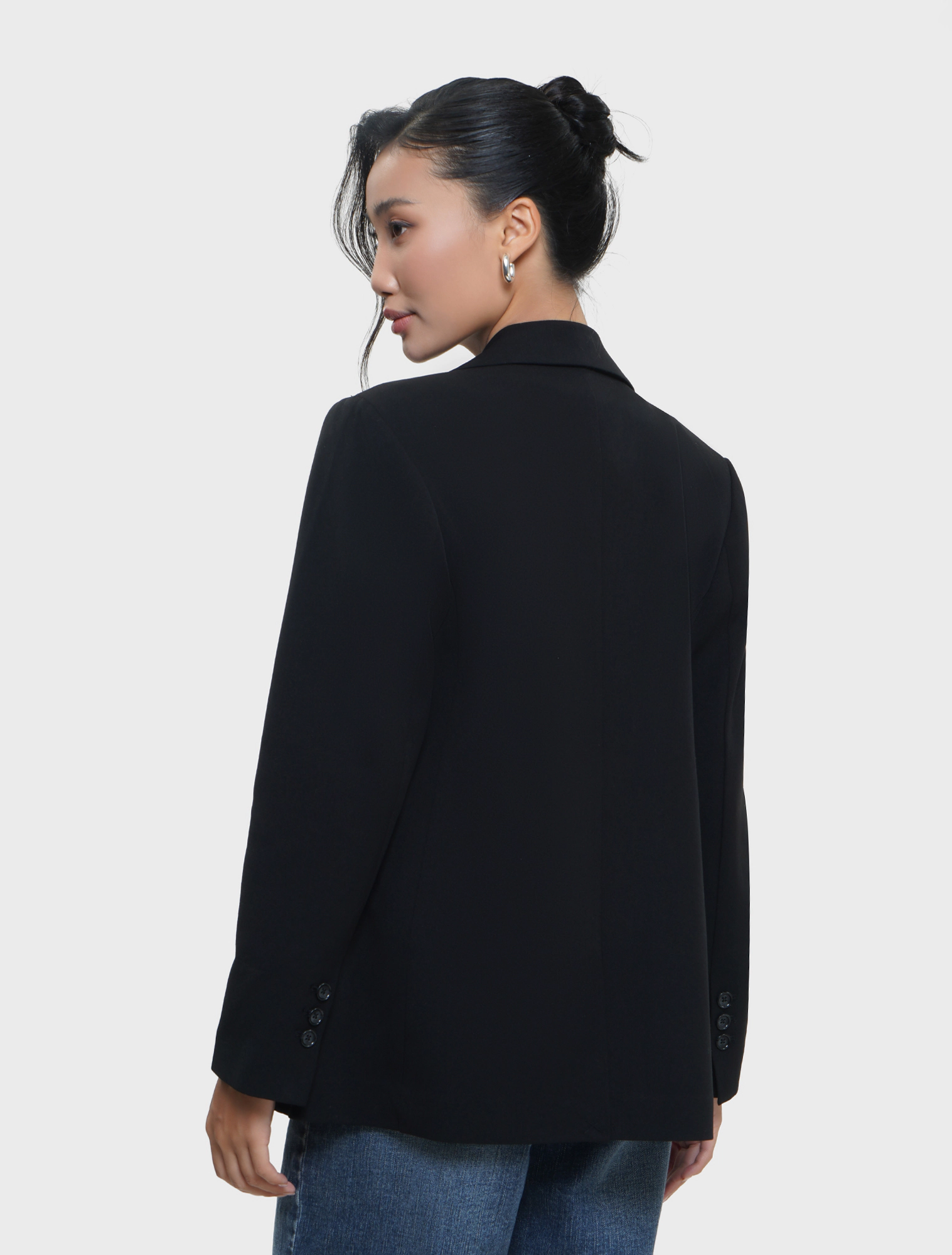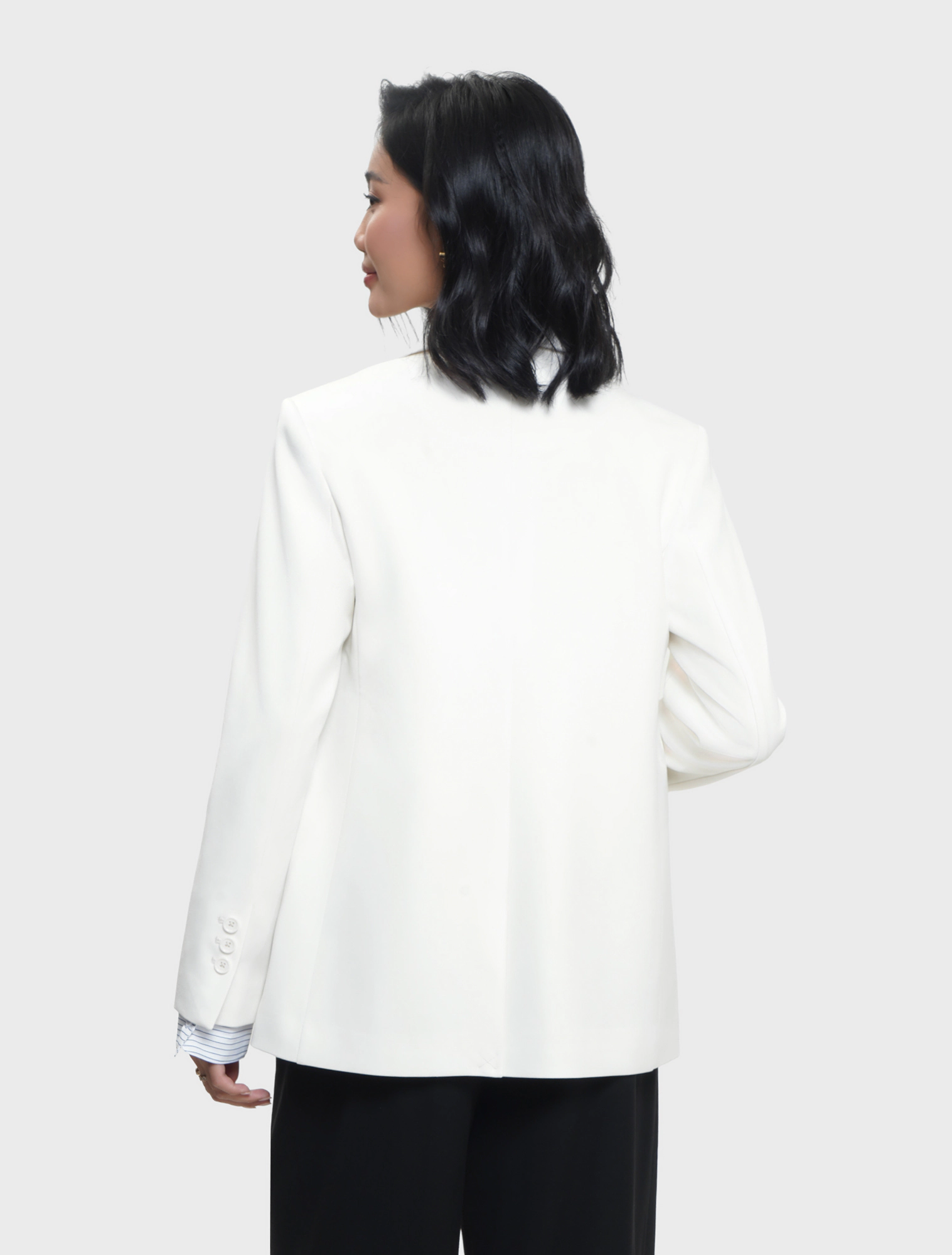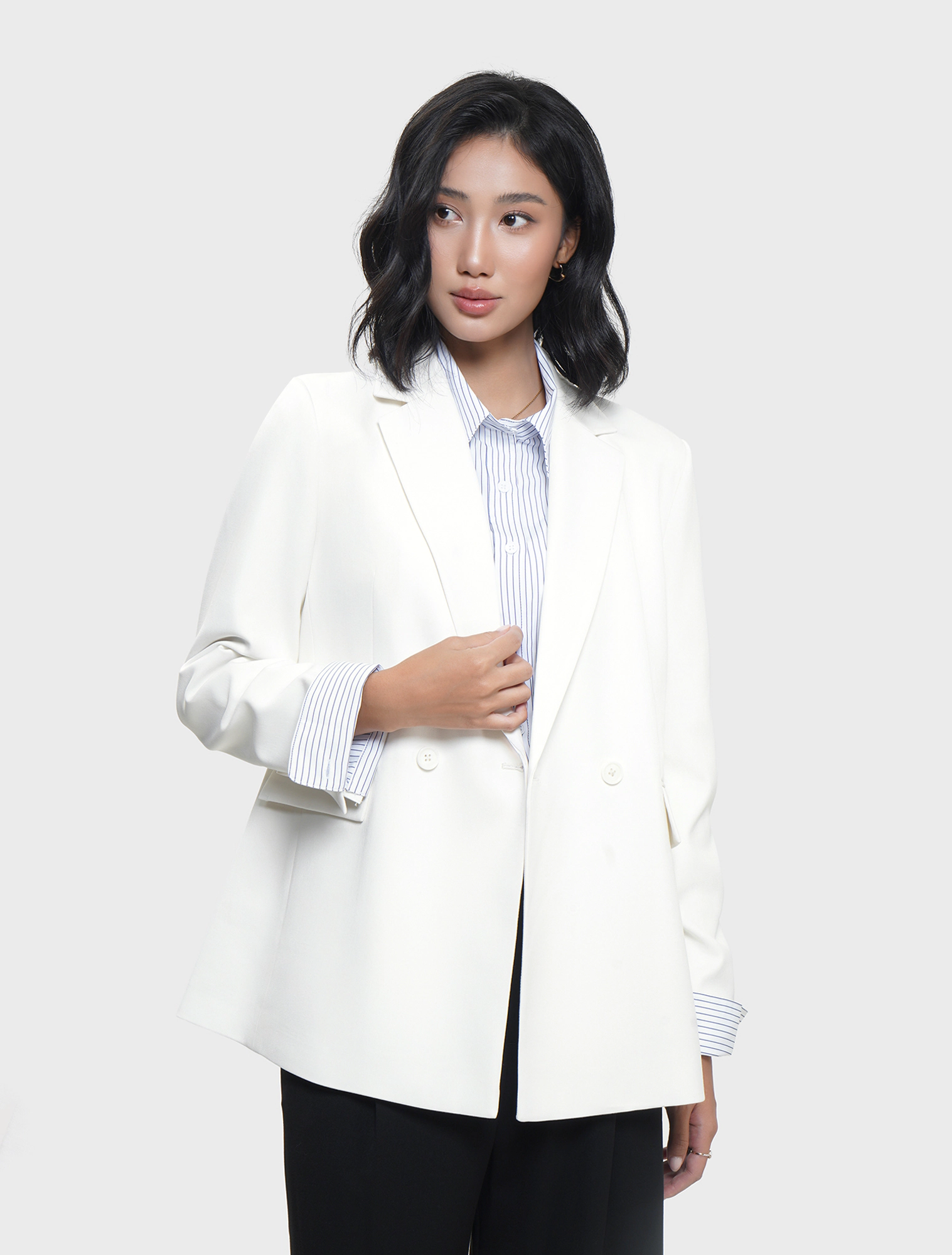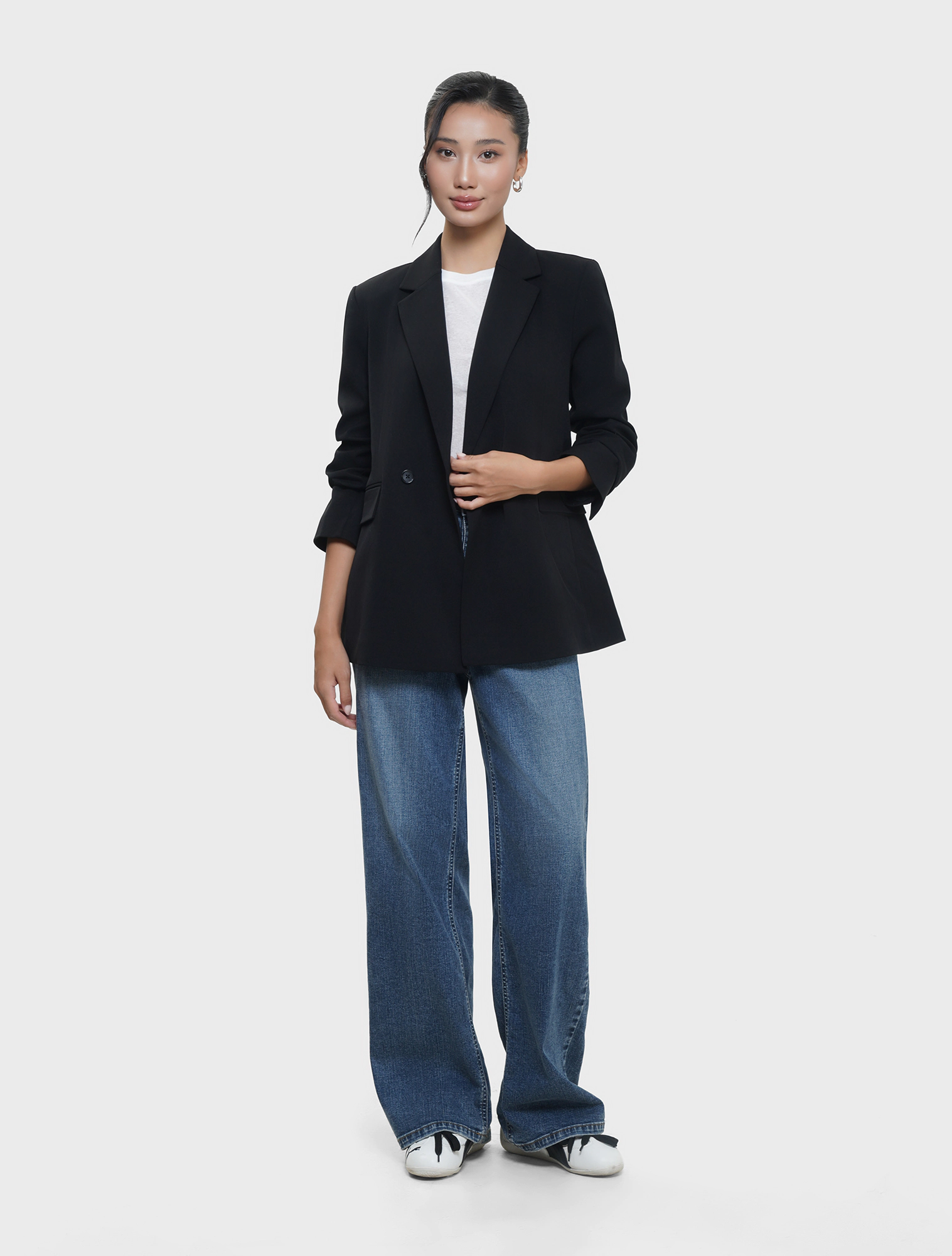Áo khoác blazer nữ 2 lớp cổ tròn dáng ngắn, rộng vừa. Chất liệu mềm mại, dễ chịu, phù hợp môi trường công sở, dạo phố.