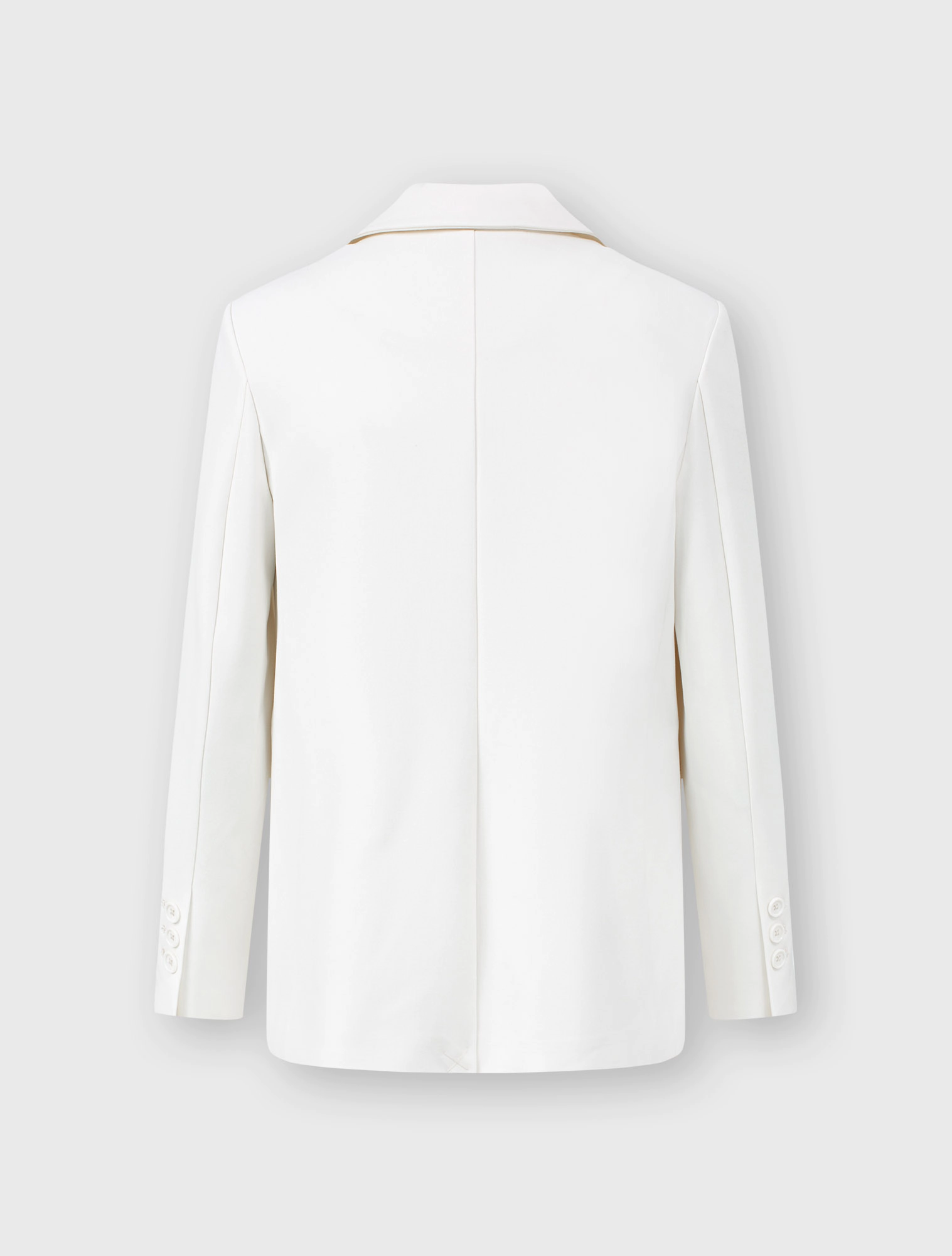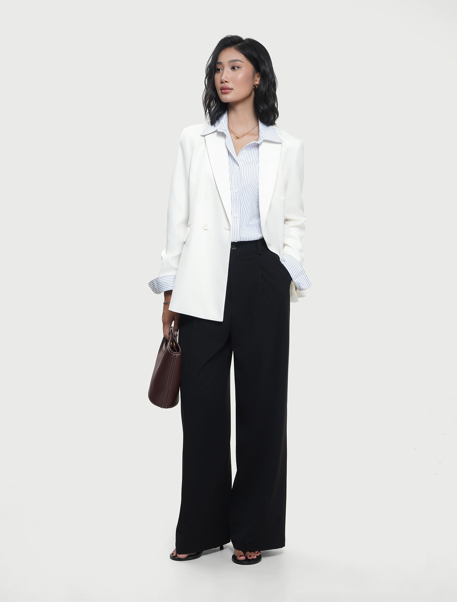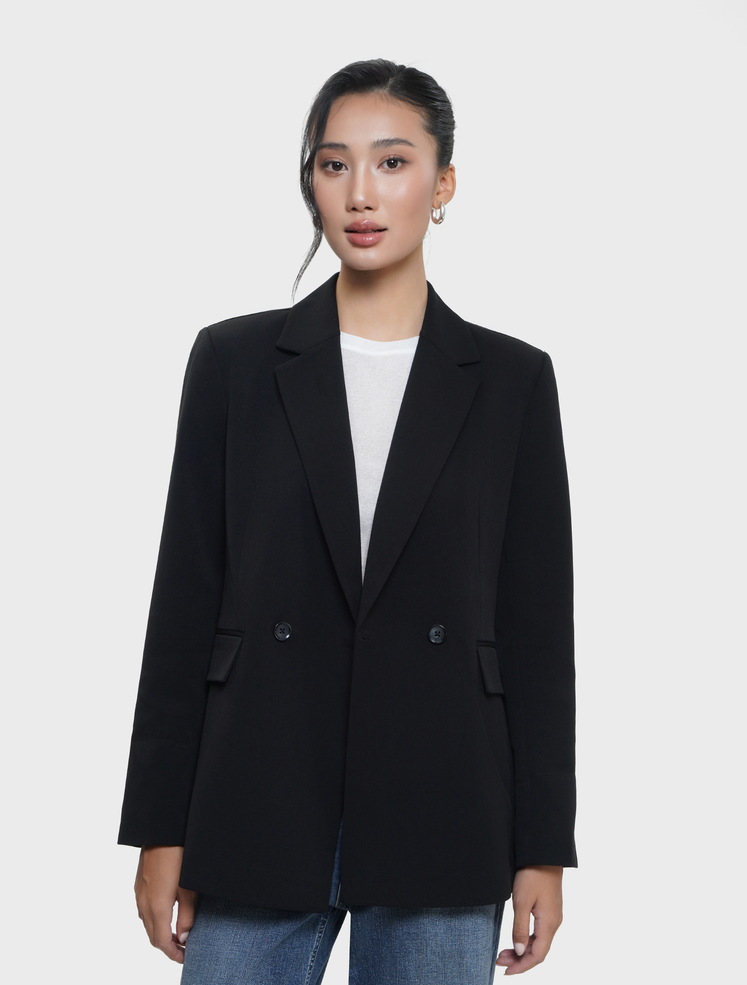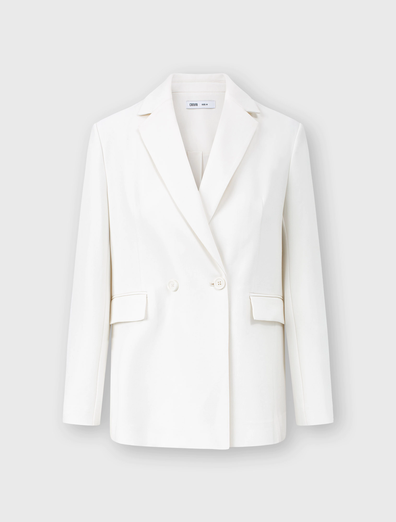 Áo khoác blazer nữ 2 lớp cổ tròn dáng ngắn, rộng vừa. Chất liệu mềm mại, dễ chịu, phù hợp môi trường công sở, dạo phố.