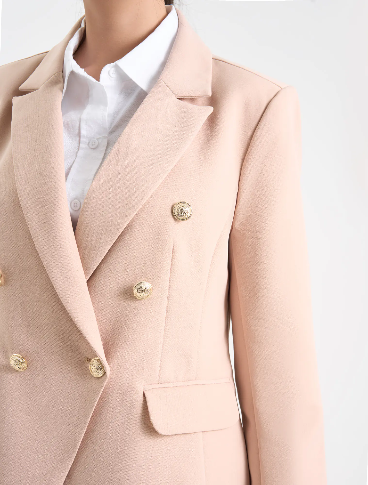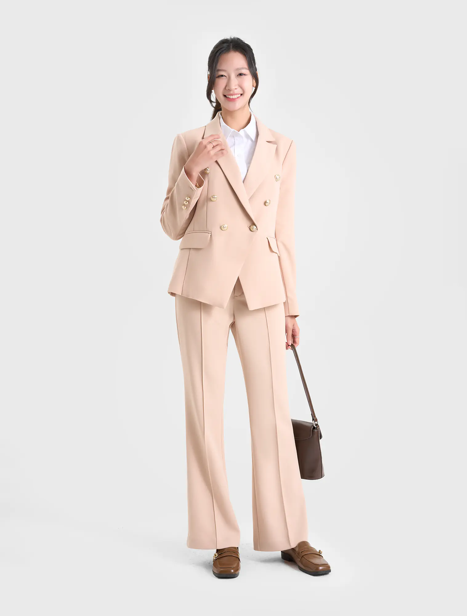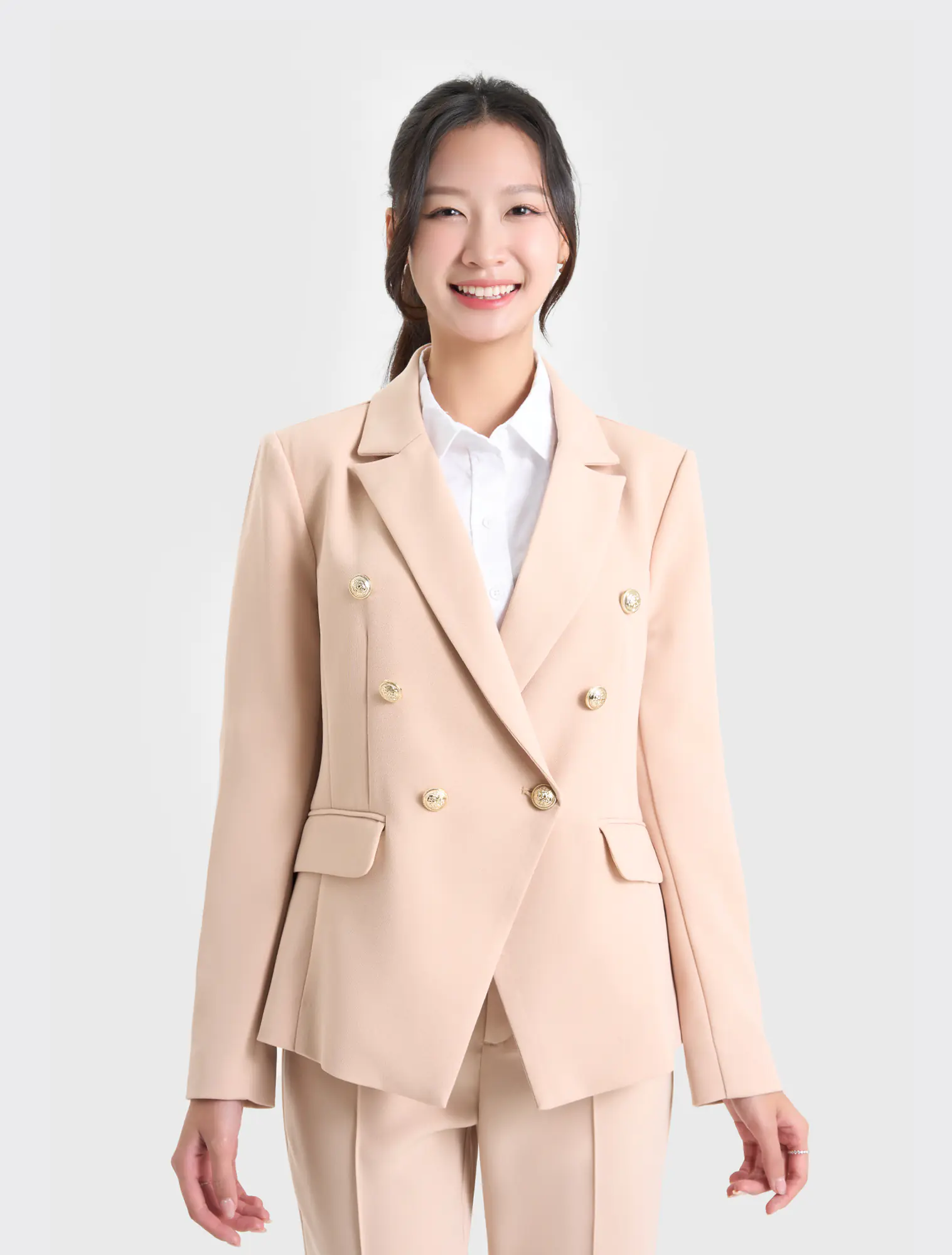 Áo blazer hai lớp dài tay, cổ bẻ ve, dáng chiết eo. Chất liệu poly pha mang lại cảm giác mềm mại, đứng dáng. Phù hợp với môi trường công sở, dạo phố.