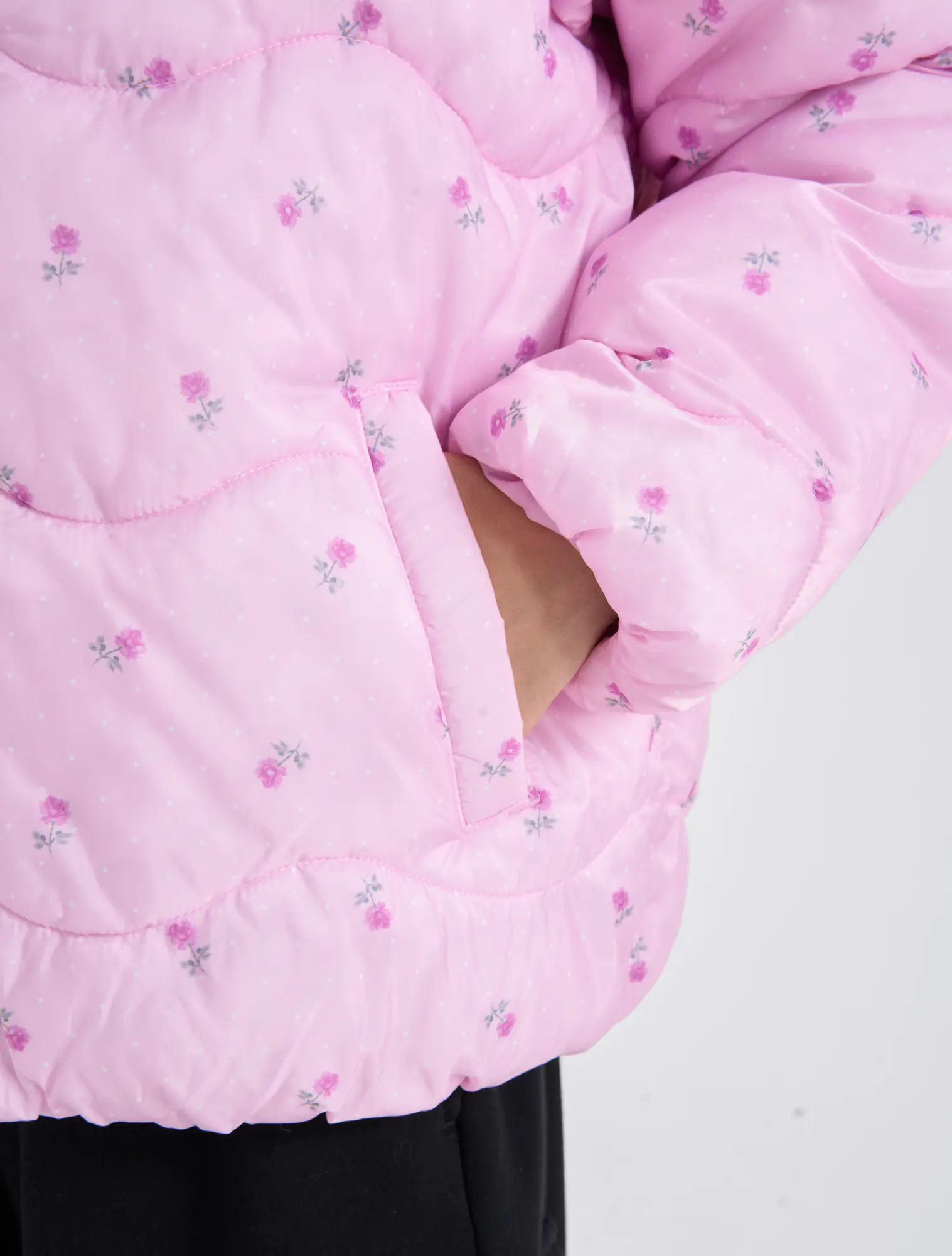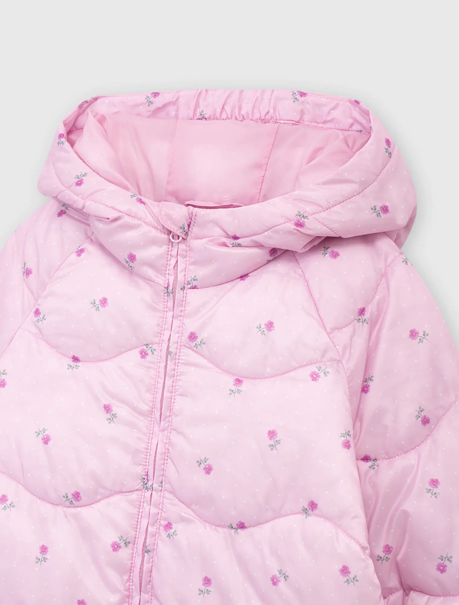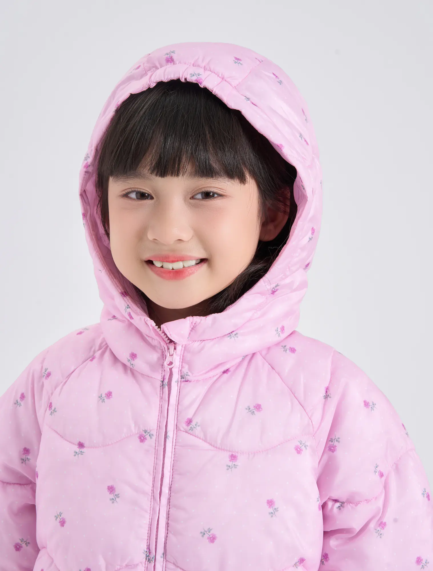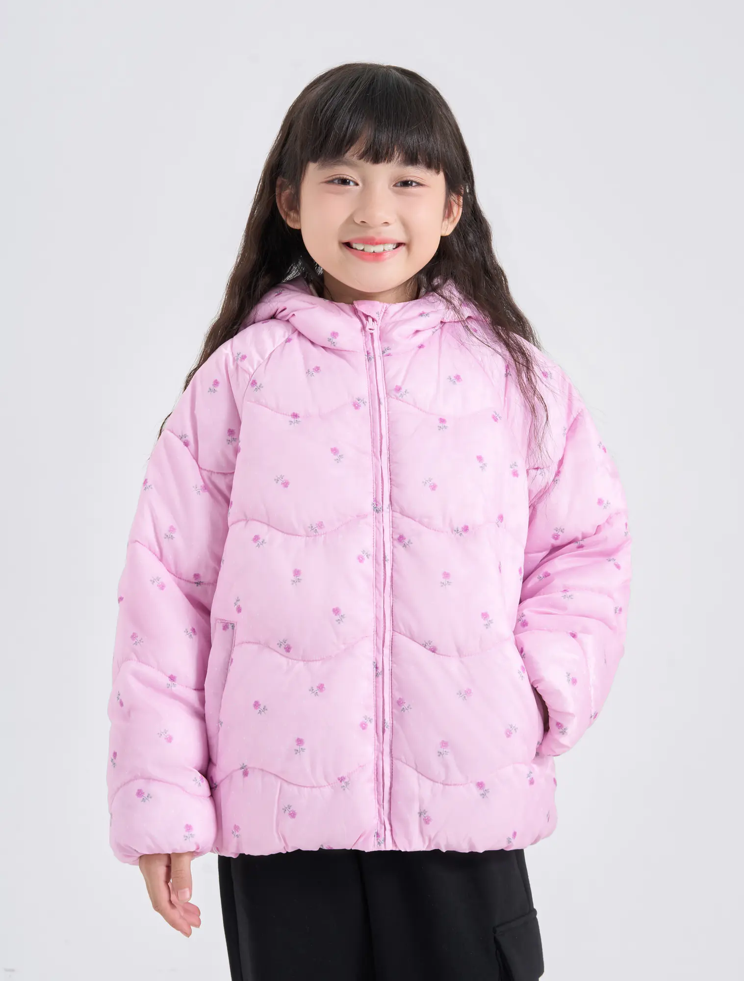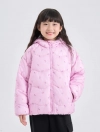 Áo khoác thổi bông có mũ bé gái. Màu sắc hình in tươi sáng dễ thương, kiểu dáng cơ bản dễ sử dụng. Đường chân bông cách điện lượn sóng mới lạ thời trang.