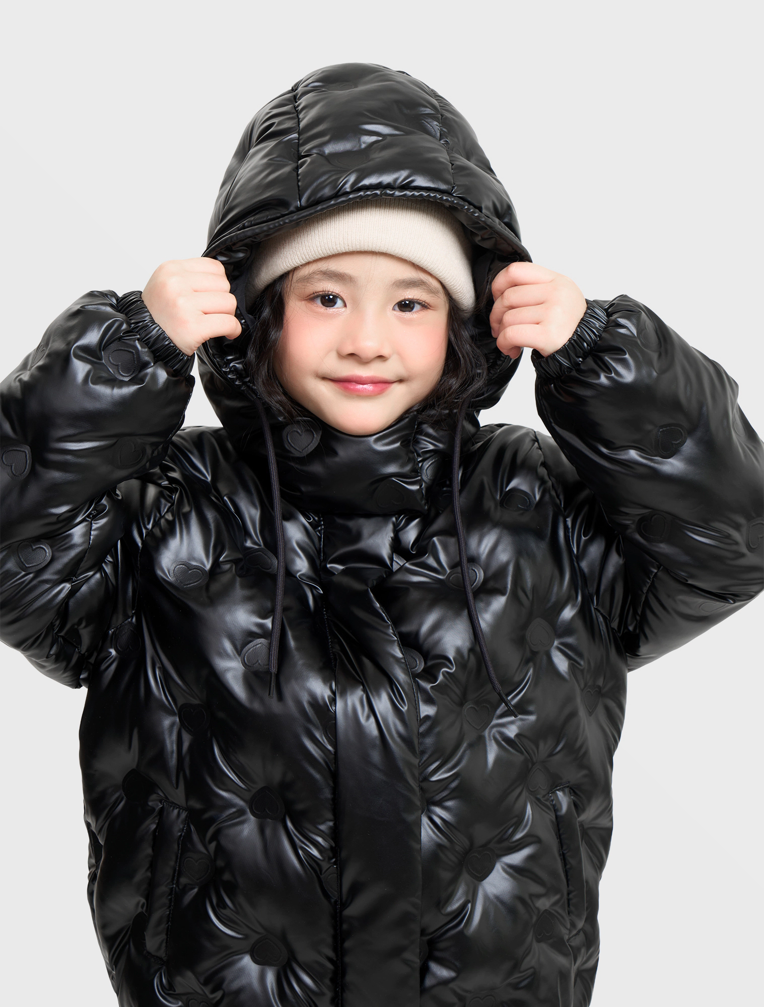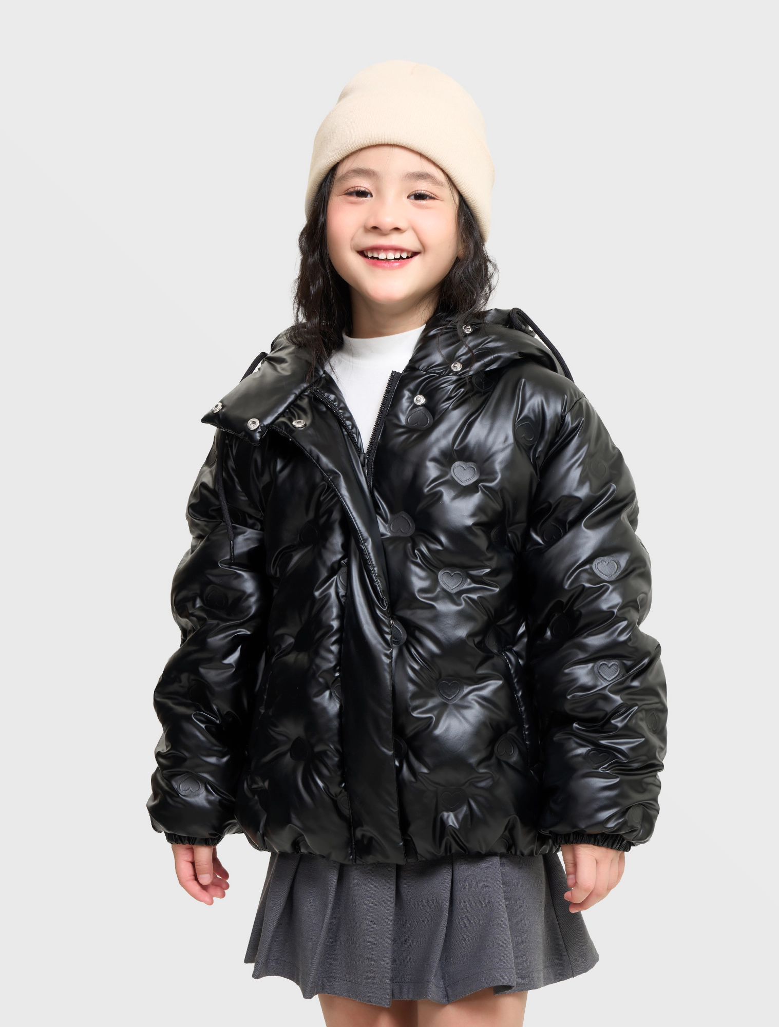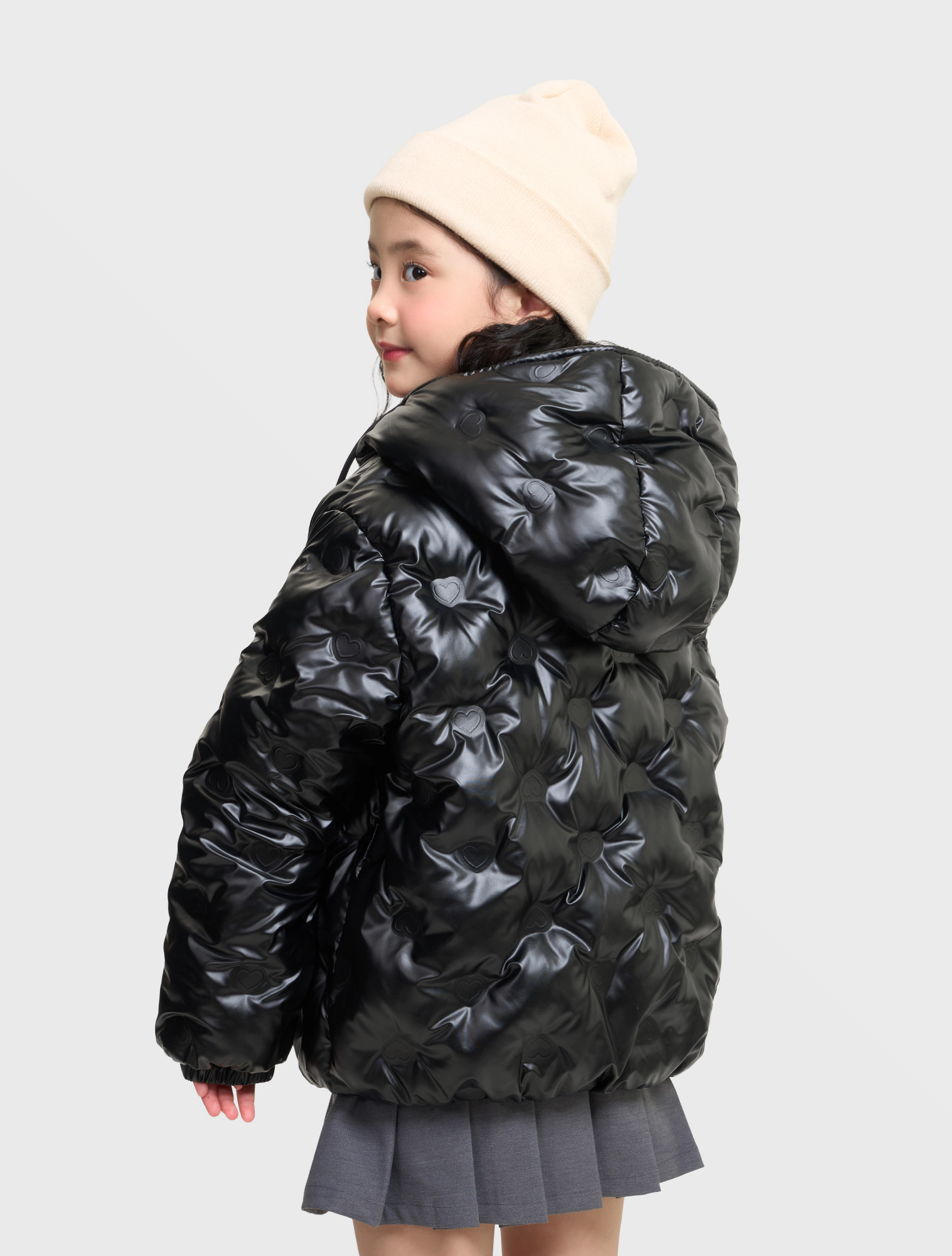 Áo khoác chần bông có mũ bé gái chống thấm nước. Phom áo thổi bông phồng thời trang. Bề mặt công nghệ ép dập hình trái tim hiện đại, ấn tượng. Áo 3 lớp dày dặn giữ ấm tốt. Màu sắc tươi sáng phù hợp bé gái.