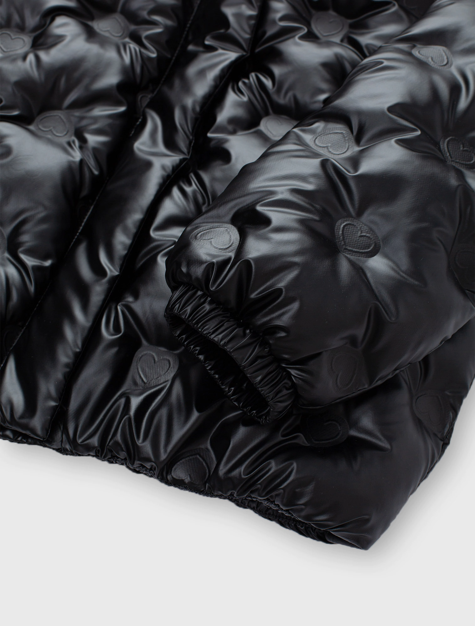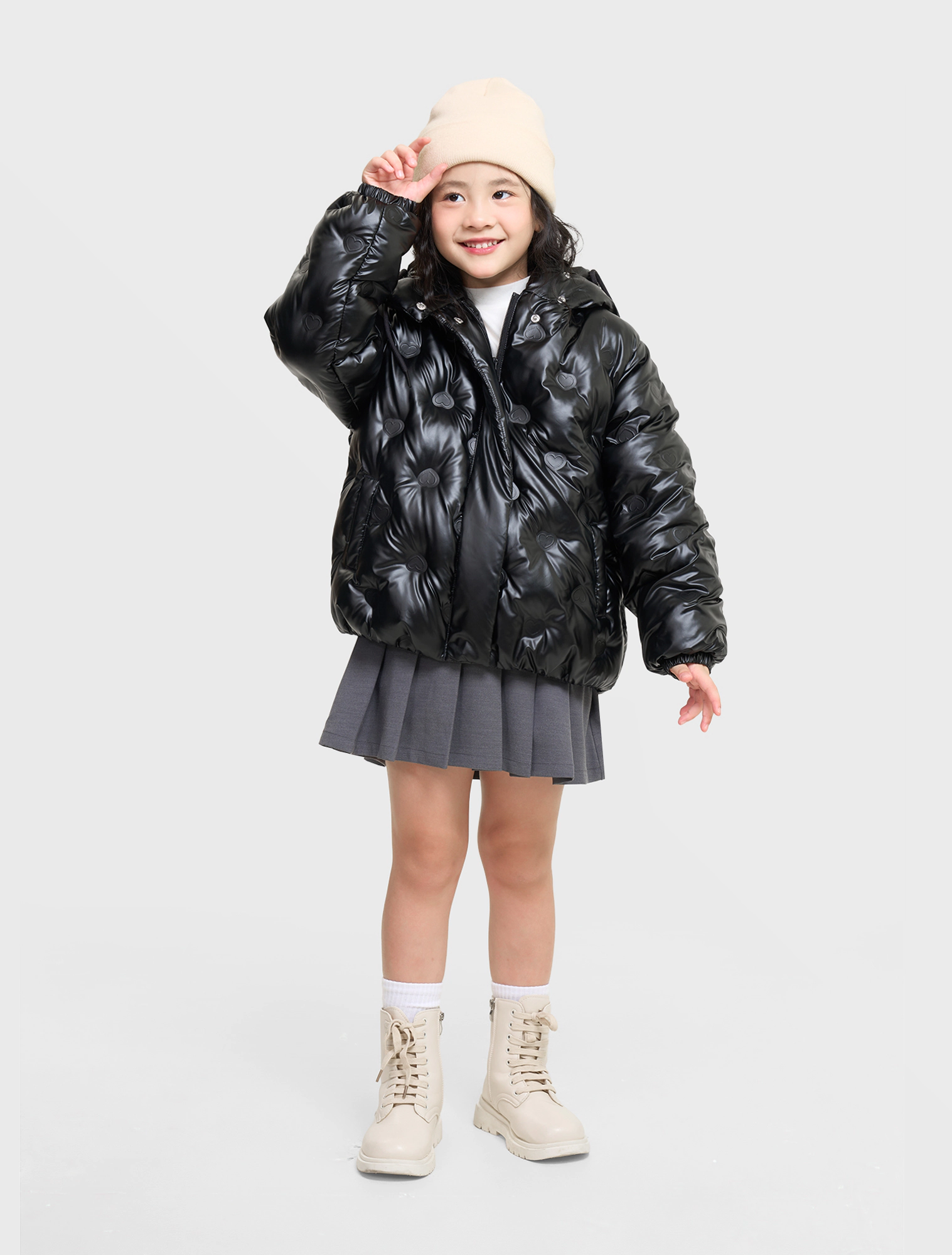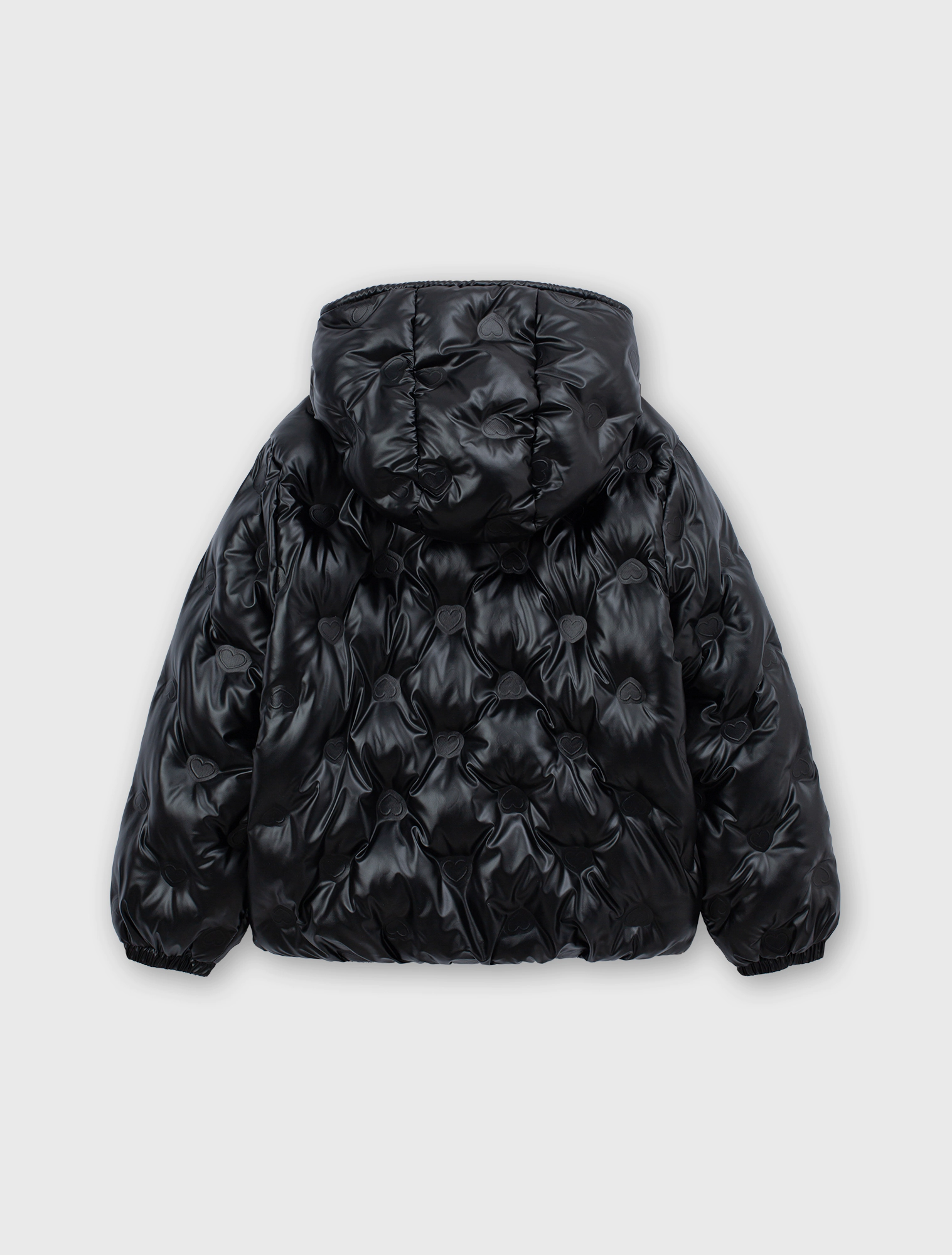 Áo khoác chần bông có mũ bé gái chống thấm nước. Phom áo thổi bông phồng thời trang. Bề mặt công nghệ ép dập hình trái tim hiện đại, ấn tượng. Áo 3 lớp dày dặn giữ ấm tốt. Màu sắc tươi sáng phù hợp bé gái.