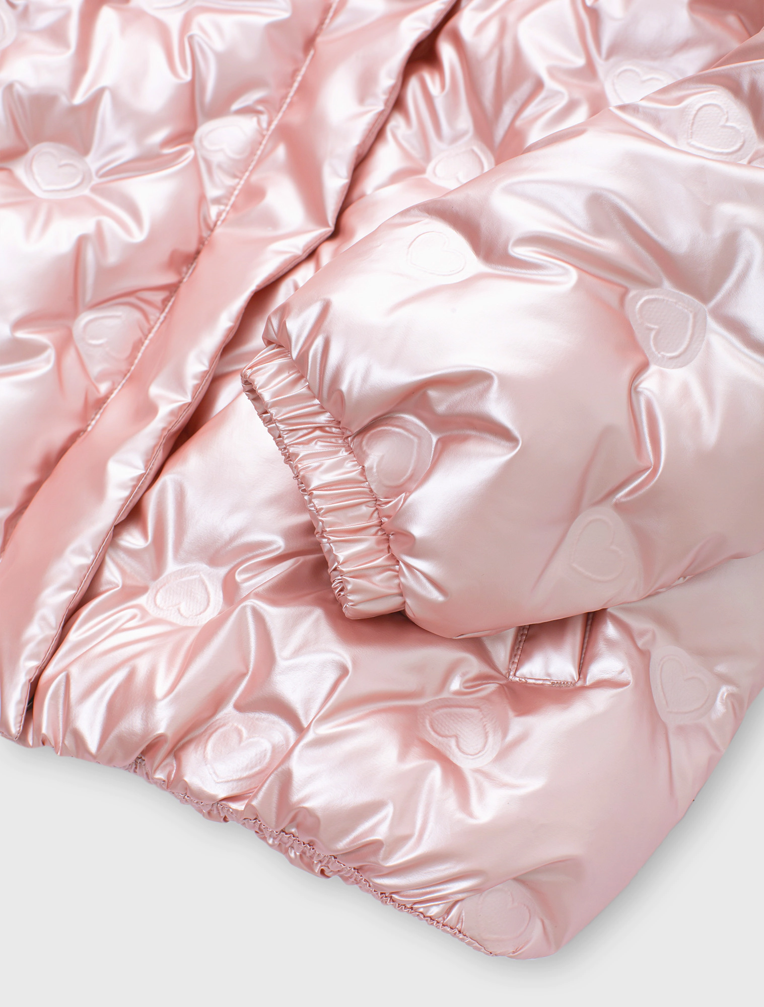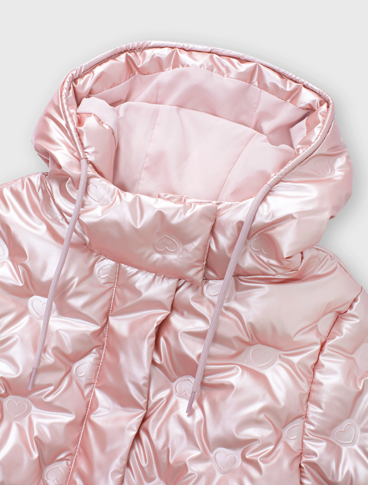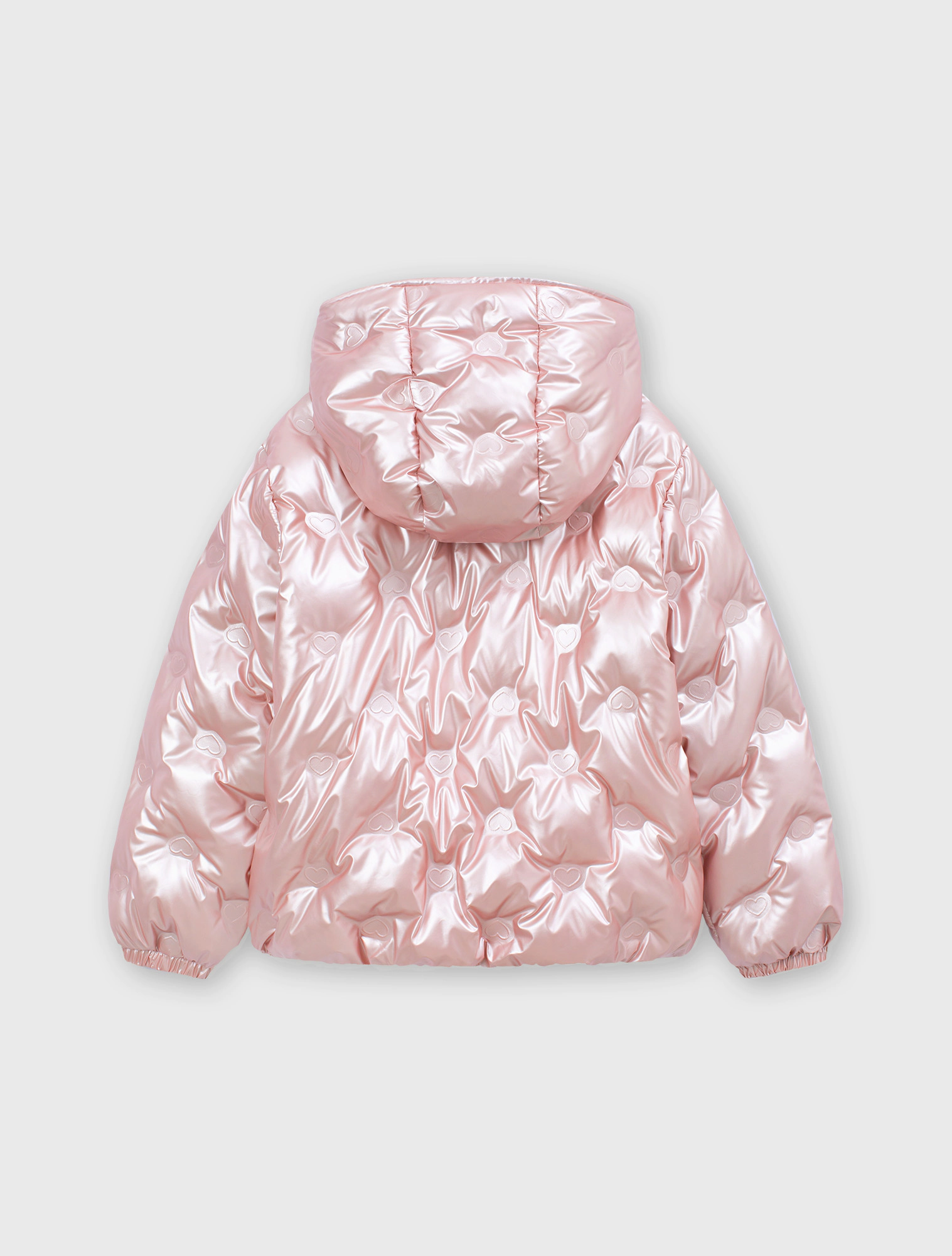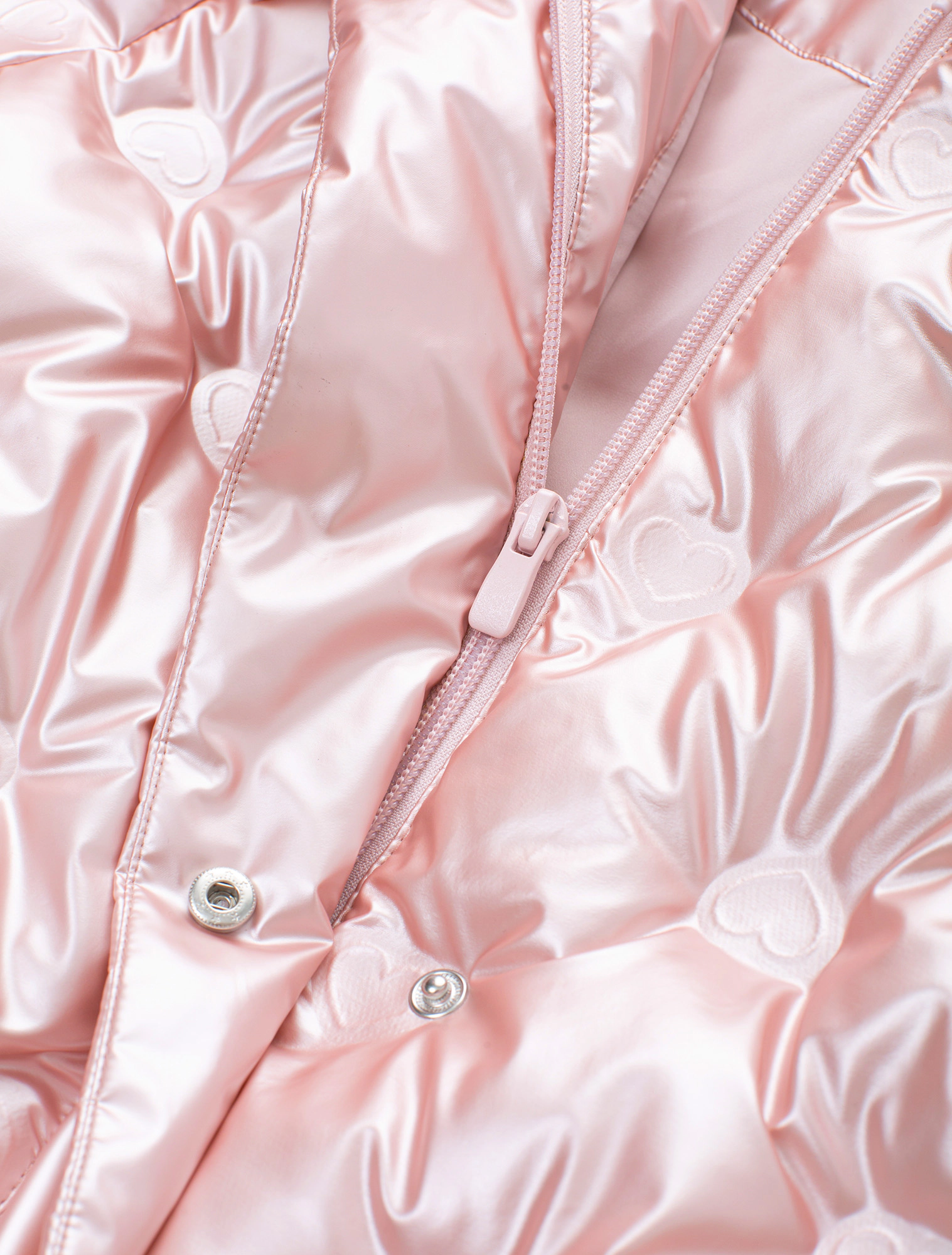 Áo khoác chần bông có mũ bé gái chống thấm nước. Phom áo thổi bông phồng thời trang. Bề mặt công nghệ ép dập hình trái tim hiện đại, ấn tượng. Áo 3 lớp dày dặn giữ ấm tốt. Màu sắc tươi sáng phù hợp bé gái.