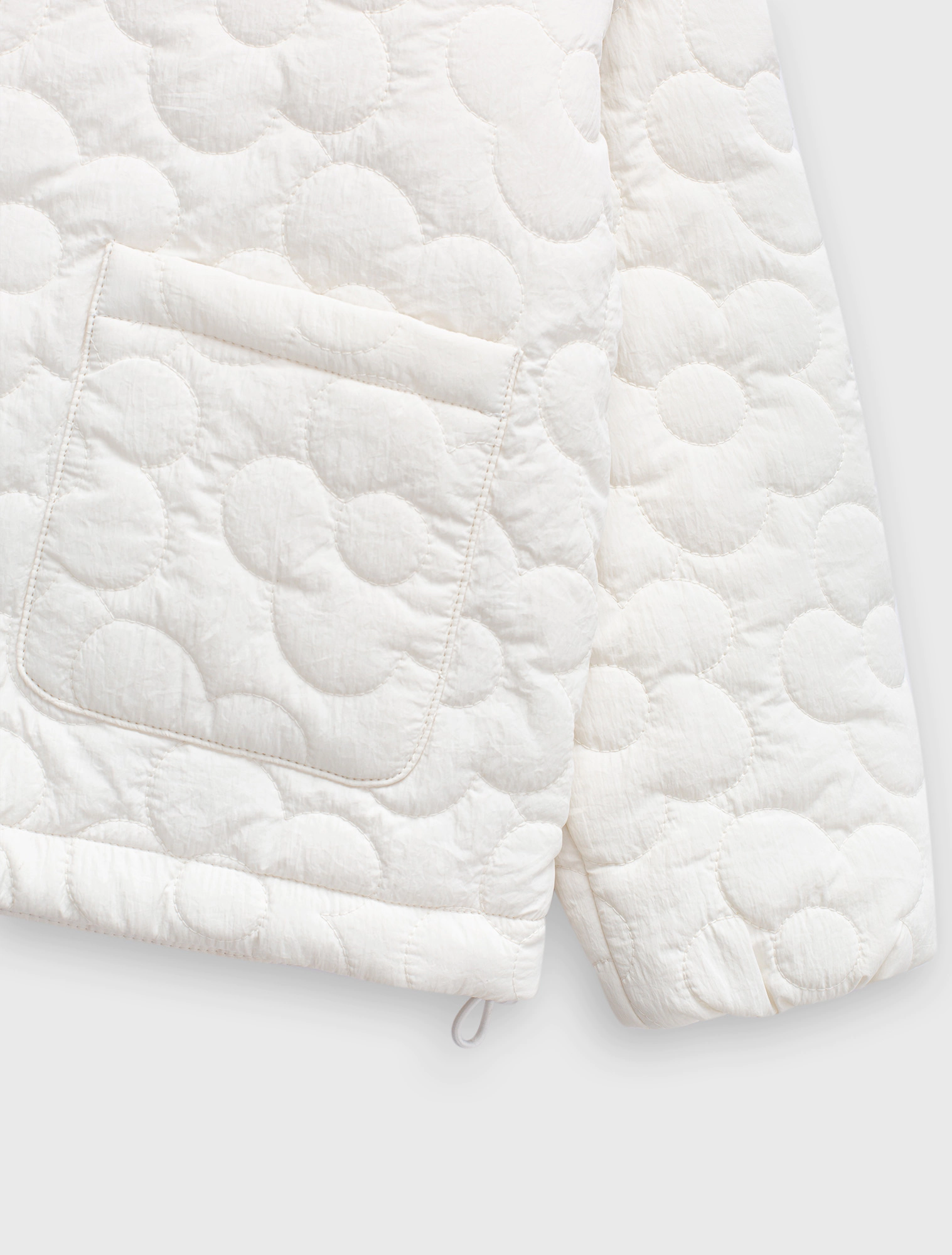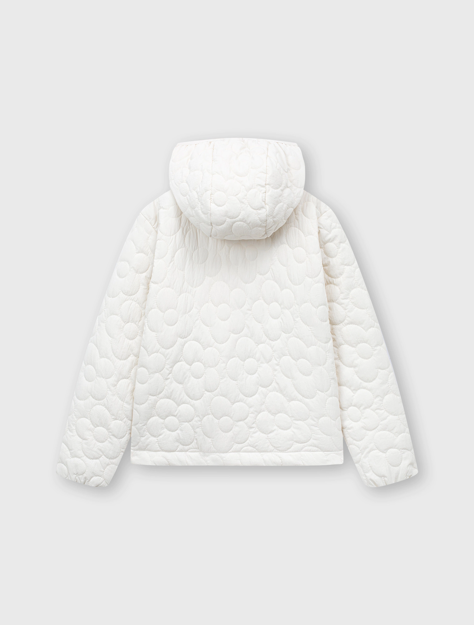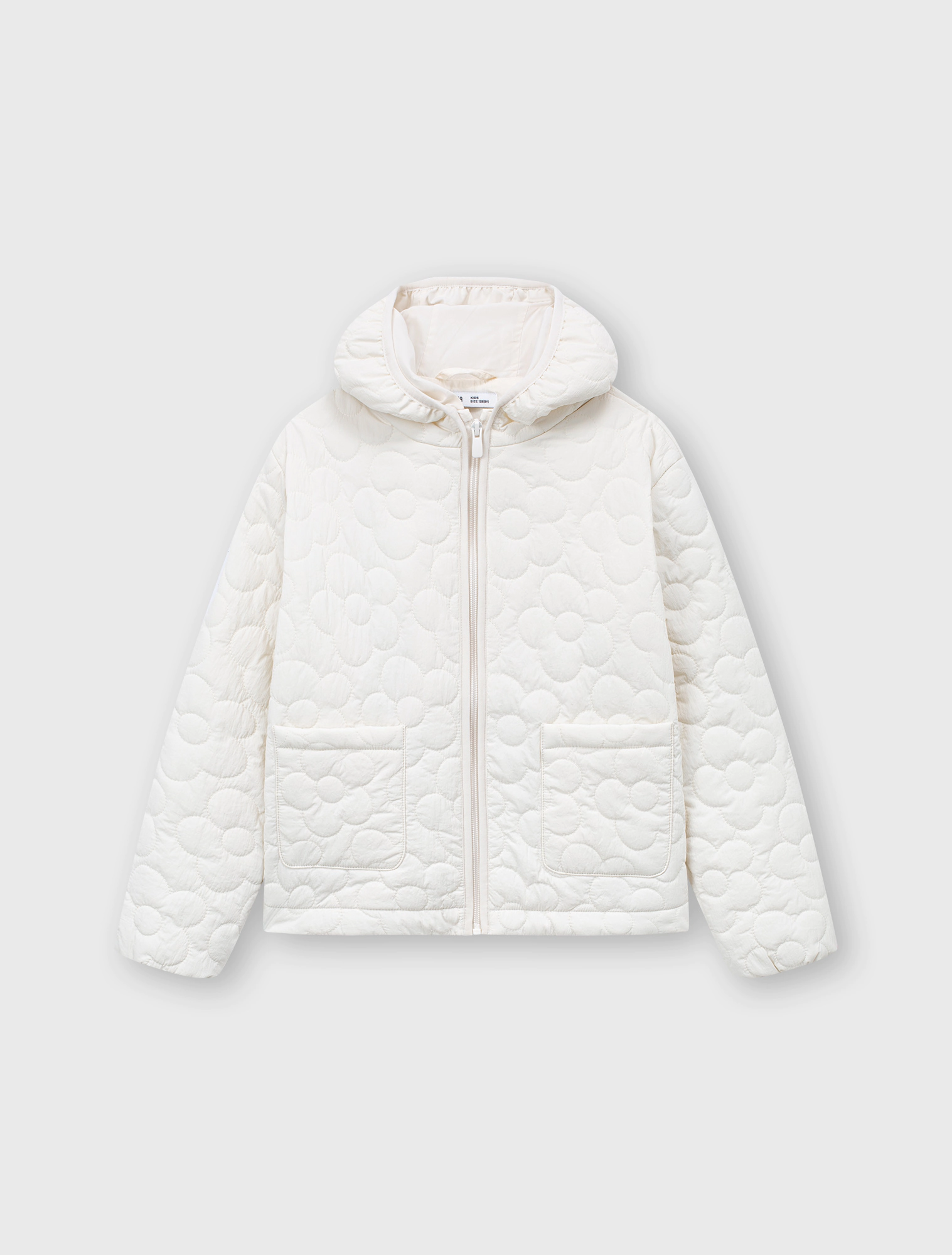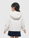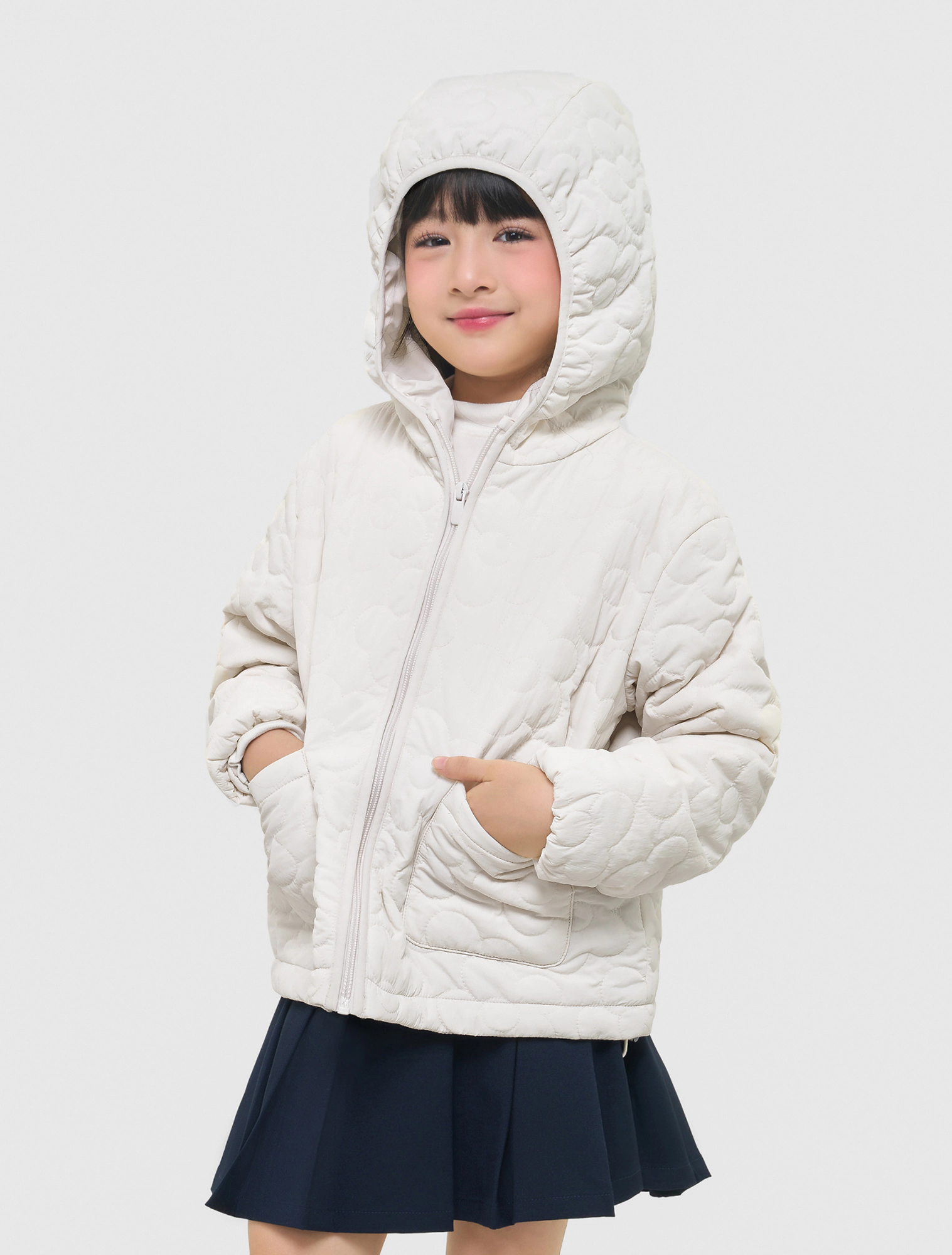 Áo khoác chần bông có mũ bé gái chống thấm nước. Phom dáng cơ bản dễ mặc. Bước chần bông có họa tiết hình hoa và bươm bướm dễ thương, màu sắc tươi sáng phù hợp bé gái. Áo chần bông độ dày trung bình, có 2 túi ốp thân trước, gấu áo rút chun linh hoạt.