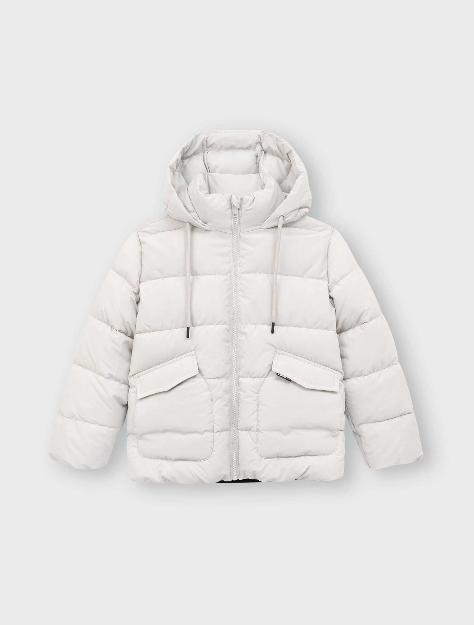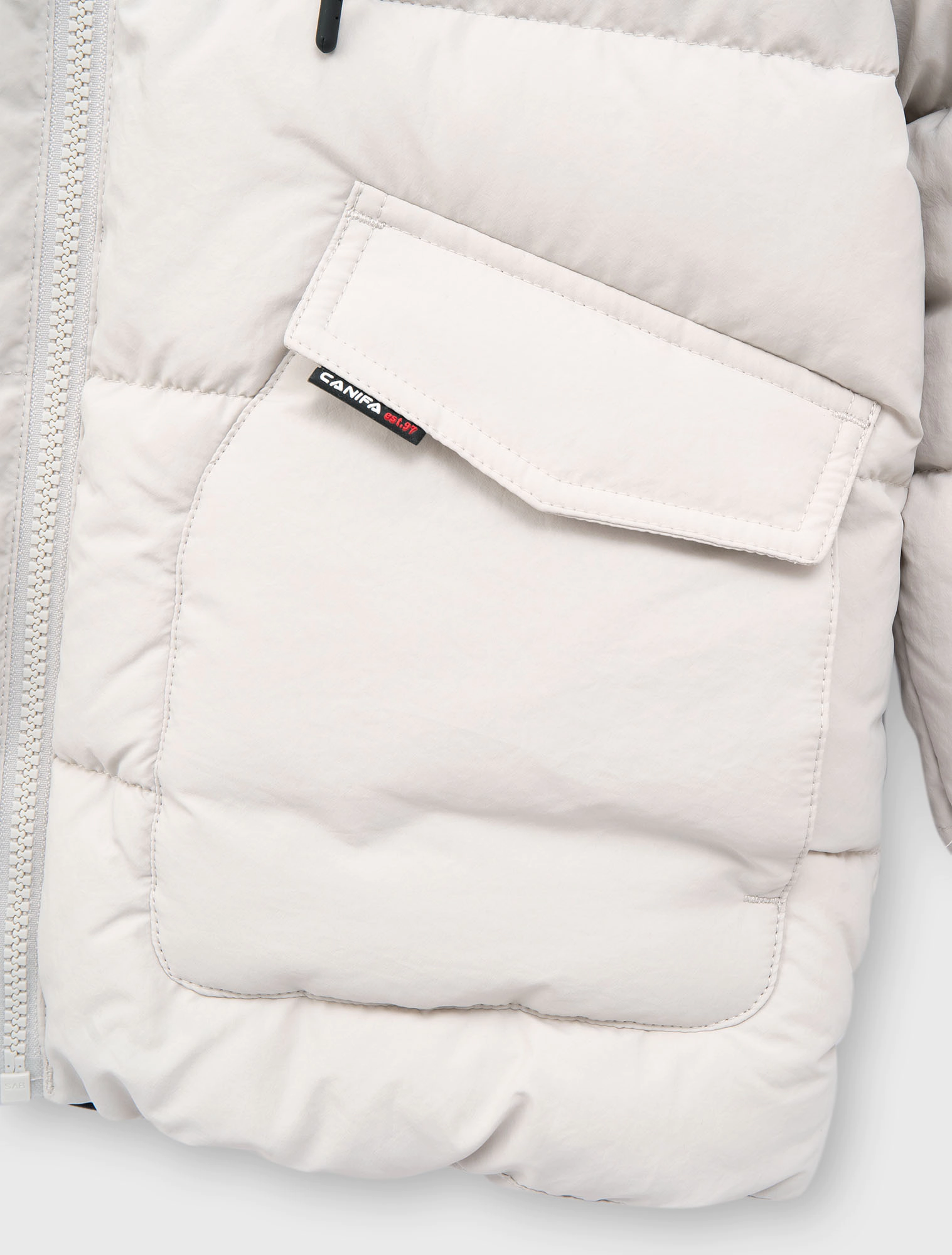 Áo khoác làm từ vải chống thấm nước đặc biệt, cổ cao, có mũ trùm đầu và dài tay. Kéo khóa phía trước. Túi ốp phía trước có nắp. Gắn nhãn trang trí ở túi.