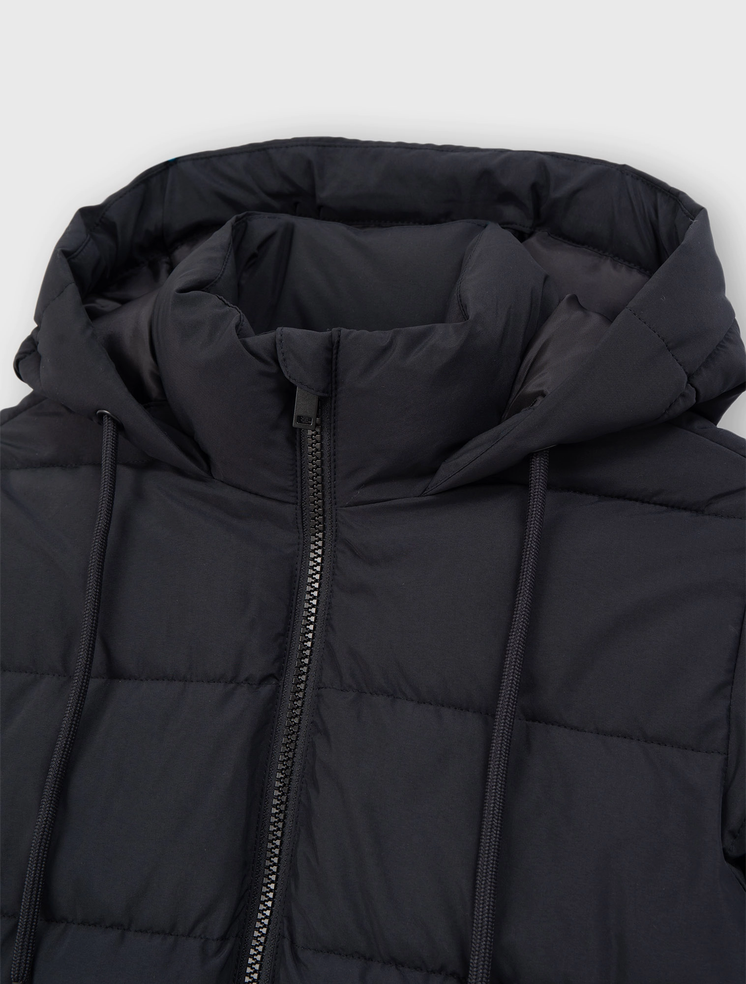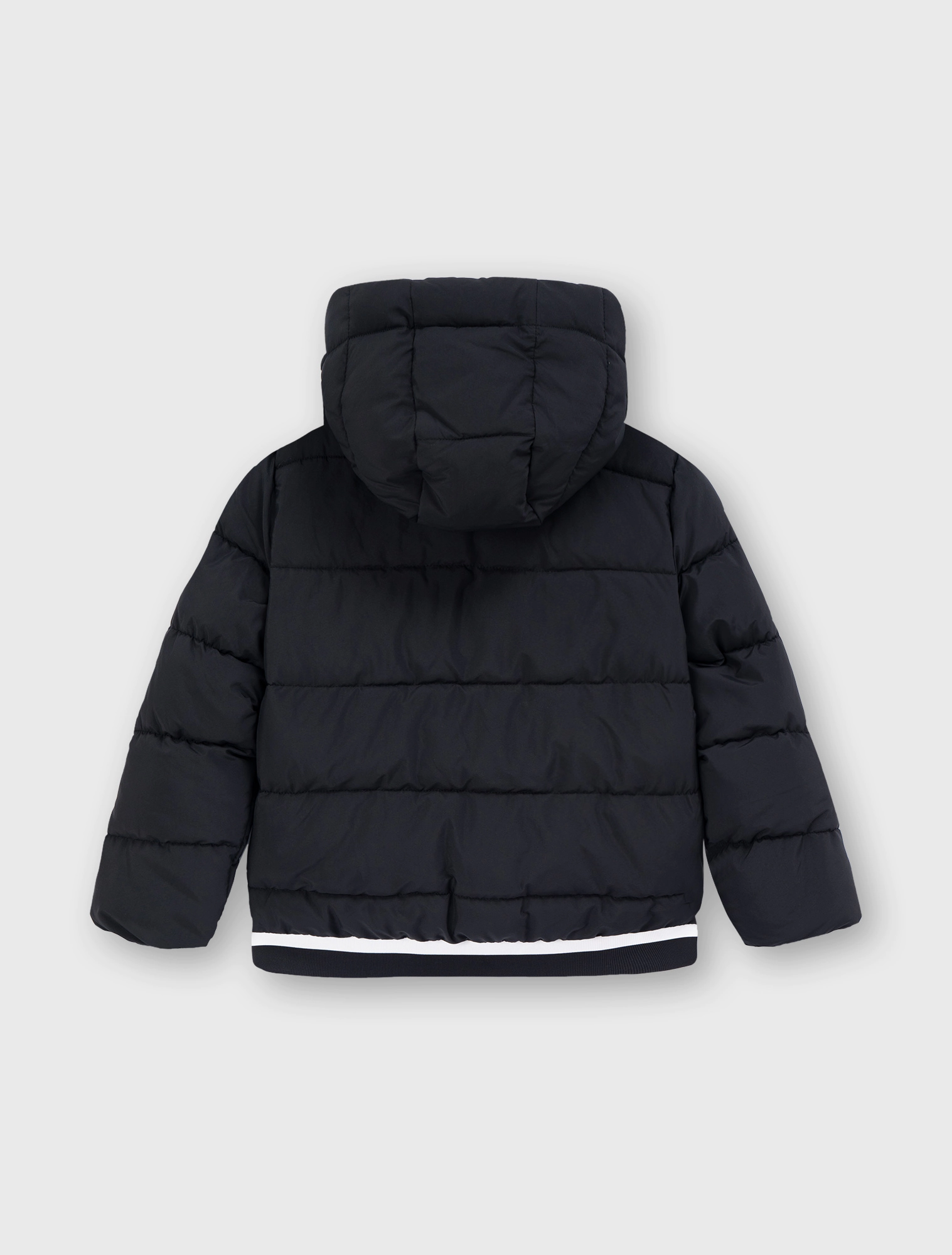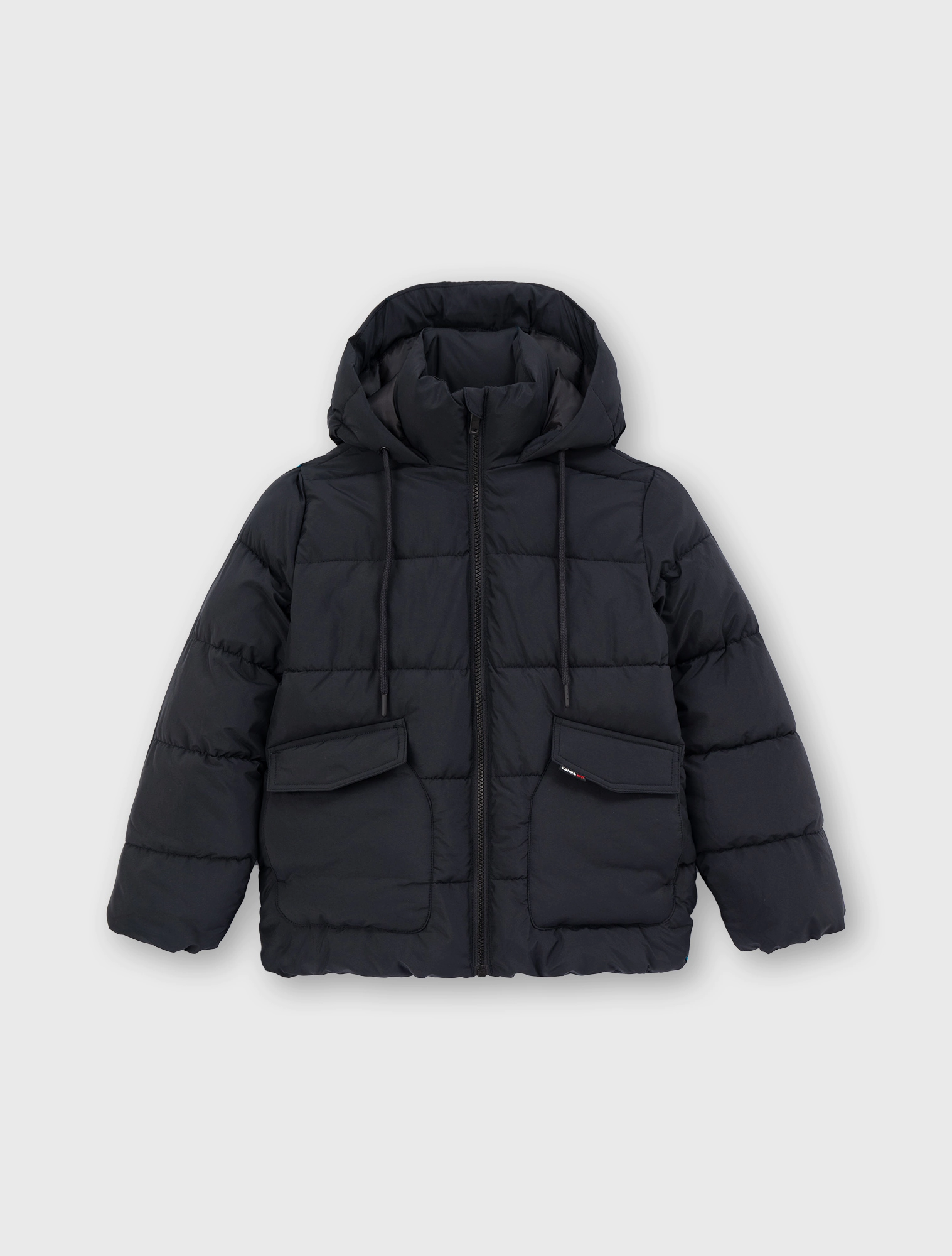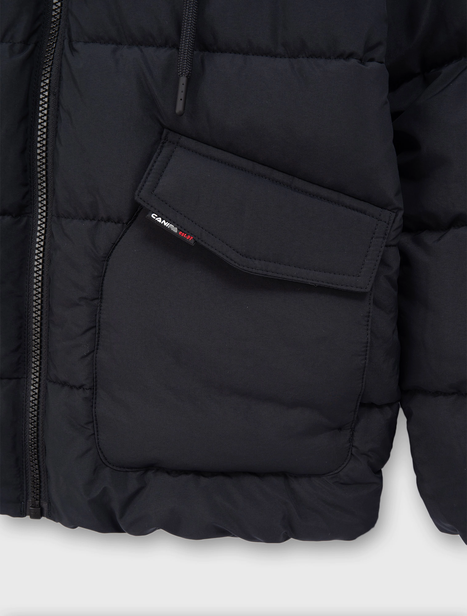 Áo khoác làm từ vải chống thấm nước đặc biệt, cổ cao, có mũ trùm đầu và dài tay. Kéo khóa phía trước. Túi ốp phía trước có nắp. Gắn nhãn trang trí ở túi.