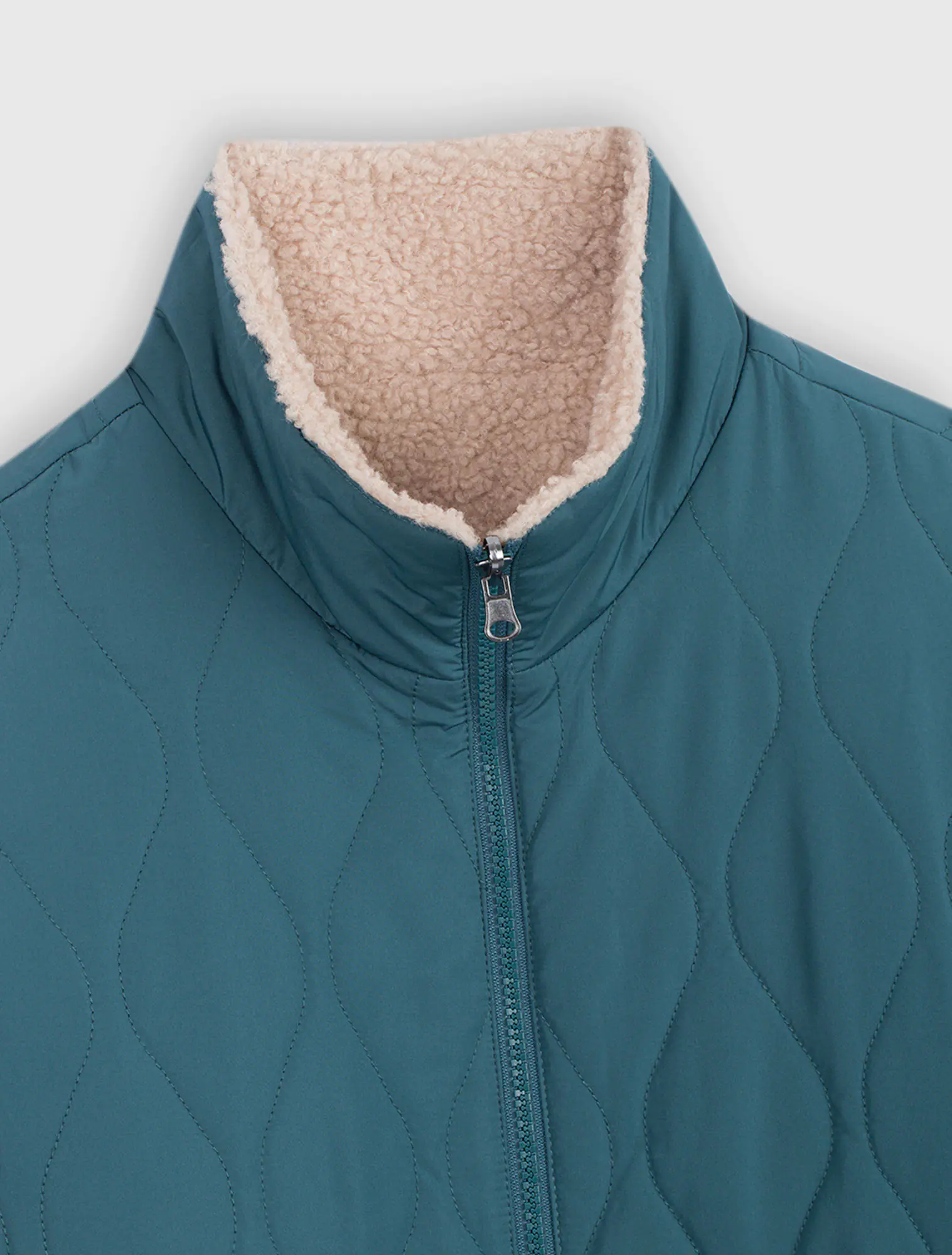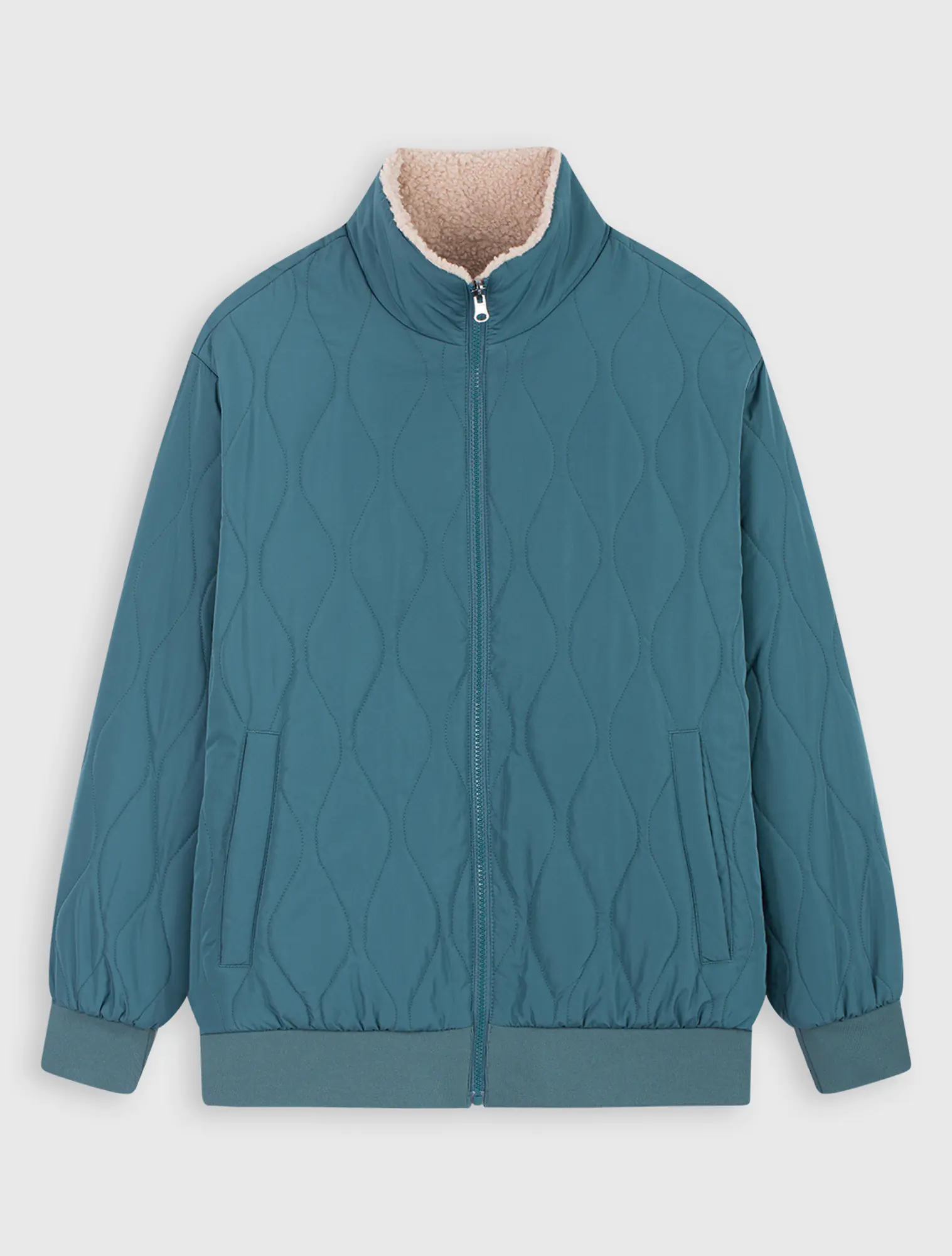 Áo khoác chần bông lót nỉ, cổ kéo khoá, túi 2 bên.