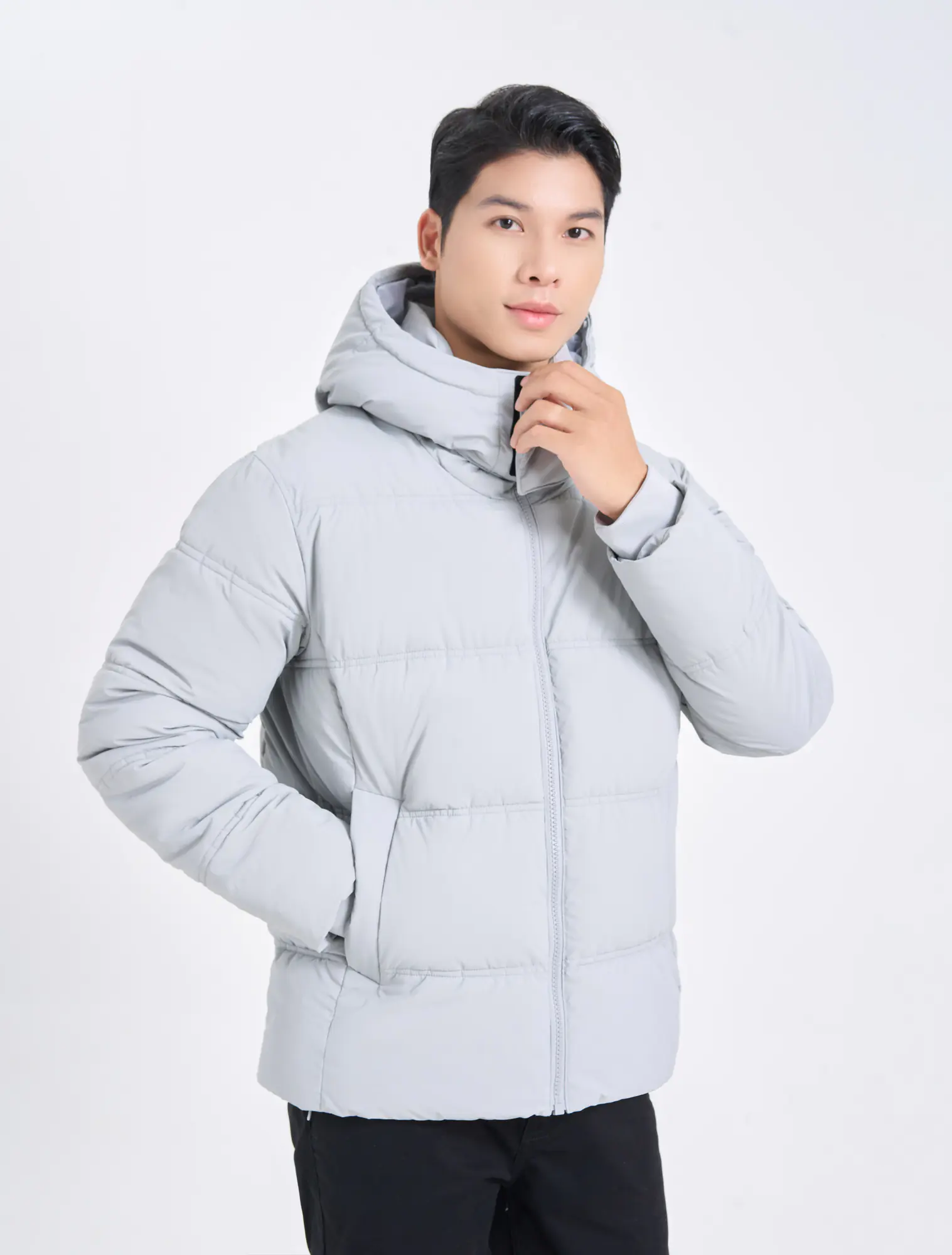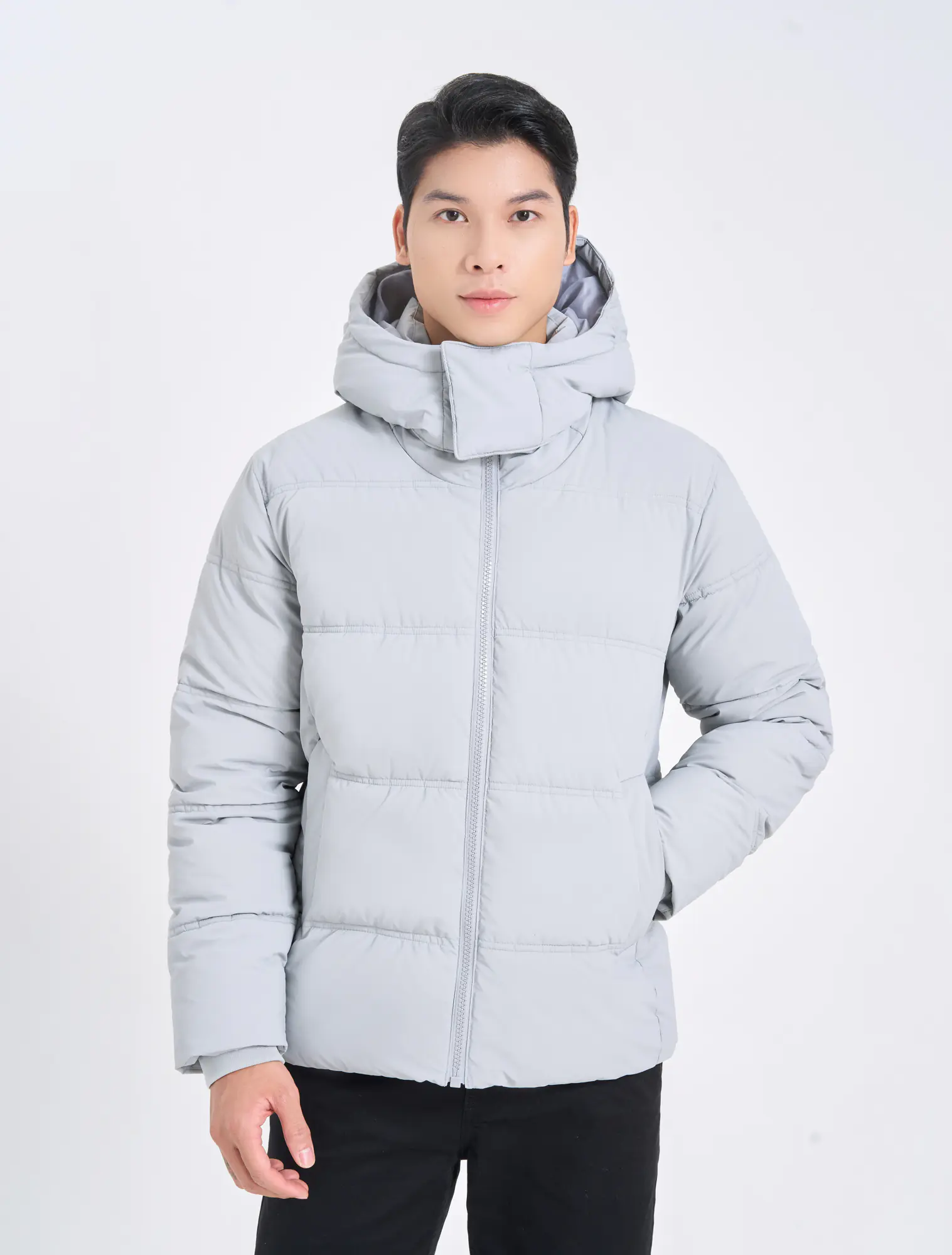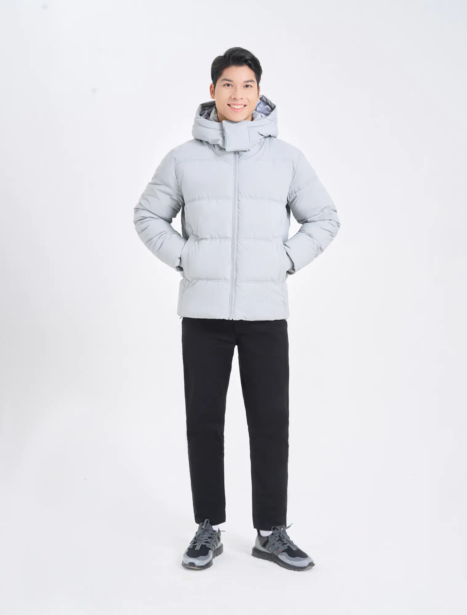Áo khoác phao nhồi bông có mũ tháo rời, khóa kéo thân trước. Tay áo có sử dụng bo ôm vào cổ tay, gấu áo có chi tiết luồn chun tròn và chốt chặn giúp giữ ấm và cản gió luồn vào trong áo. Bề ngoài áo được sử dụng lớp vải dày dặn mịn màng, có đặc tính chống thấm nước, chắn gió cực tốt. Với chiếc áo bông dày này, bạn hoàn toàn có thể thỏa sức tự tin ra ngoài ngay cả khi thời tiết lạnh thấu xương.