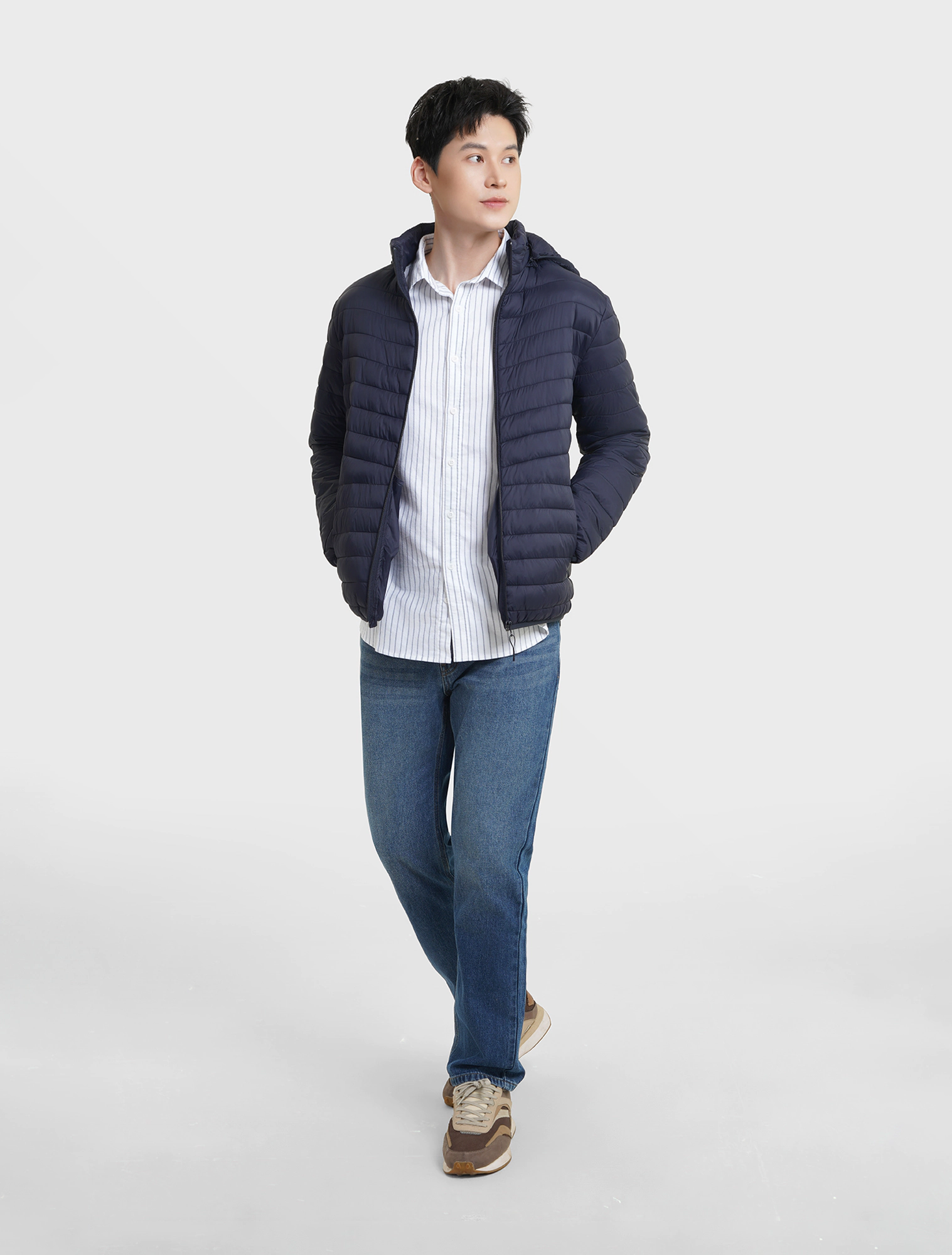 Áo khoác chần bông nam thiết kế lớp phủ chống bám nước bảo vệ bạn khỏi những cơn mưa nhỏ.