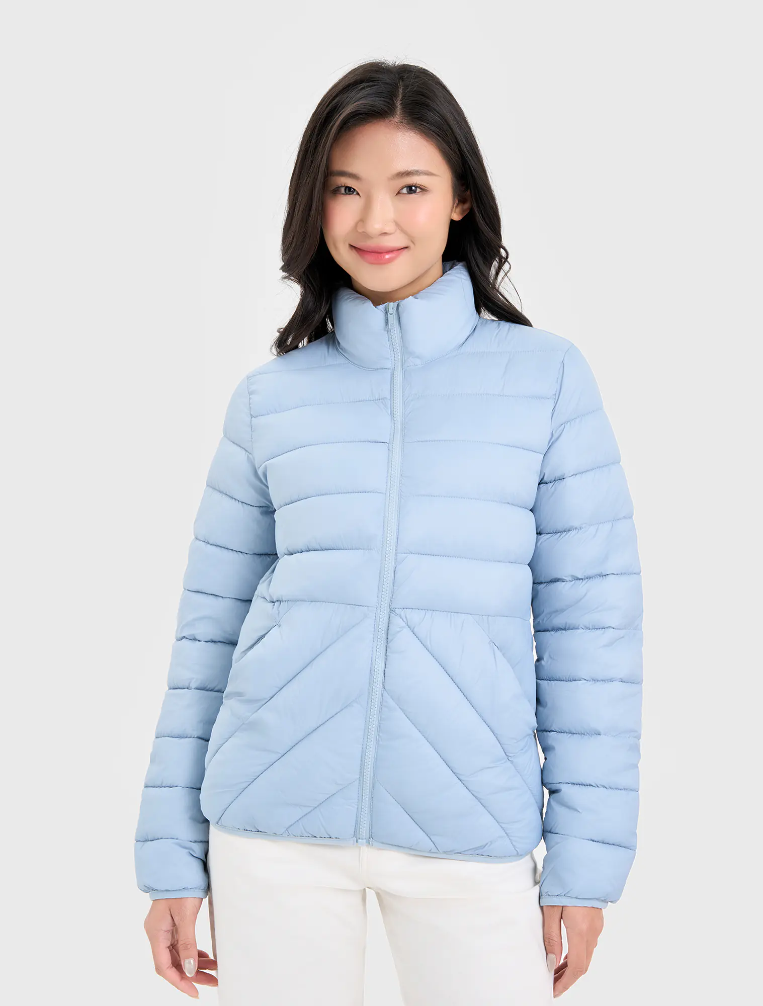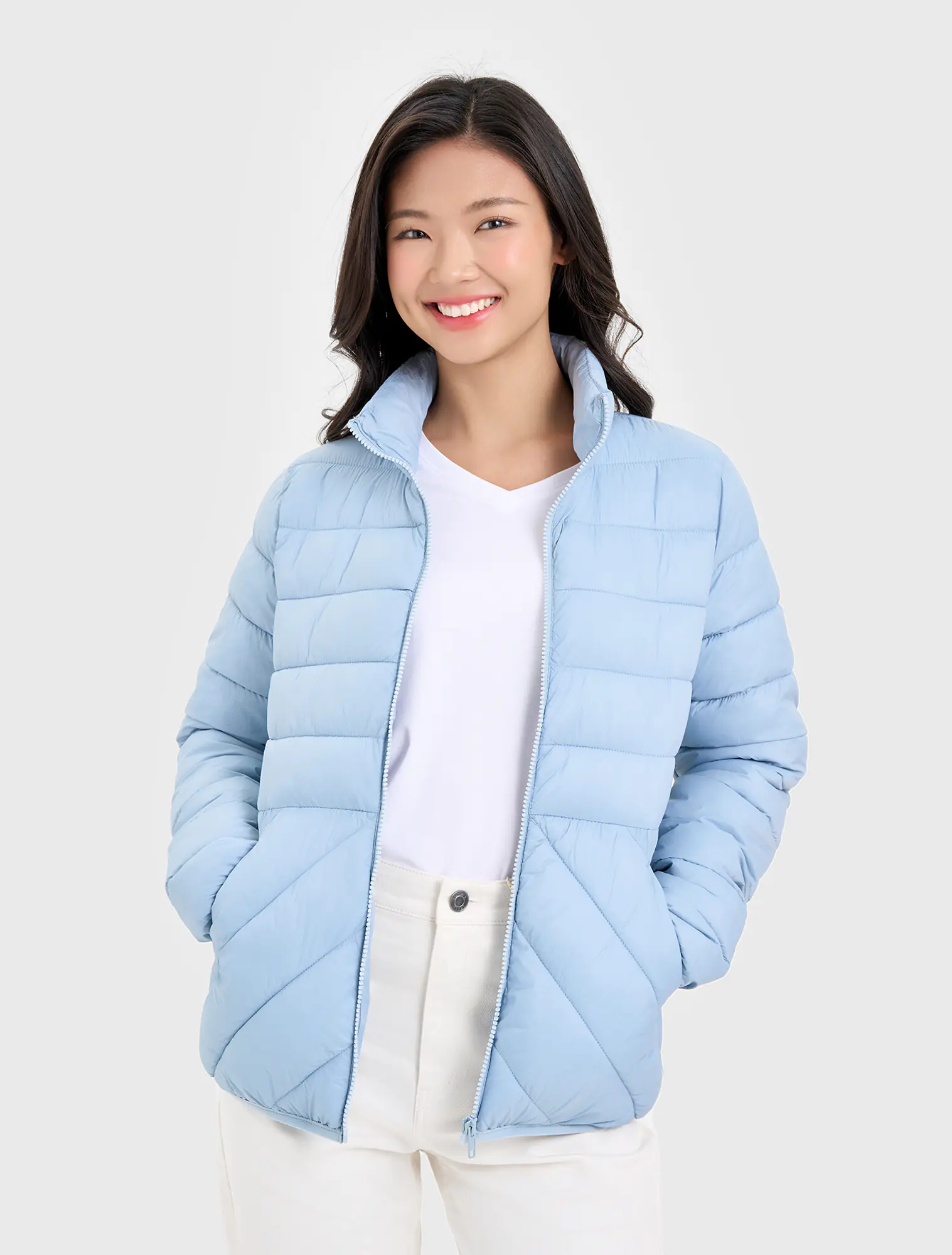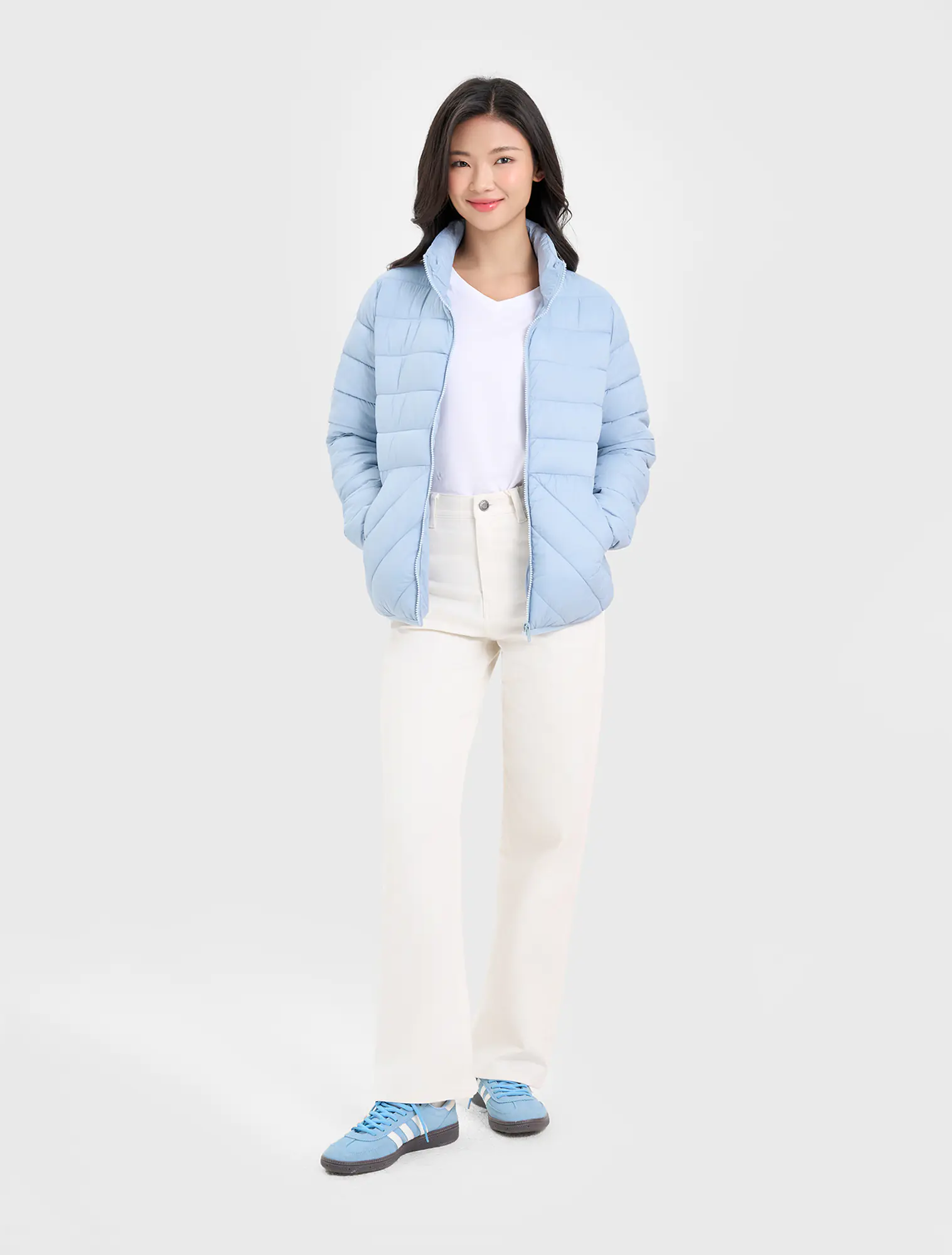 Áo khoác thổi bông nhẹ, cổ cao giữ ấm tốt. Phom dáng vừa vặn, gọn gàng. Túi áo cách điệu hiện đại, tiện lợi. Màu sắc sạch sẽ, phù hợp nhiều độ tuổi, nhiều phong cách.