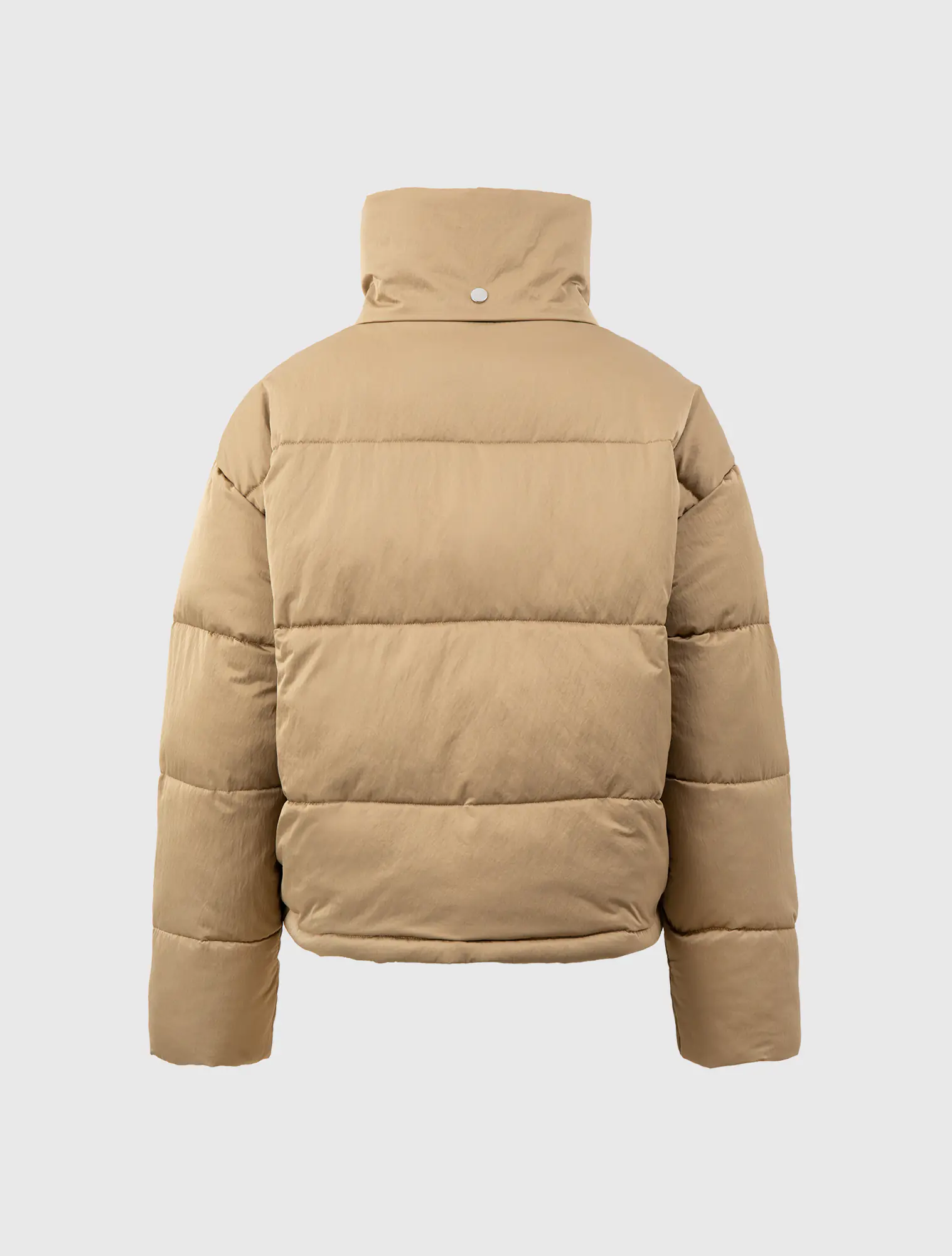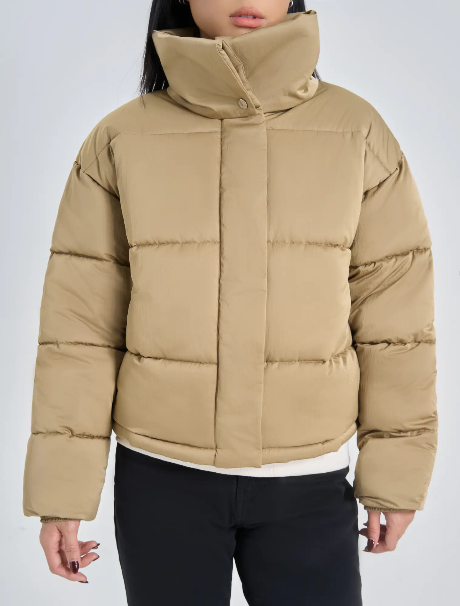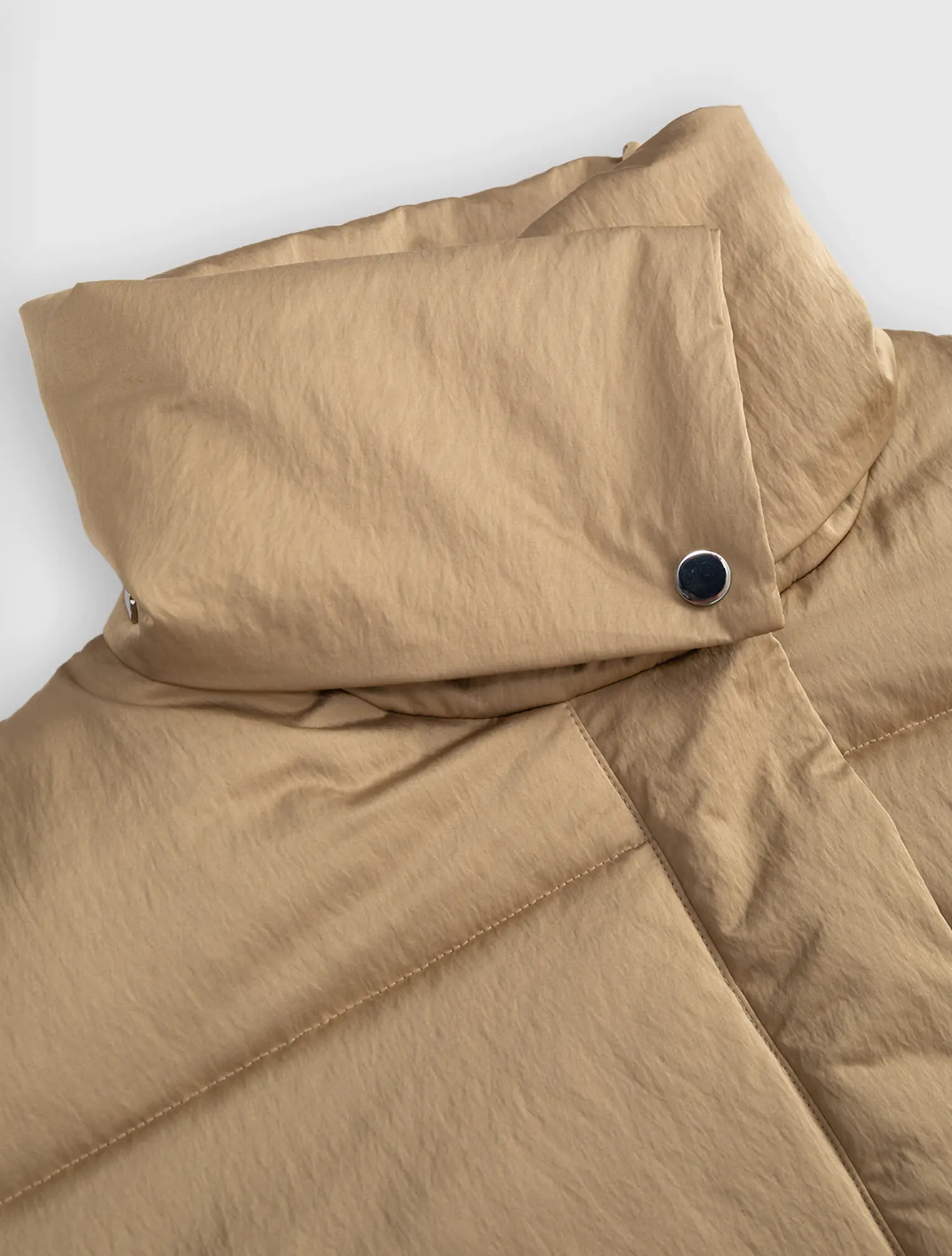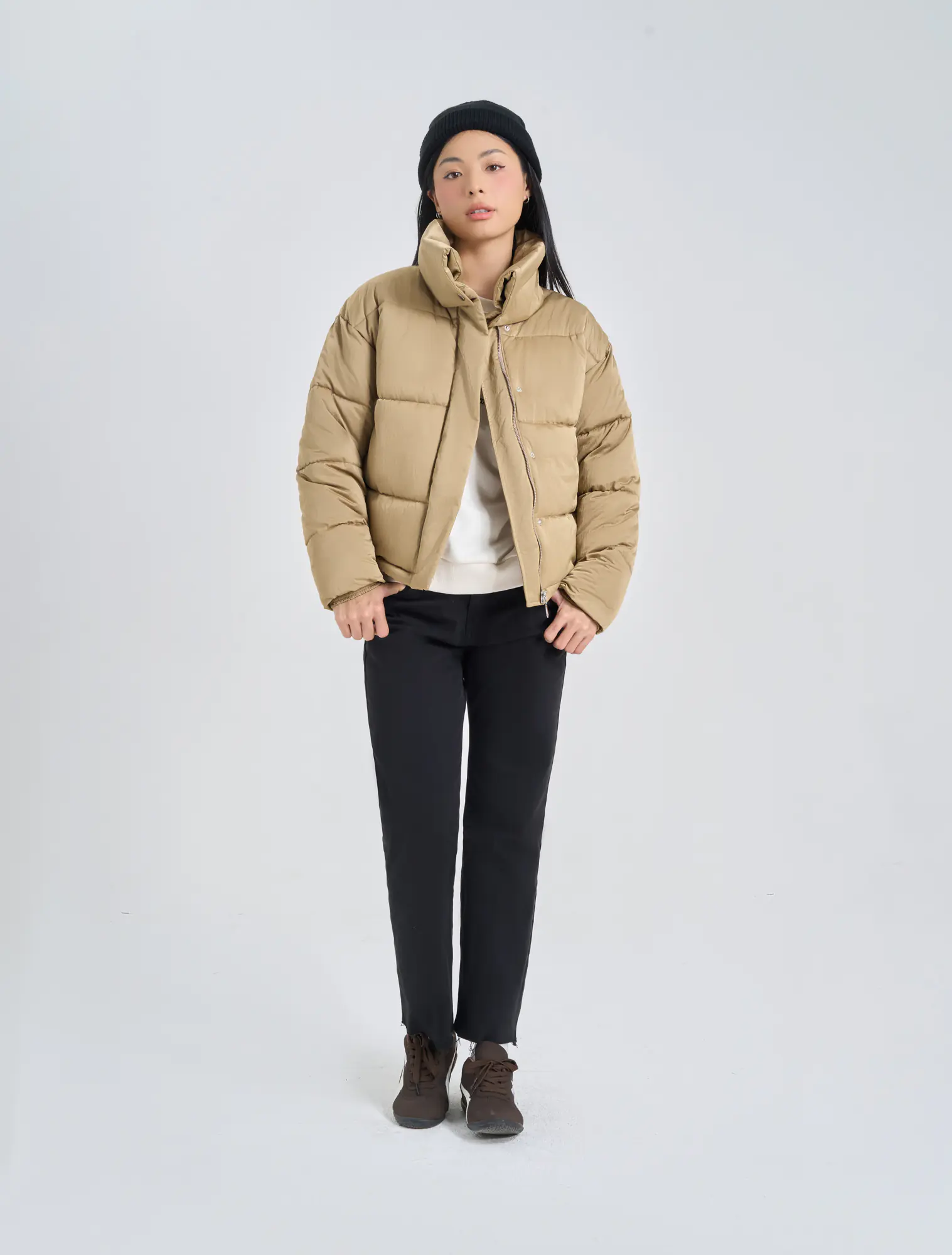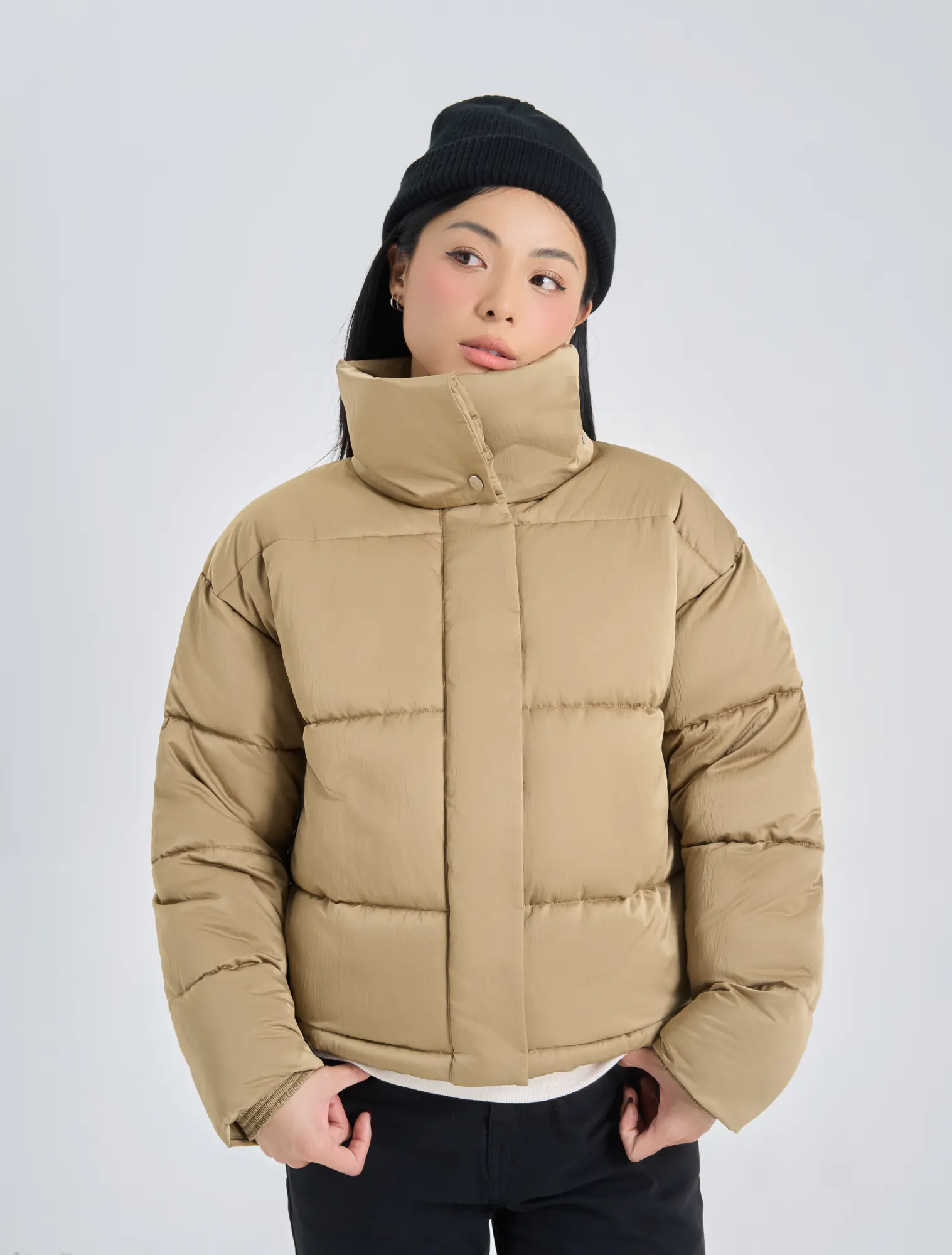Áo khoác bông thổi dài tay kéo khóa của nữ. Phần cổ bẻ với chi tiết cúc bấm, có thể thay đổi kiểu mặc cho người sử dụng. Phù hợp với thời tiết lạnh sâu và có khả năng chống thấm nhẹ.