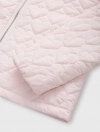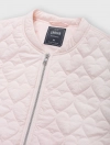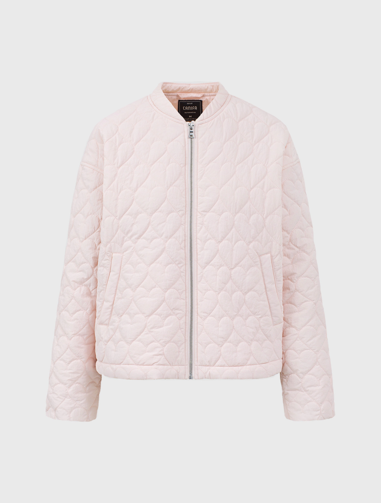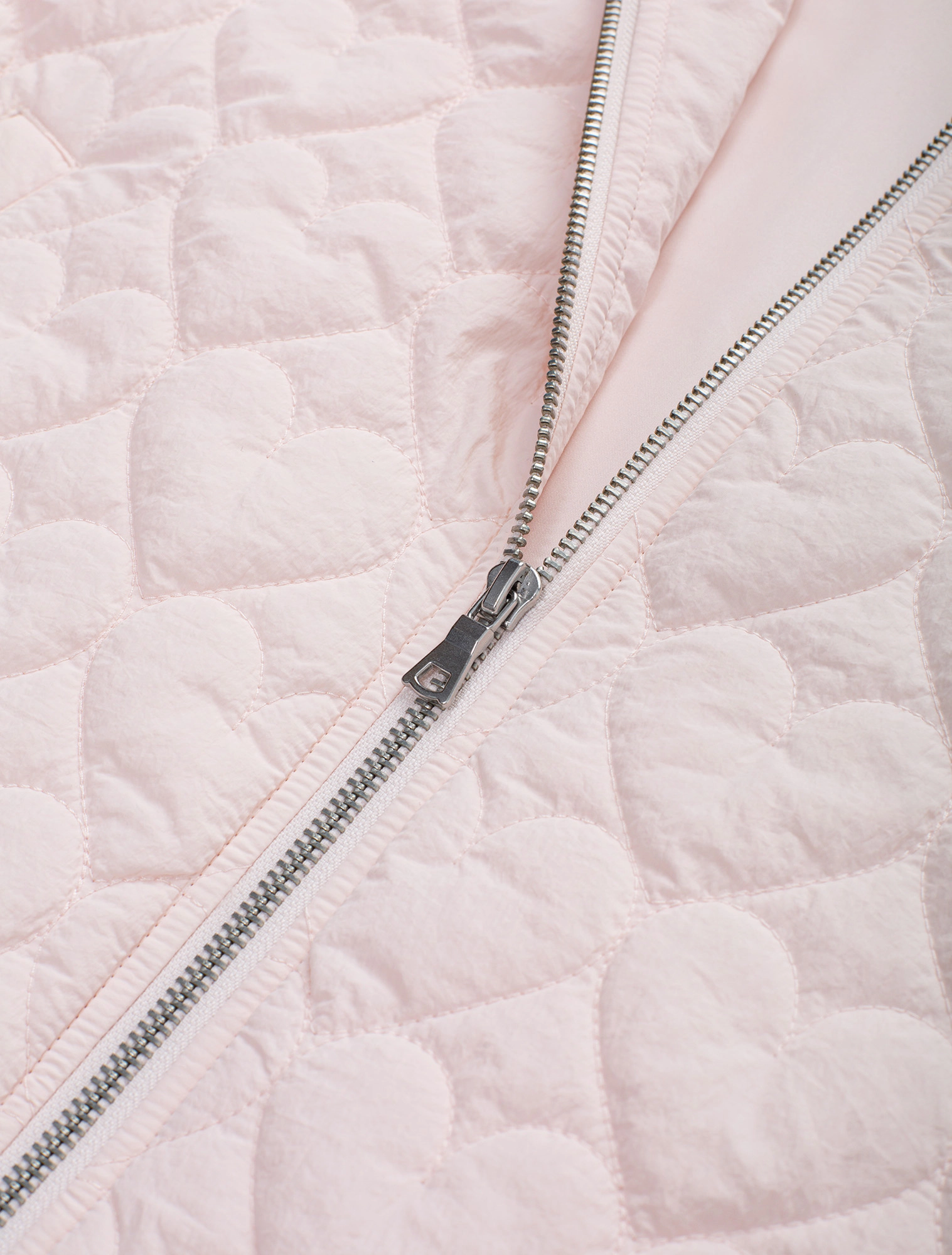Áo khoác chần bông kéo khóa, cổ tròn tàu. Phom dáng bomber, rộng vừa, thoải mái, phù hợp với thời tiết lạnh, mưa nhẹ.