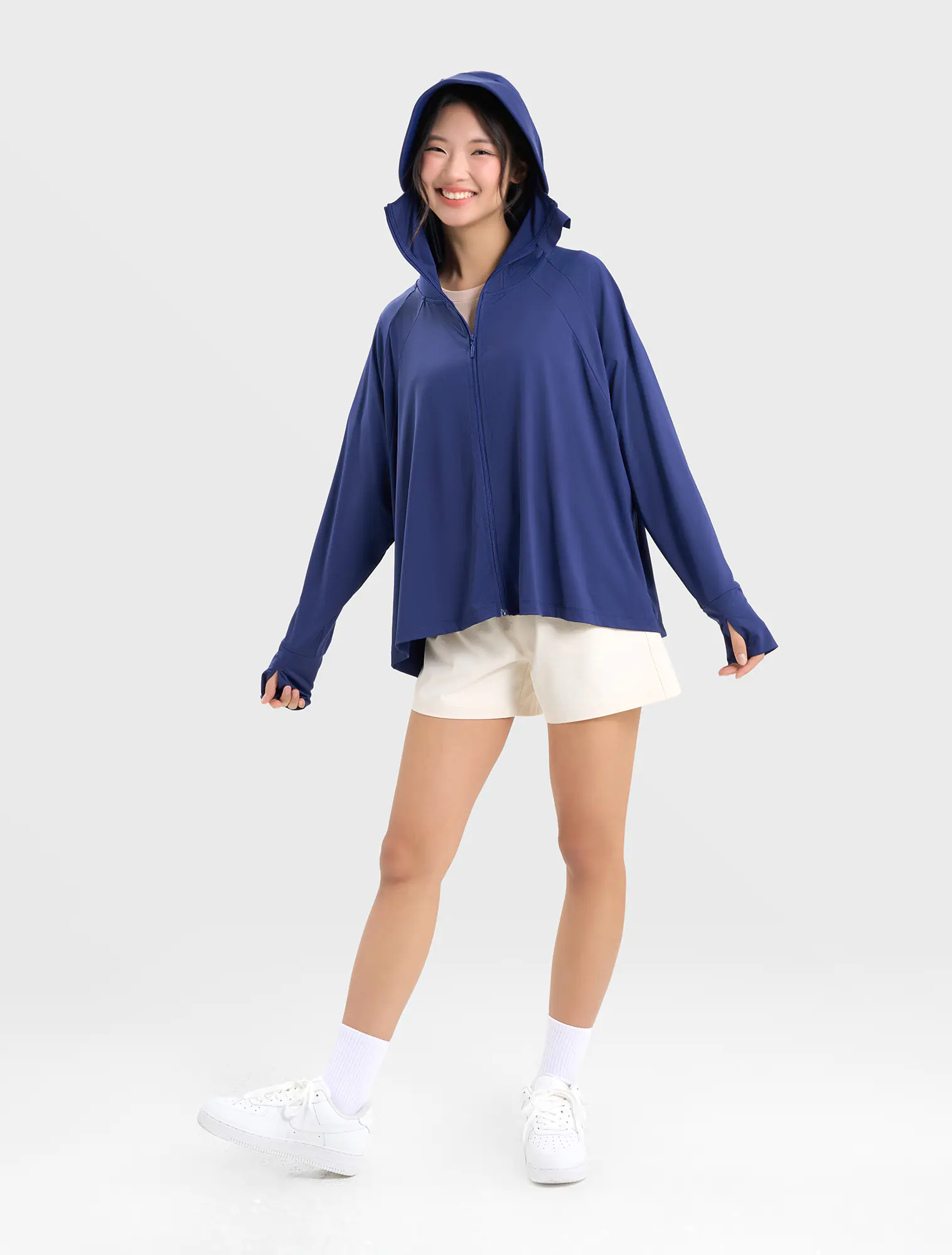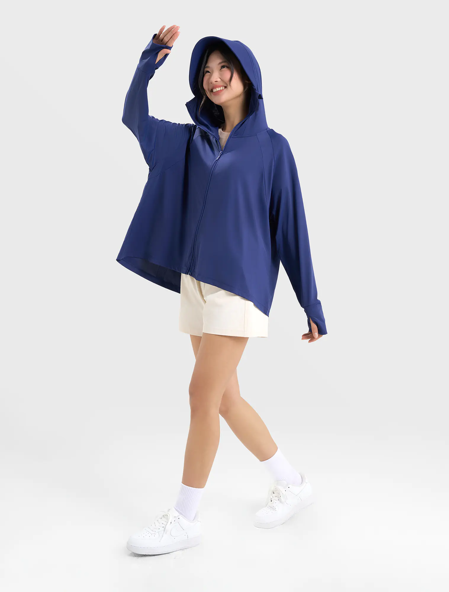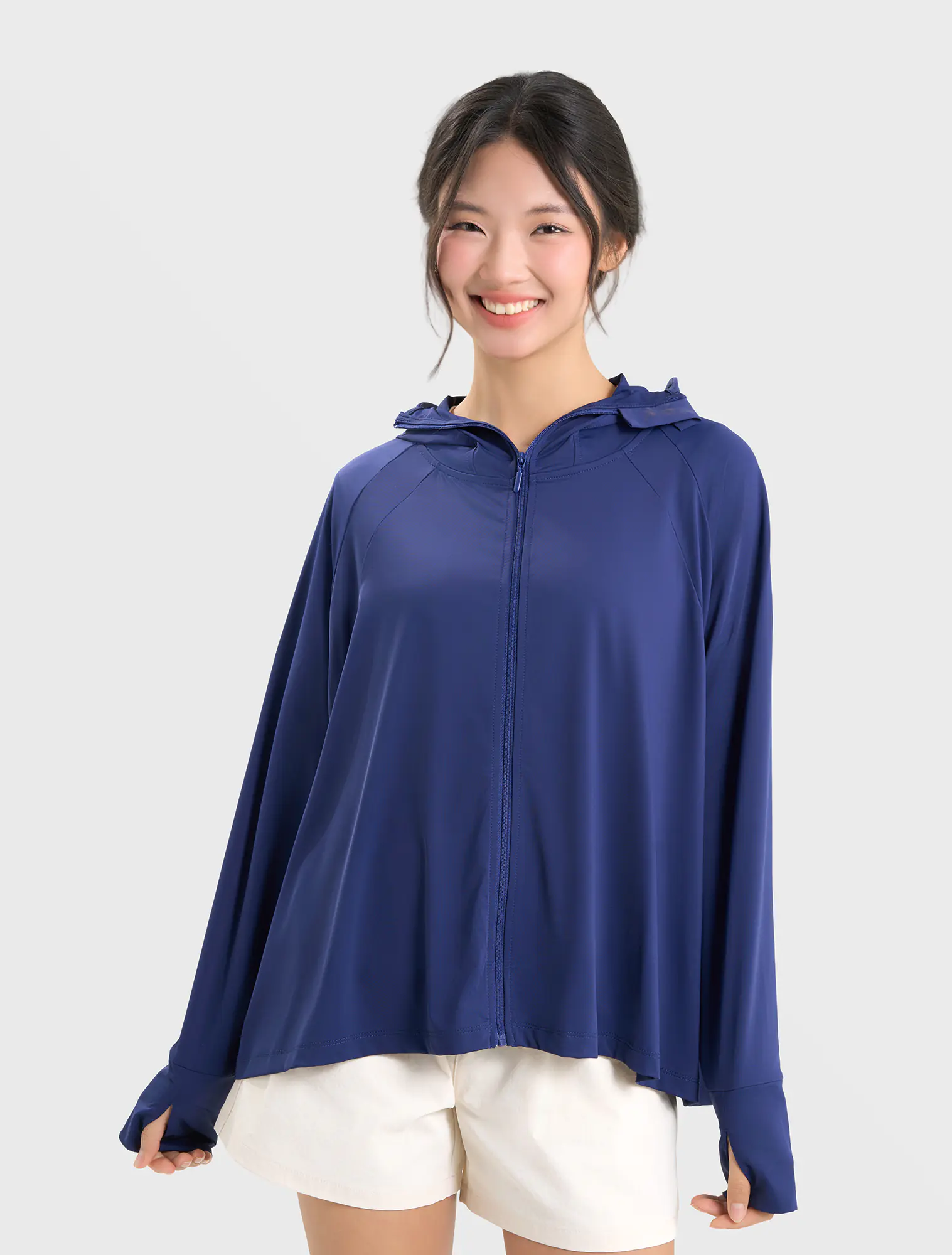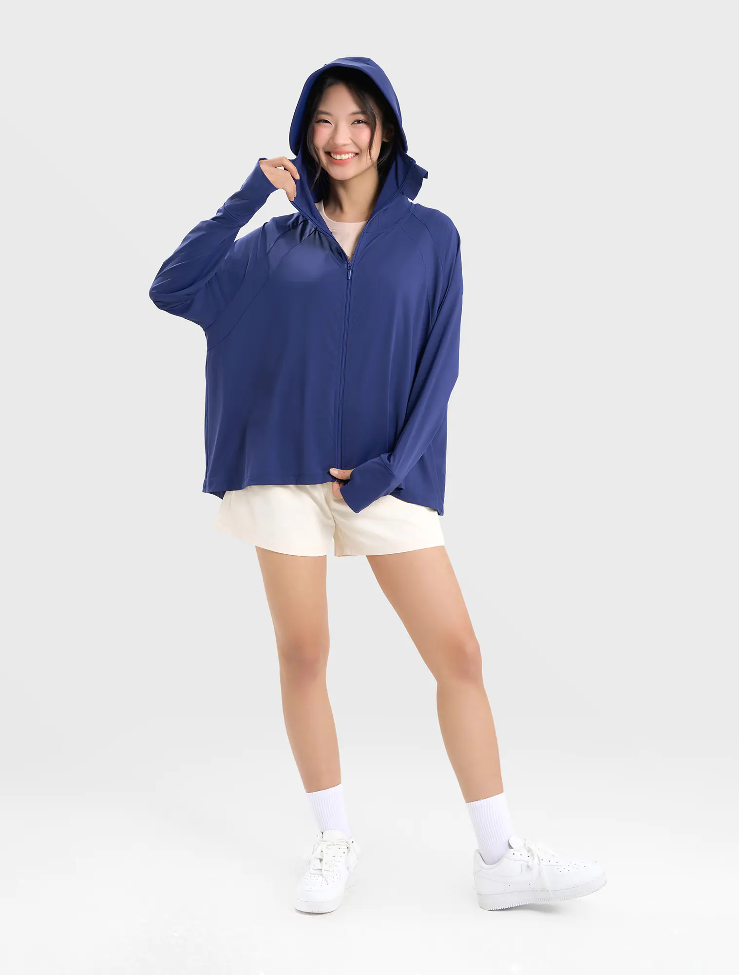 Áo khoác chống nắng nữ dáng rộng freesize, kiểu dáng cánh dơi tạo cảm giác thoải mái kể cả khi mặc nhiều đồ bên trong.